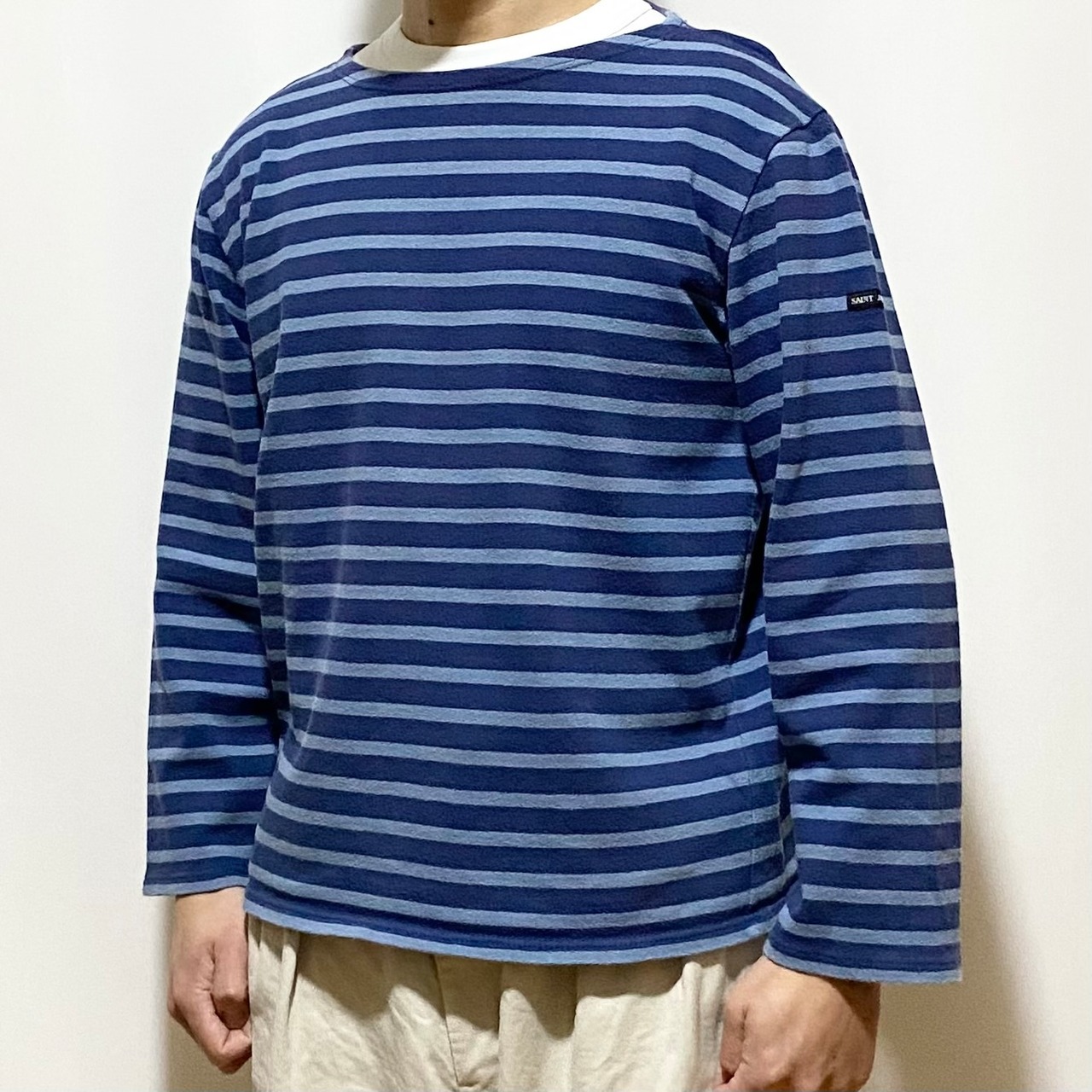 サイズ表記は無し。大体S~Mぐらいなので男女問わず着れるサイズ感かと。着丈の短さと身幅、袖丈のバランスが秀逸。このセントジェームスならではのサイジングって久々に着ると気持ちいいですね◎◎◎