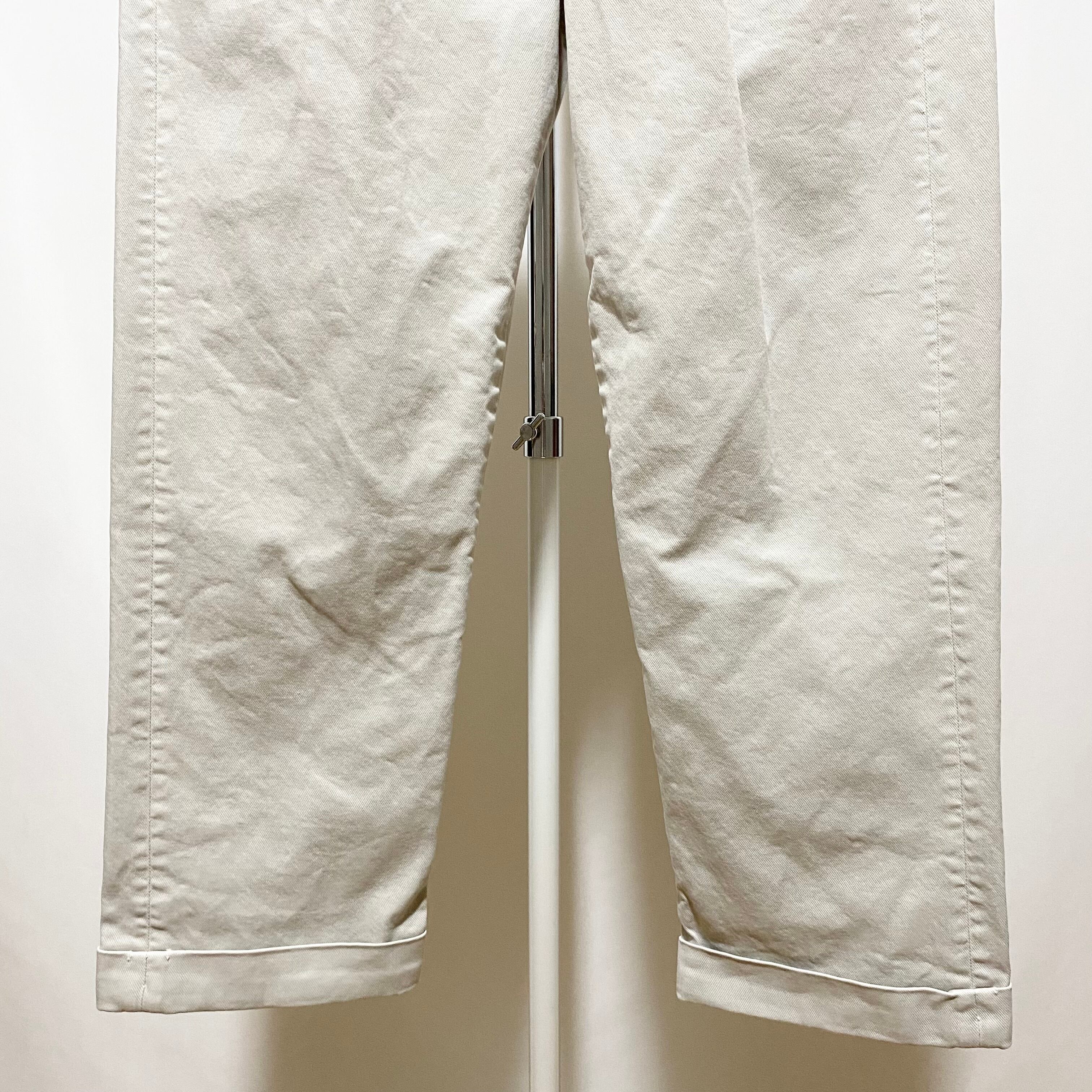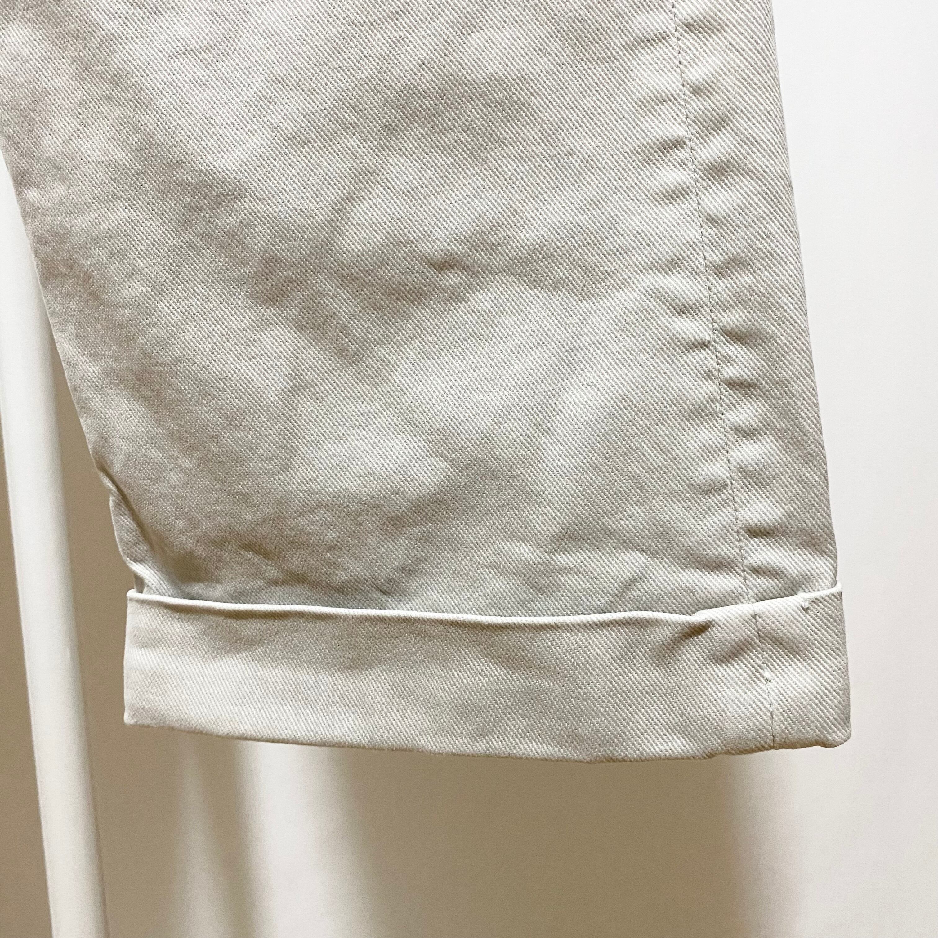 一見はしっかりとイタリアな感じのスラックスに見えつつ、ゆったりした腰回りとテーパード具合。さりげないダメージ加工も随所に見られますが汚く見えないのが流石◎◎◎