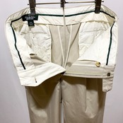 ブルックスブラザーズのゴルフラインのチノーズ。腰回り内側にグリーンのラインが入る以外に目立った部分は無く、極めてベーシックに履けるのが良いのです◎◎◎