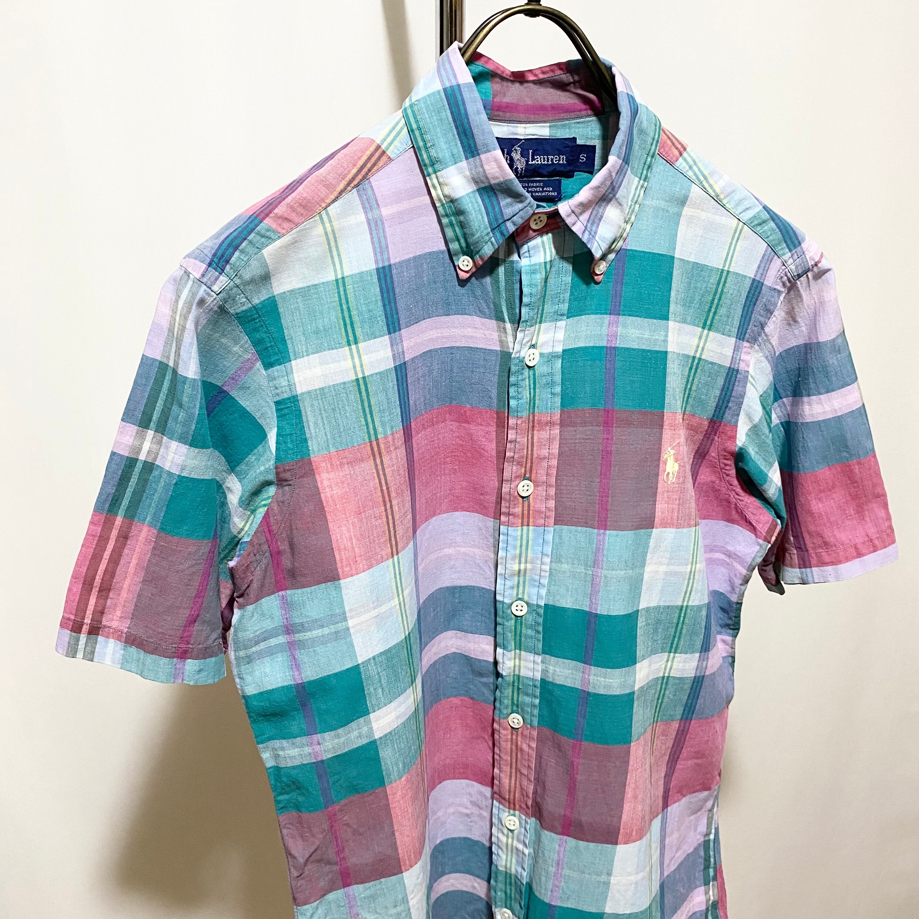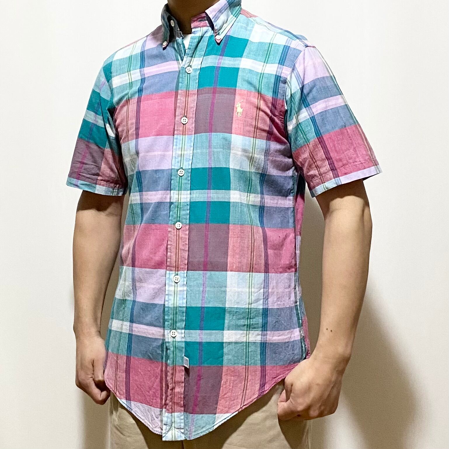 ラルフローレンのショートスリーブのギンガムマドラスチェックボタンダウンシャツ◎◎◎