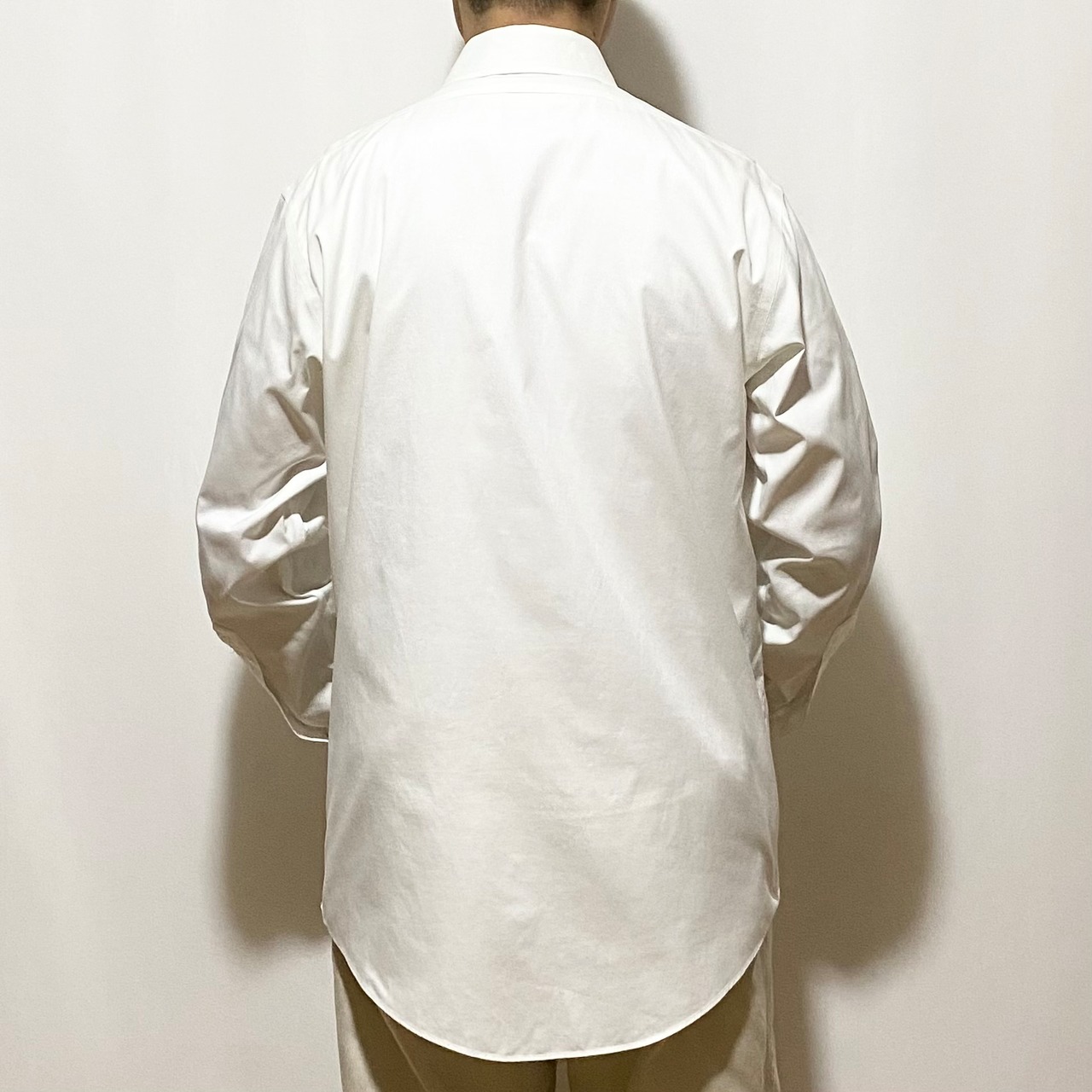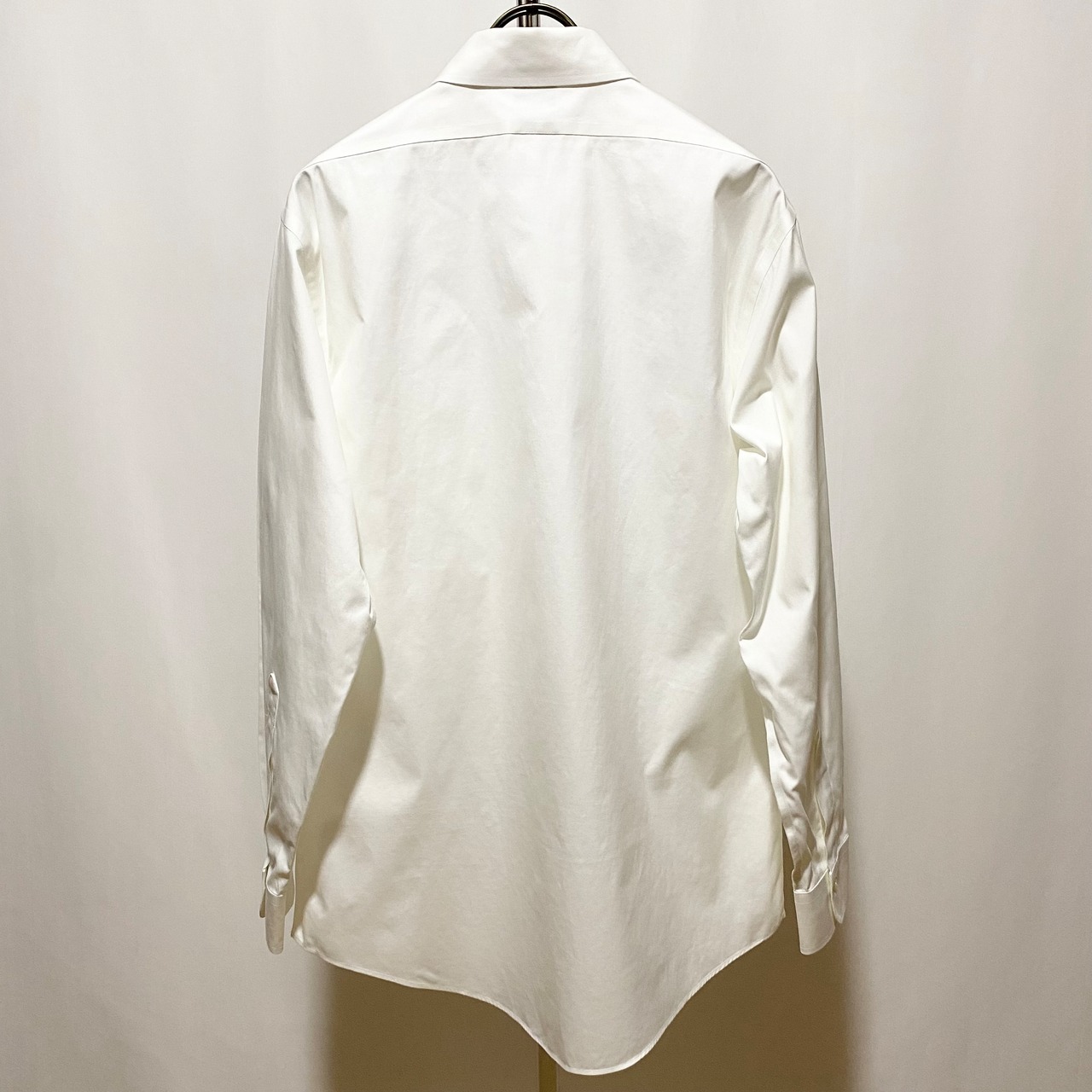 こちらはドレスな白シャツ◎◎◎ まるでお手本のような白のブロード生地にこれまたお手本のようなレギュラーカラー(今探すと本当に売っていない)そしてナチュラルにちゃんと細いミラノシルエット。現代的なクラシックといった趣◎◎◎