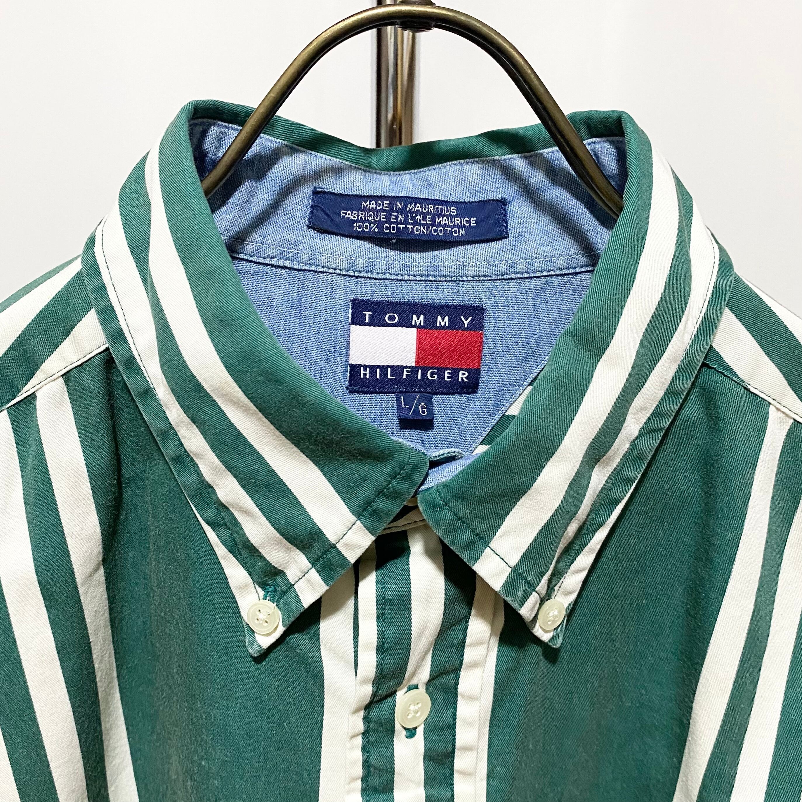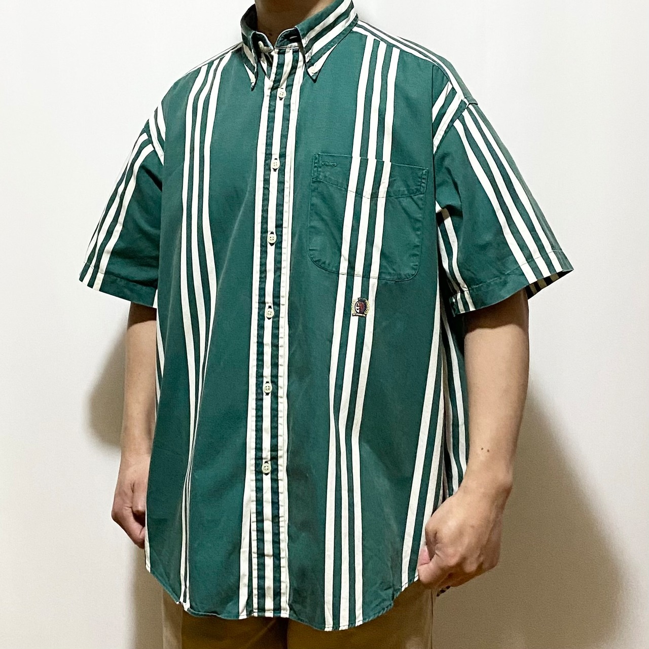 Tommy Hilfiger Print Stripe B.D Shirt Green White 90s