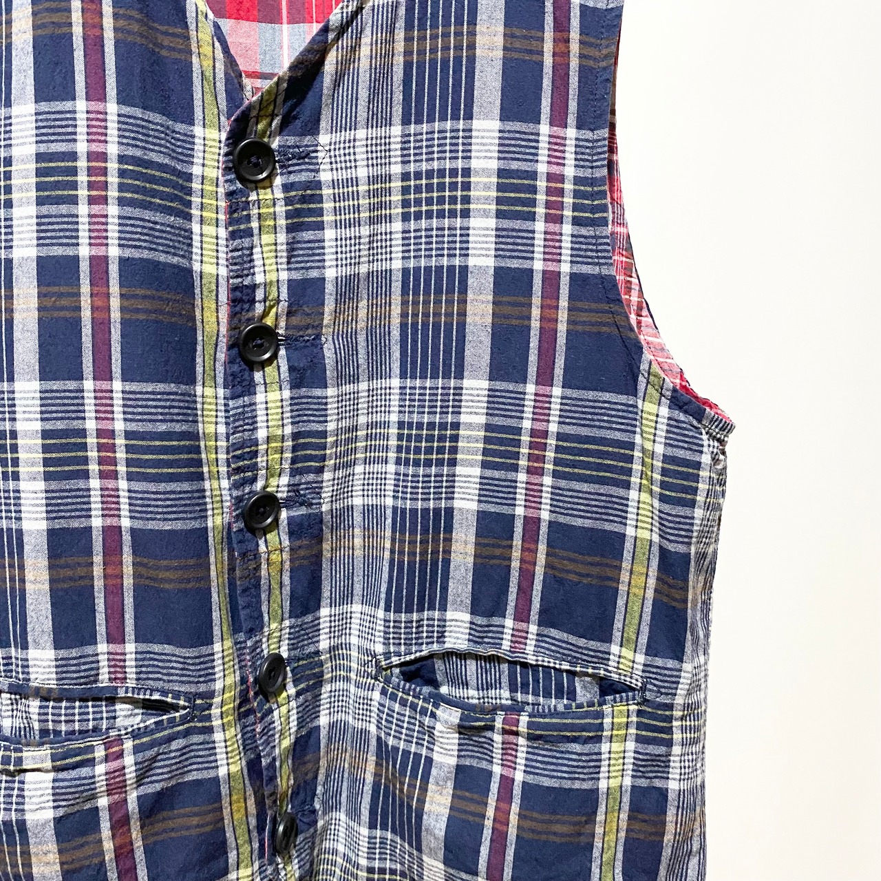 Engineered Garments Madras CHK Reversible Vest Navy Red Made in USA