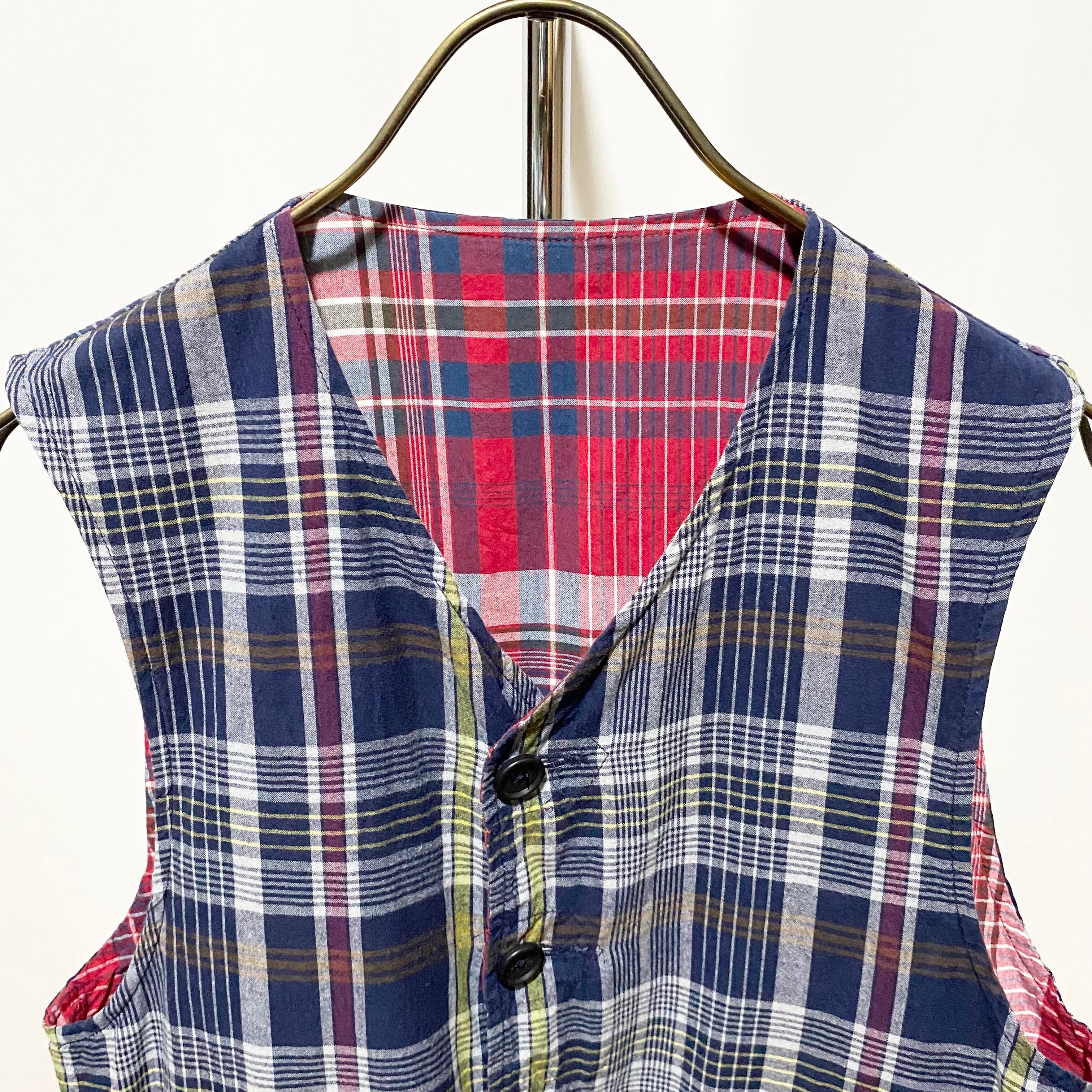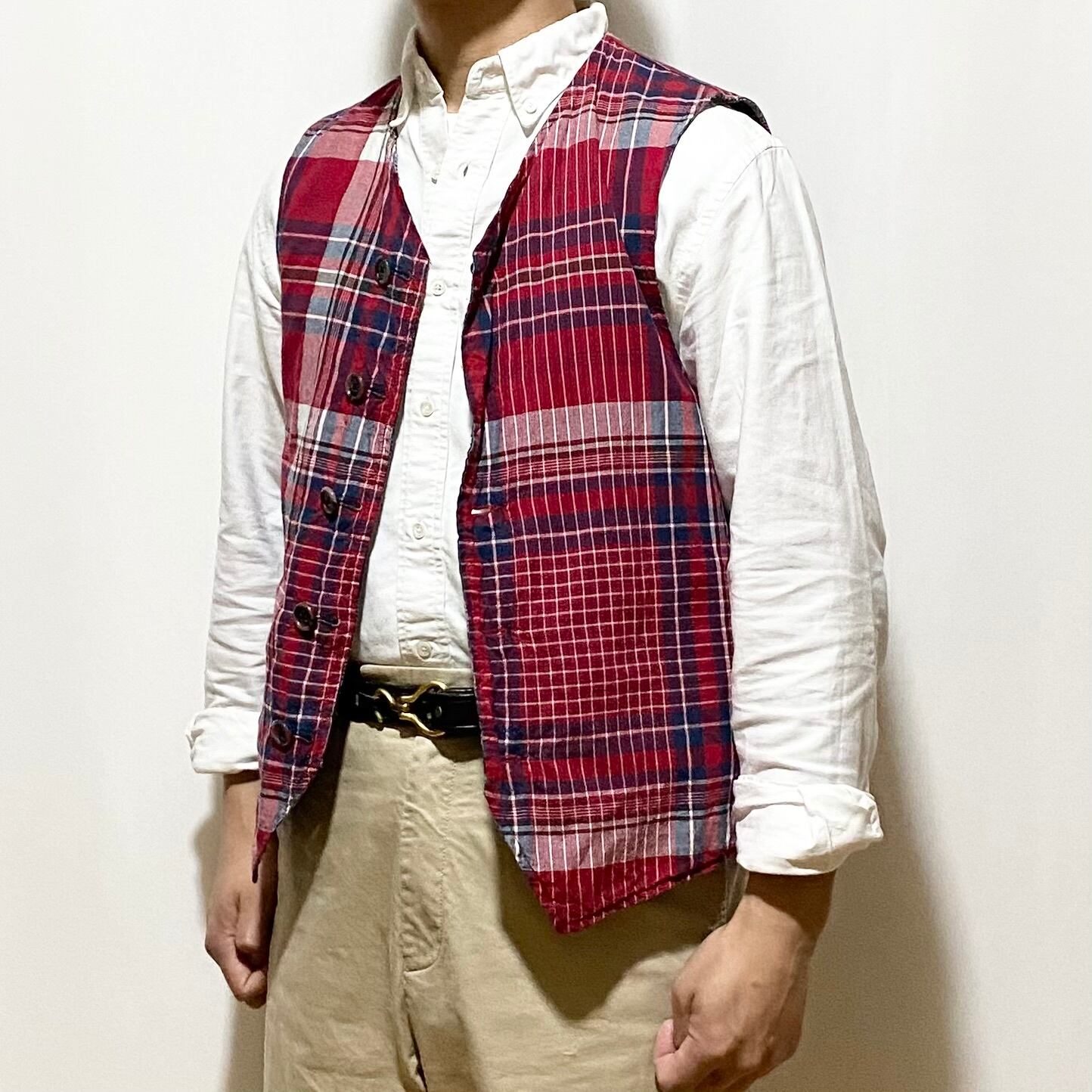 定番的に作られていたリバーシブルベストの最初期のアイテム。セレクトショップに在籍時にこのマドラスチェックのアイテムを袋から出した時の事は今でも覚えております。