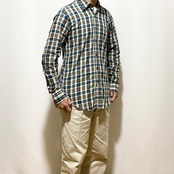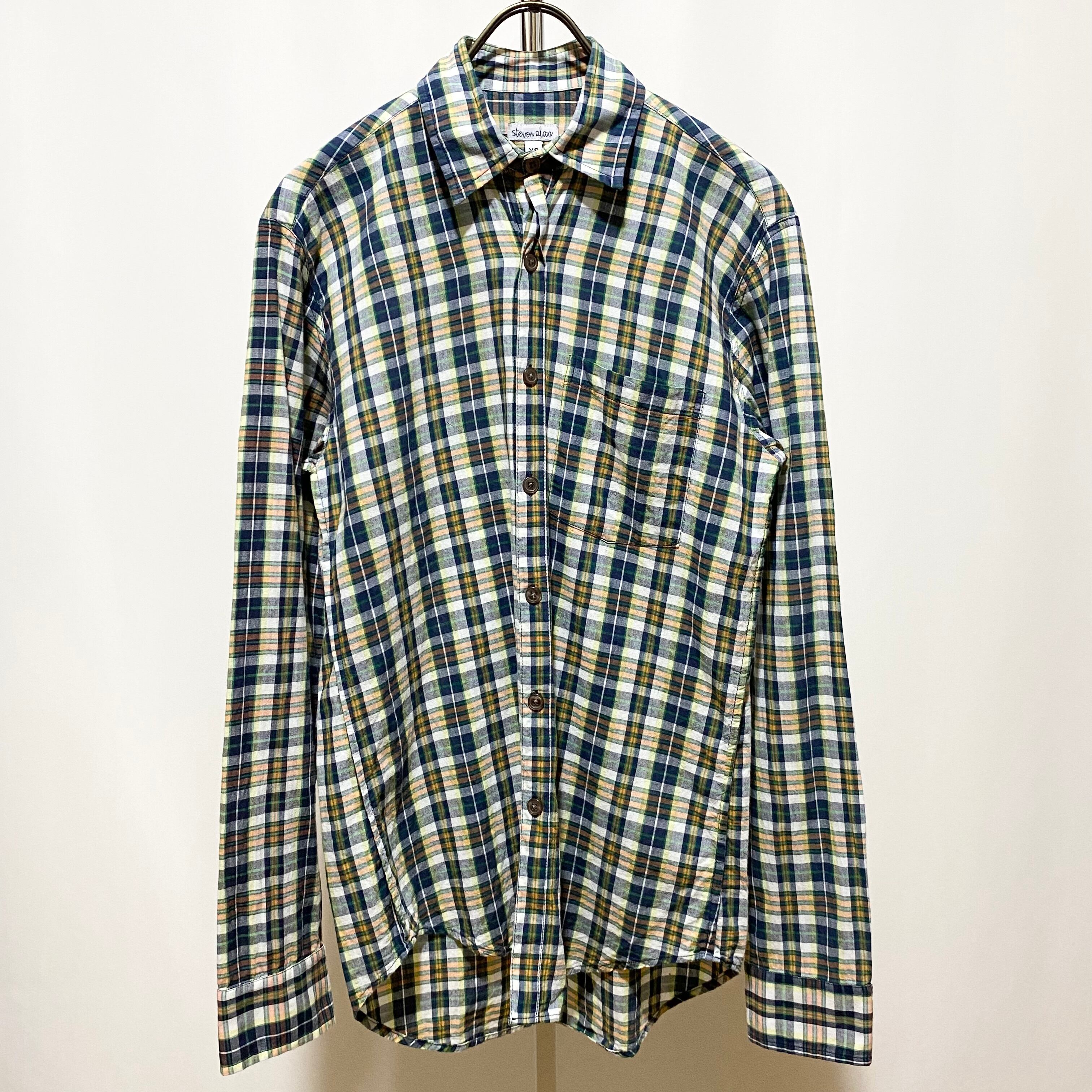 Steven Alan Madras CHK Reverse Seam Shirt Green Orange Made in USA