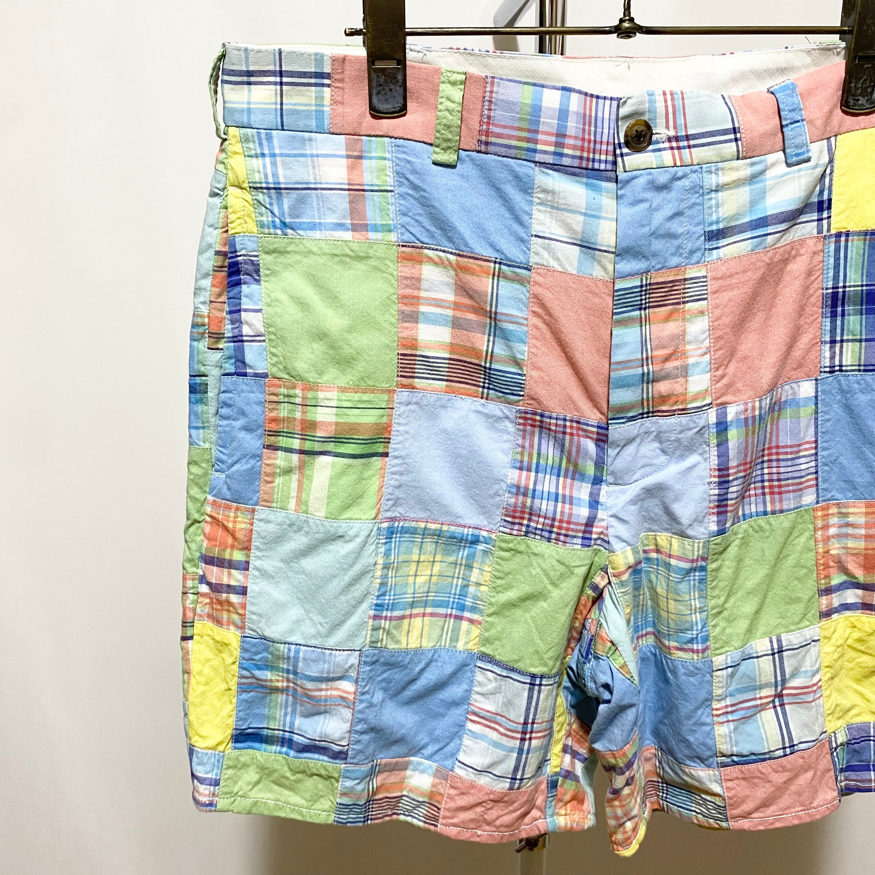 ブルックスブラザーズのマドラスチェックと無地のパッチワークショーツになりますー◎◎◎