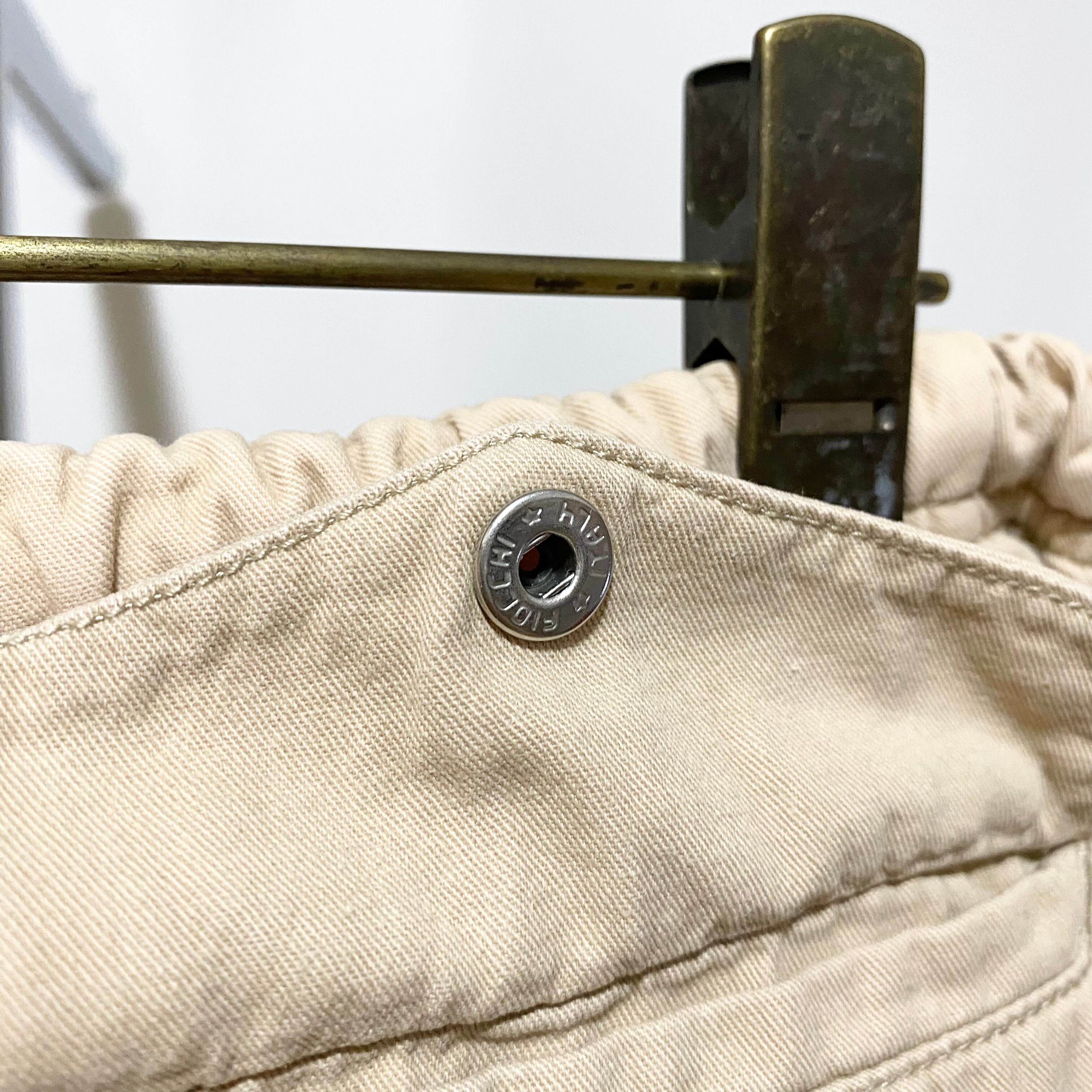 腰回りはコードが付いて絞れる仕様。少しワイドでやや短丈。シルエットは今履いて気分な感じです◎◎◎ バックポケットのスナップがイタリア製だったりして、日本の規格ではないそれっぽさを感じます◎◎◎