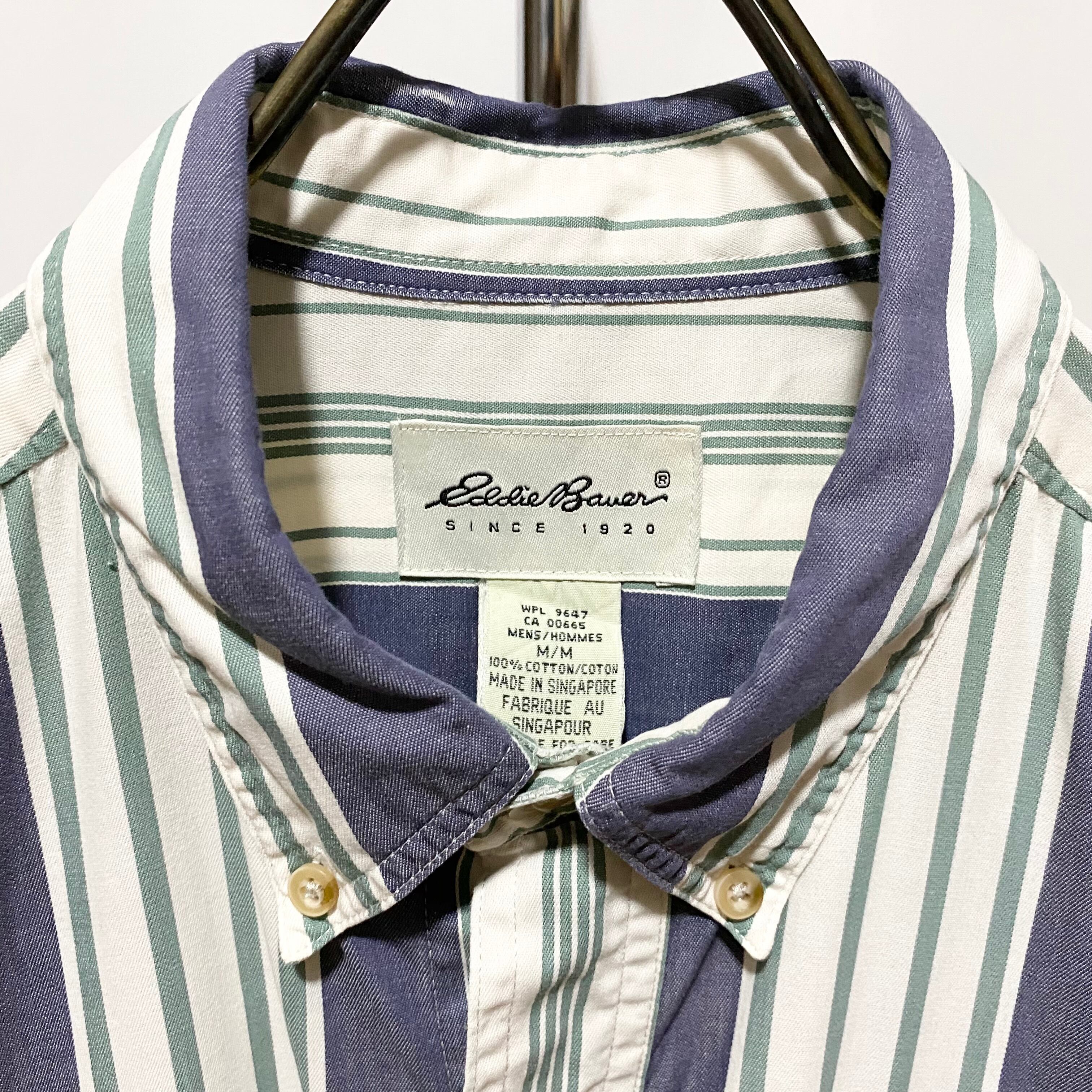 Eddie Bauer 2Stripe B.D Shirt S/S Navy Green White 90s