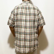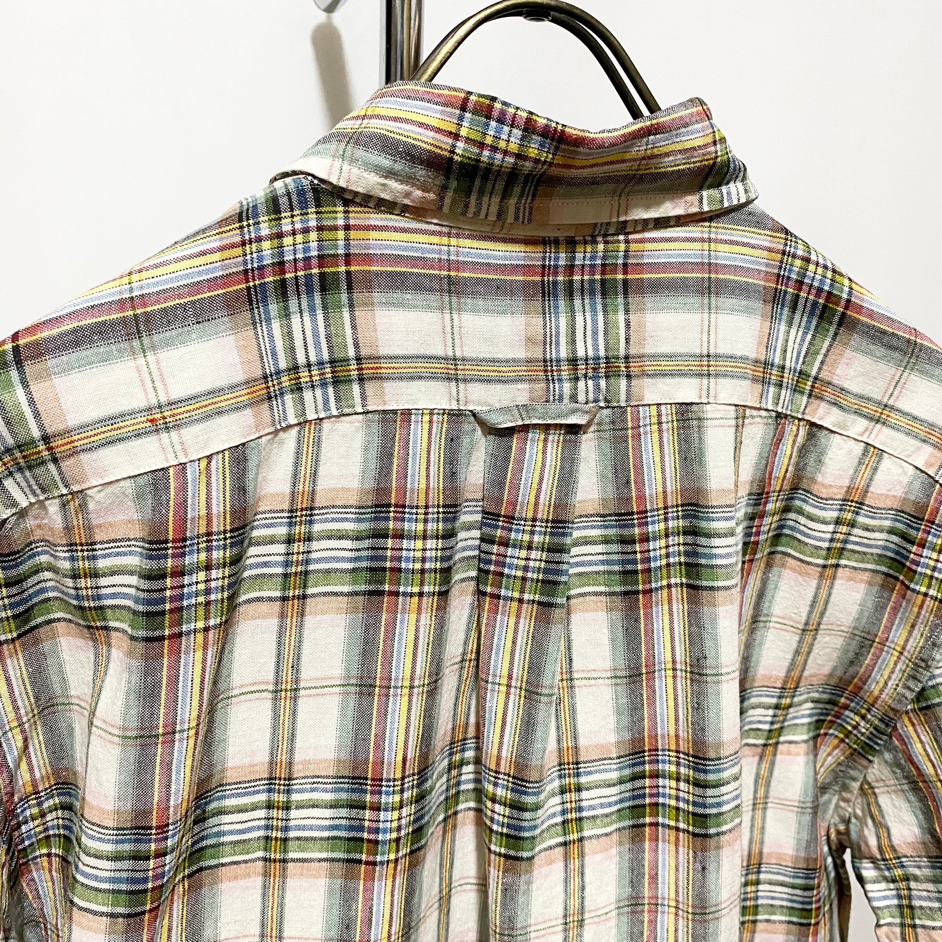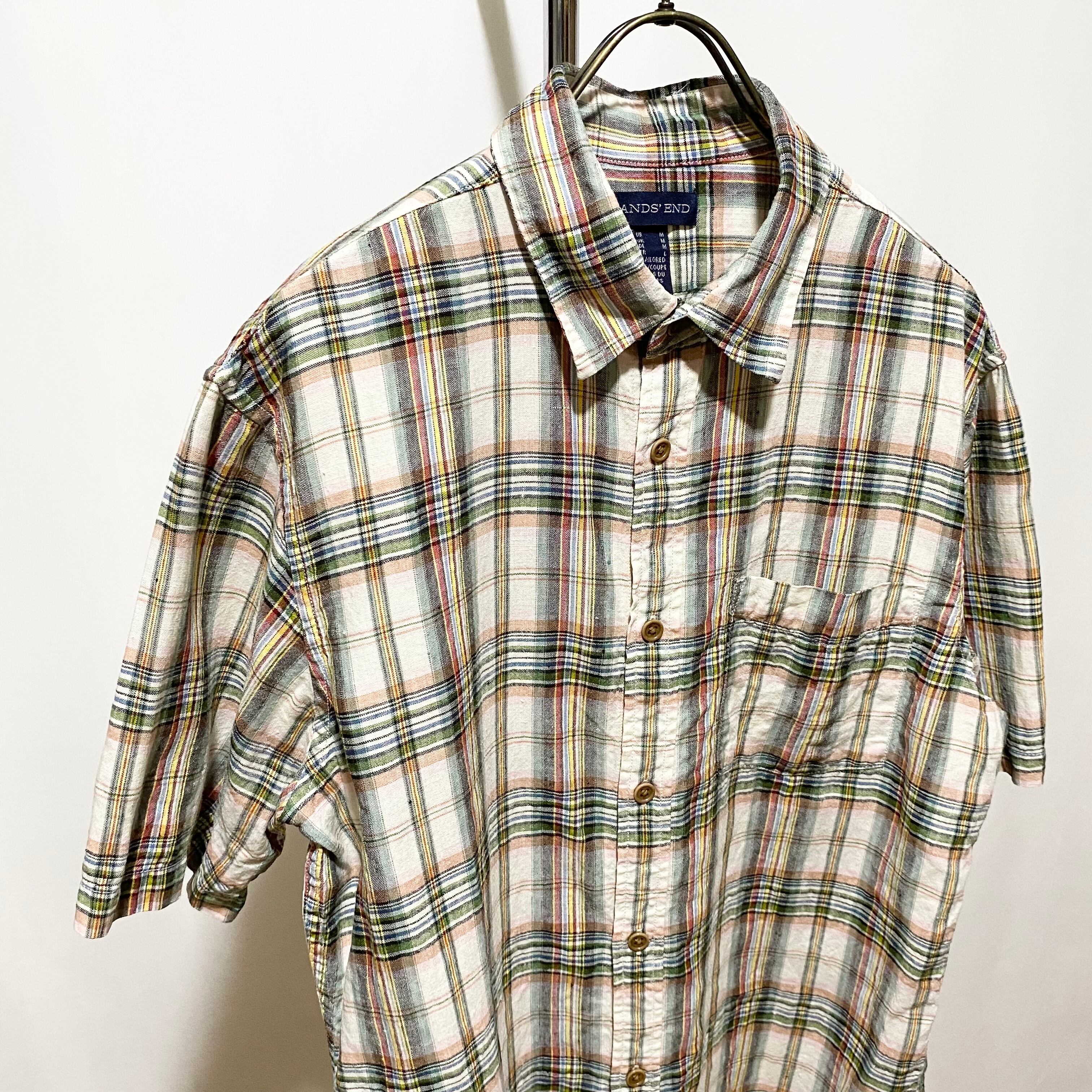 しっかりした生地のリネン素材でクラシックなタータンを少しぼかしたようなチェック。ボックスシルエットでややフラット気味の裾のバランスもガゼットでの作り込みも最高なランズエンドの半袖◎◎◎