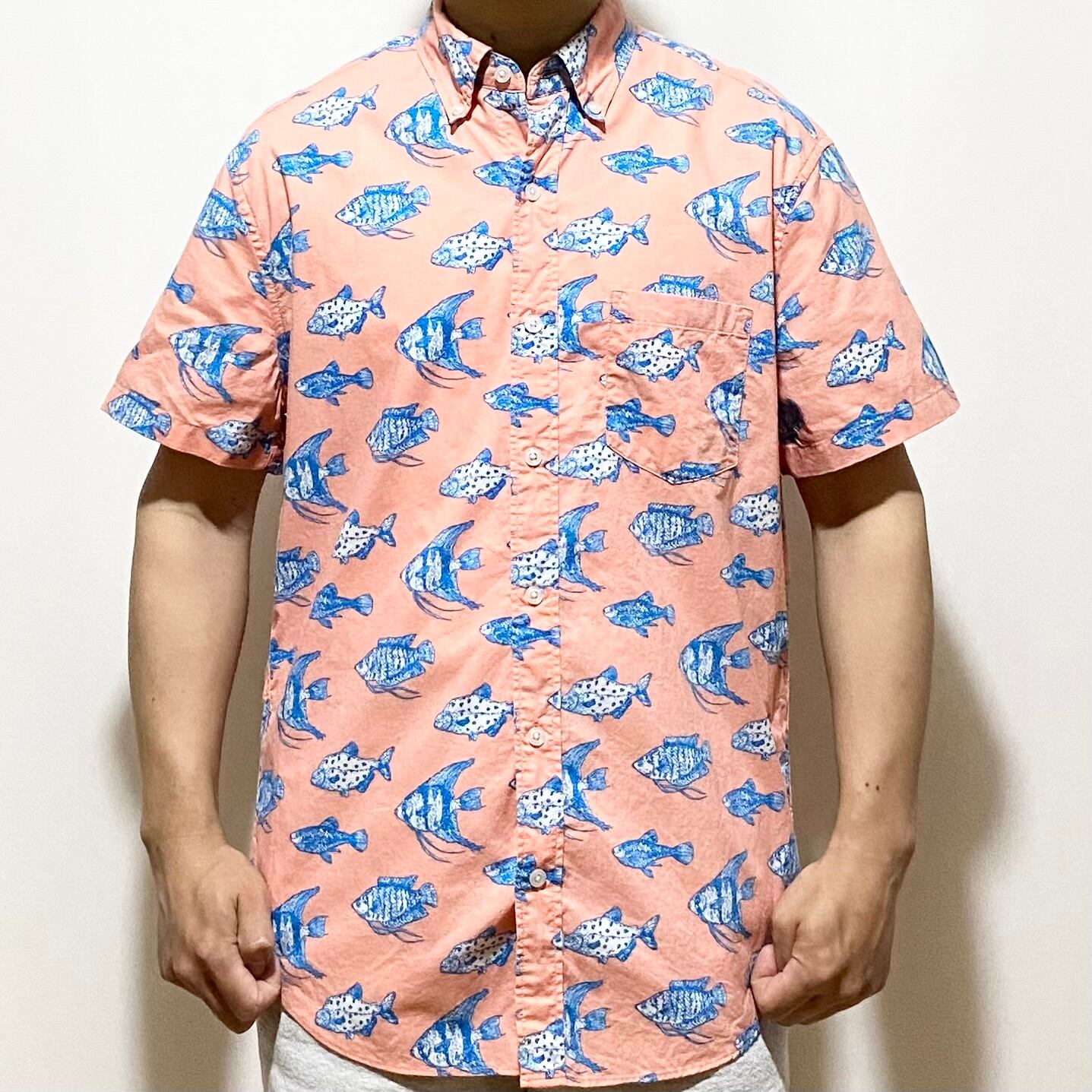 J.Crew Fish Print B.D Shirt S/S Salmon Pink Blue