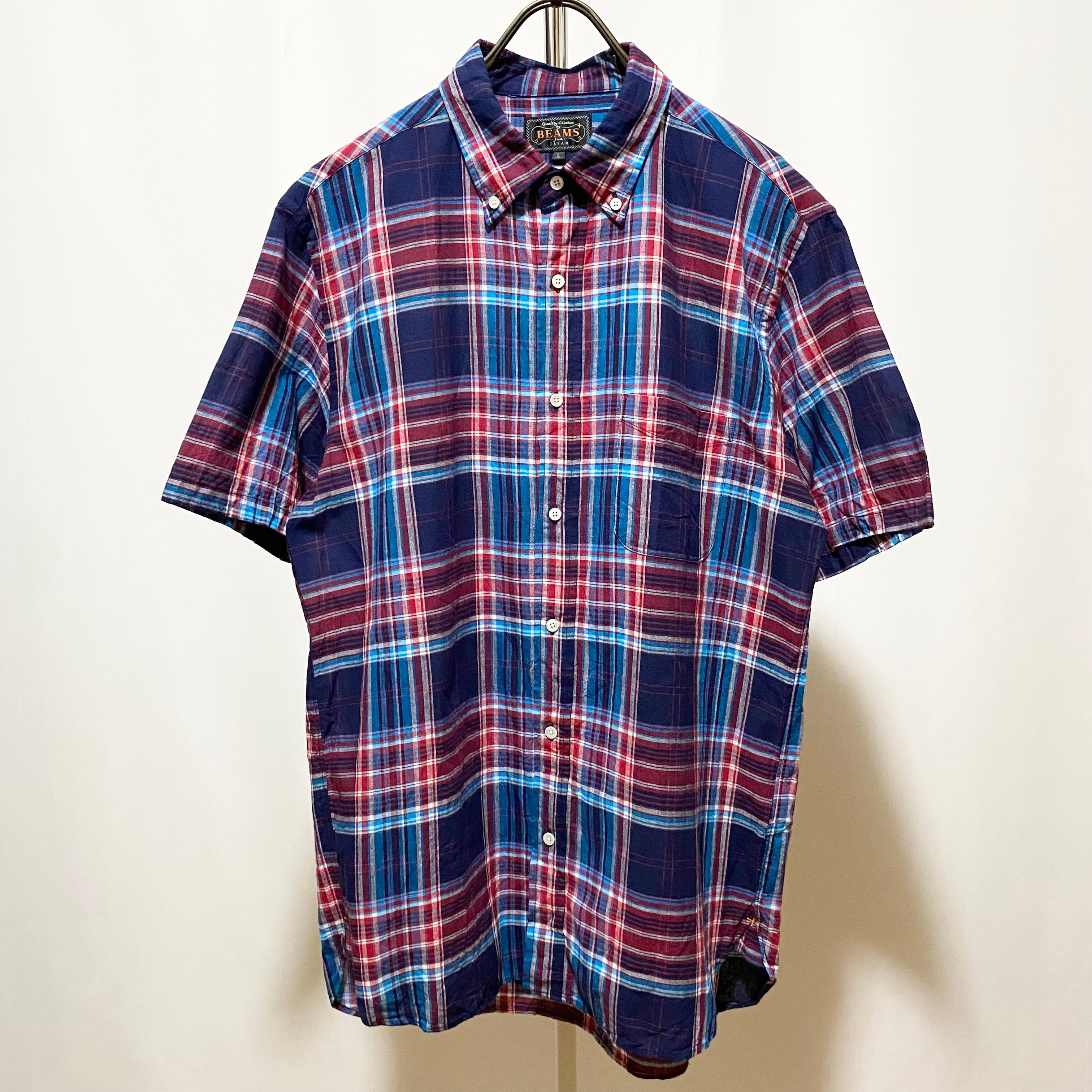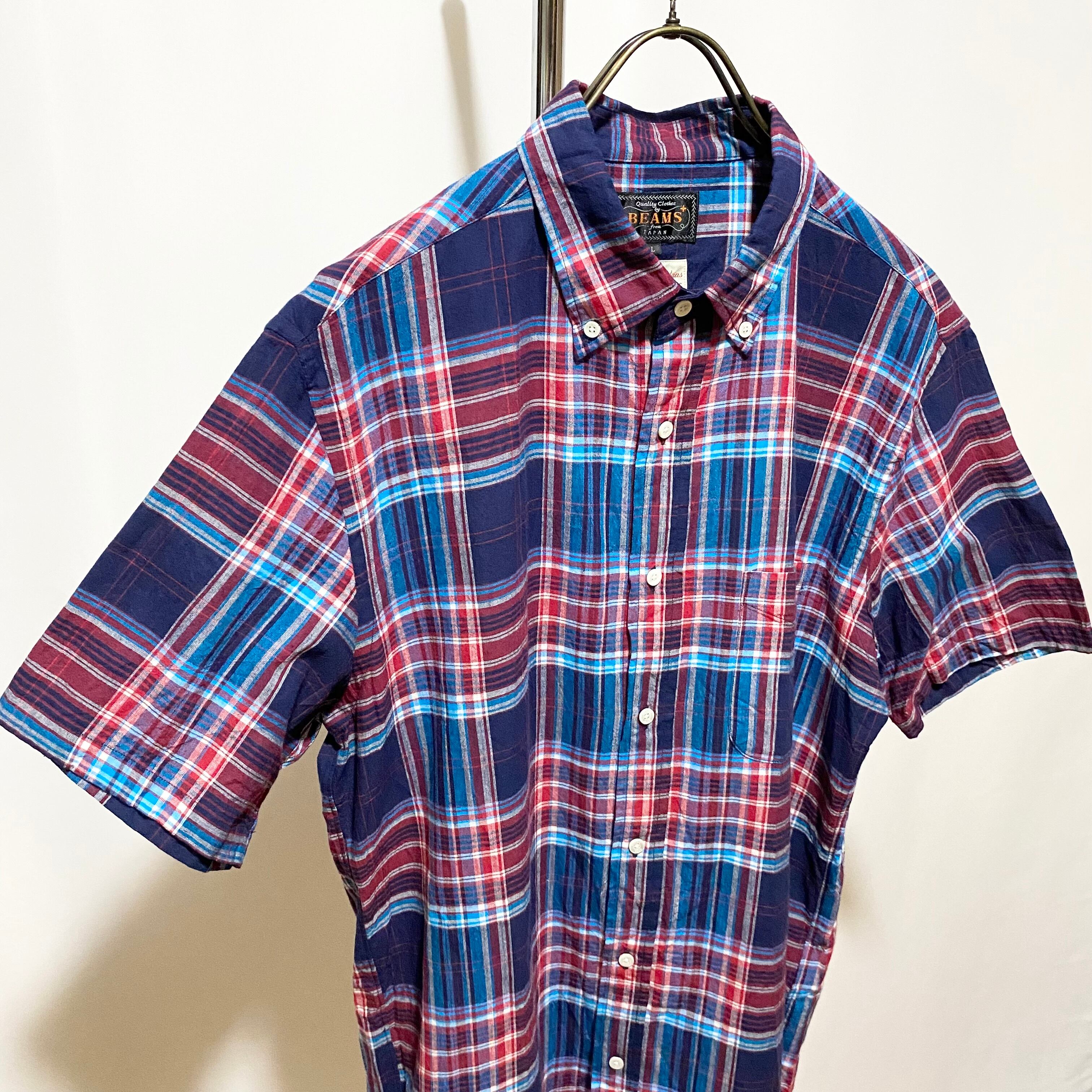 Beams Plus Madras CHK B.D Shirt S/S Navy Red L