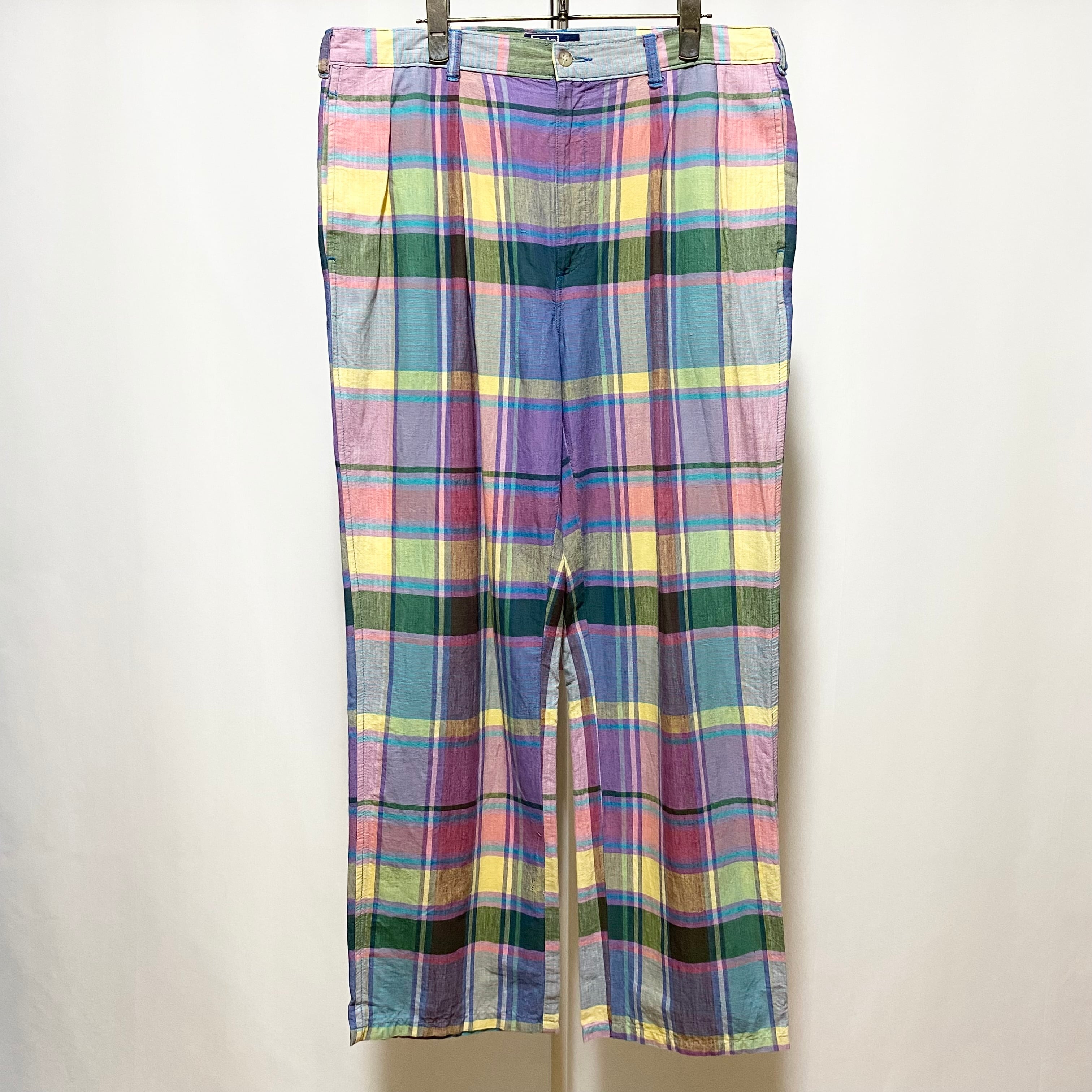 Polo by Ralph Lauren Madras CHK 2Tuck Pants Multi Made in USA 80s 90s