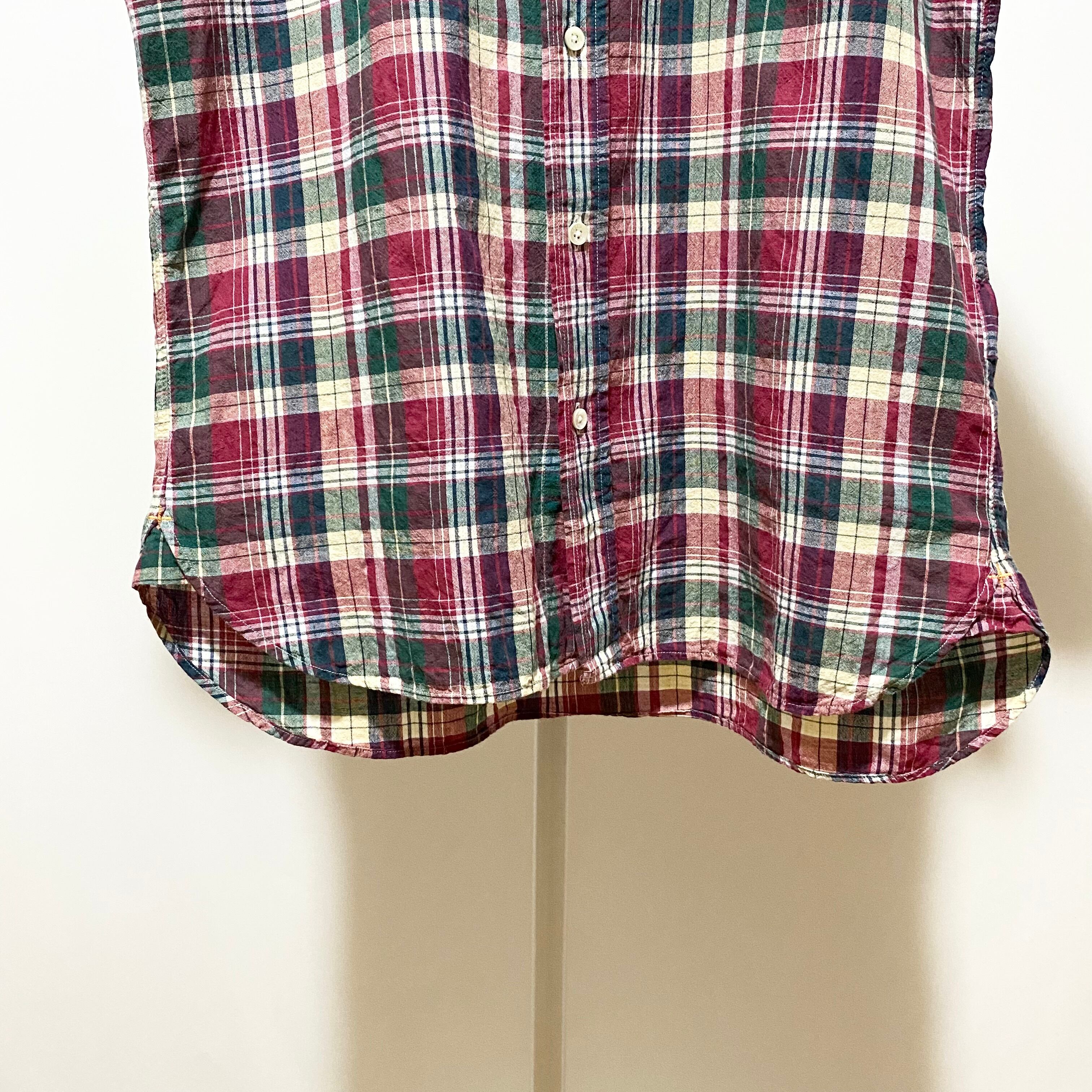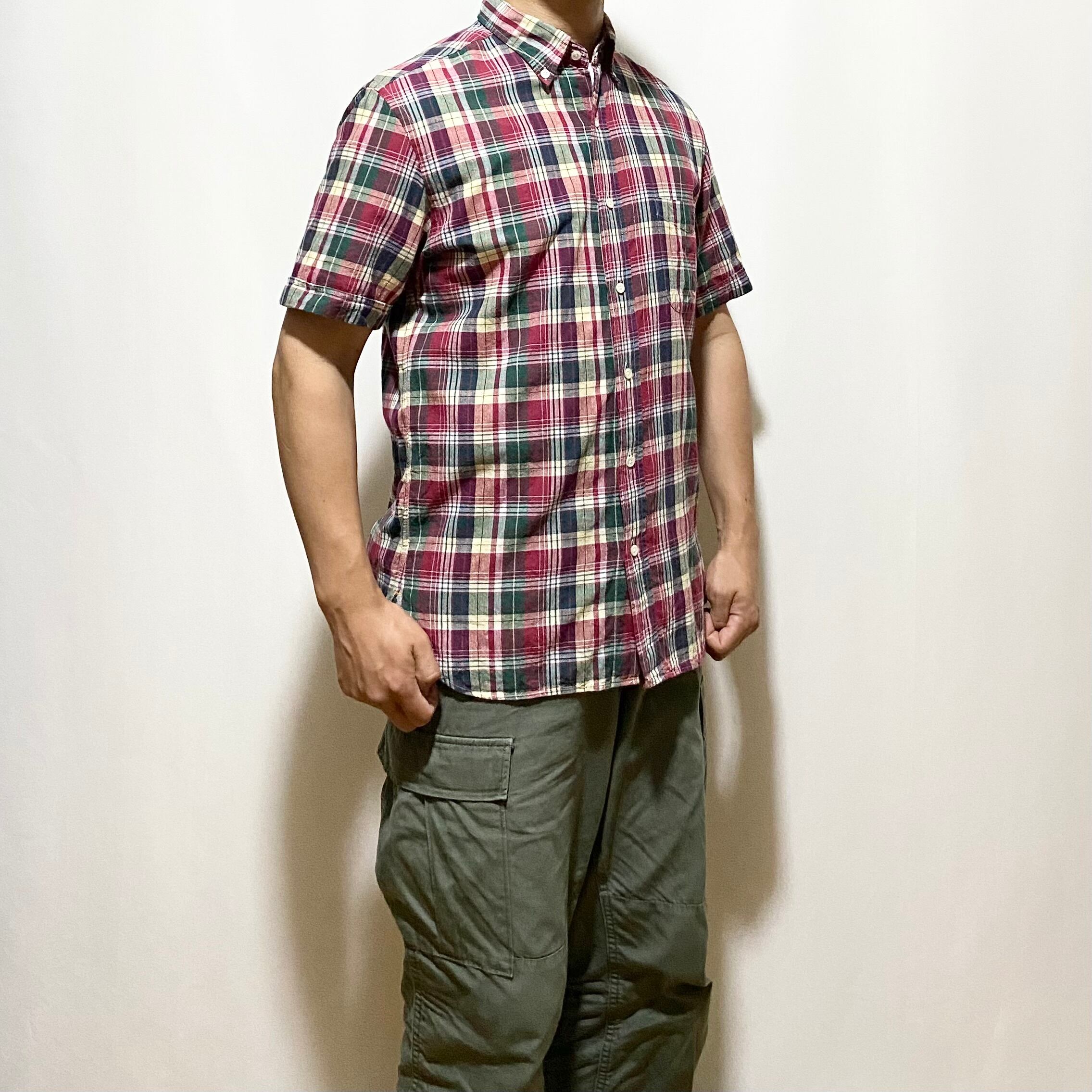 Beams Plus Madras CHK B.D Shirt S/S Burgundy Green M