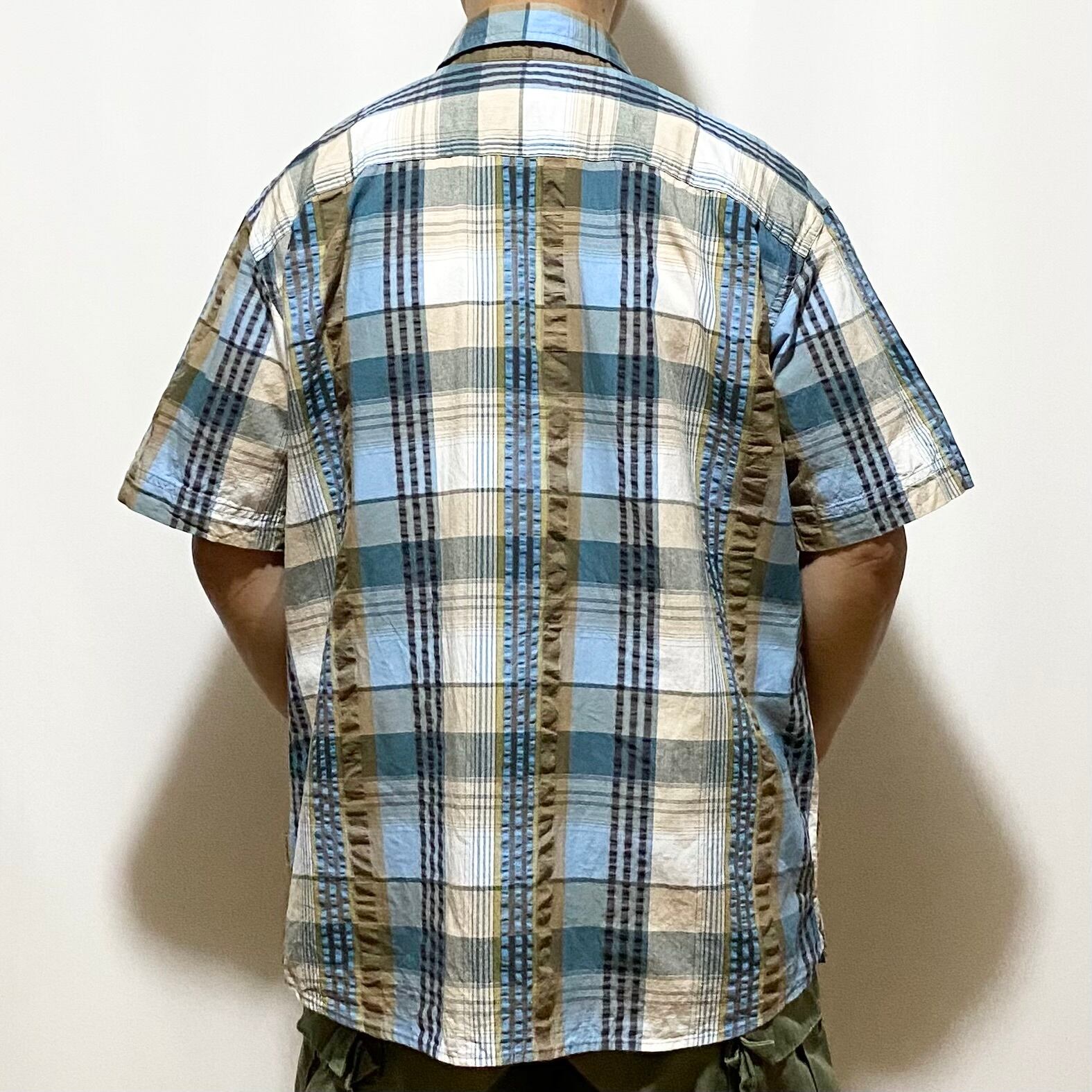 Eddie Bauer Sucker CHK W-Pocket Shirt S/S Blue Brown 00s
