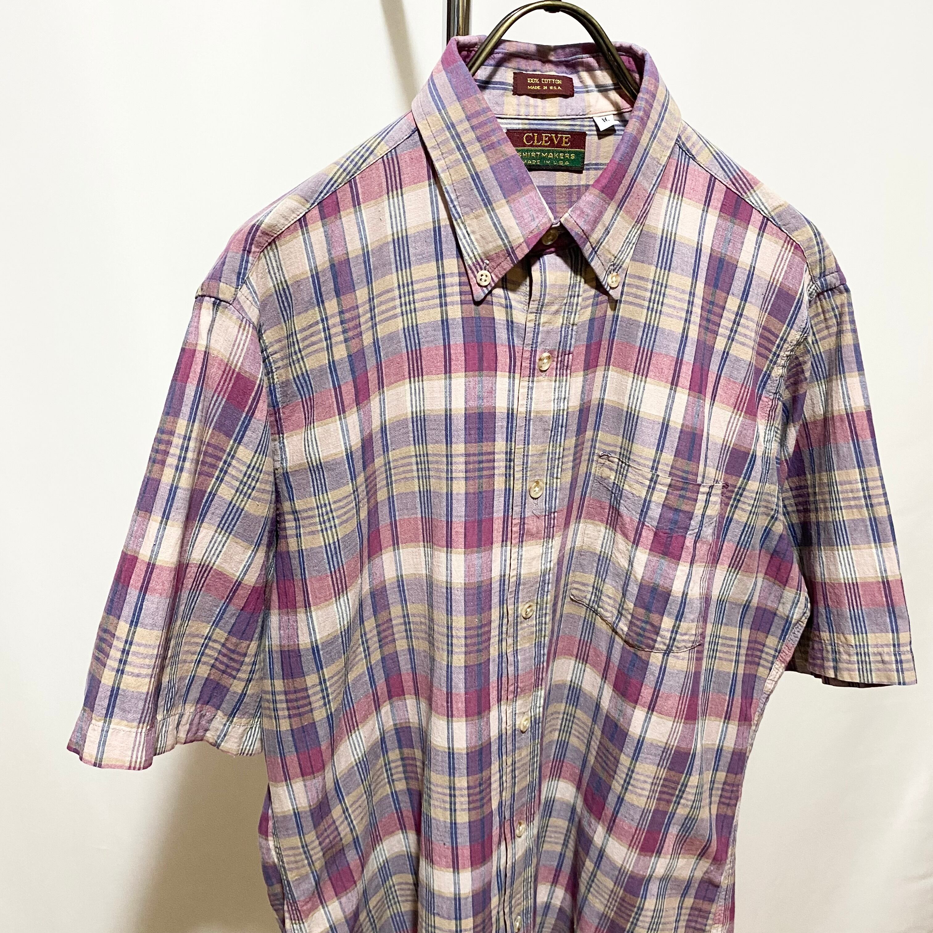CLEVE Shirtmakers Madras CHK B.D Shirt S/S Burgundy Pink Made in USA