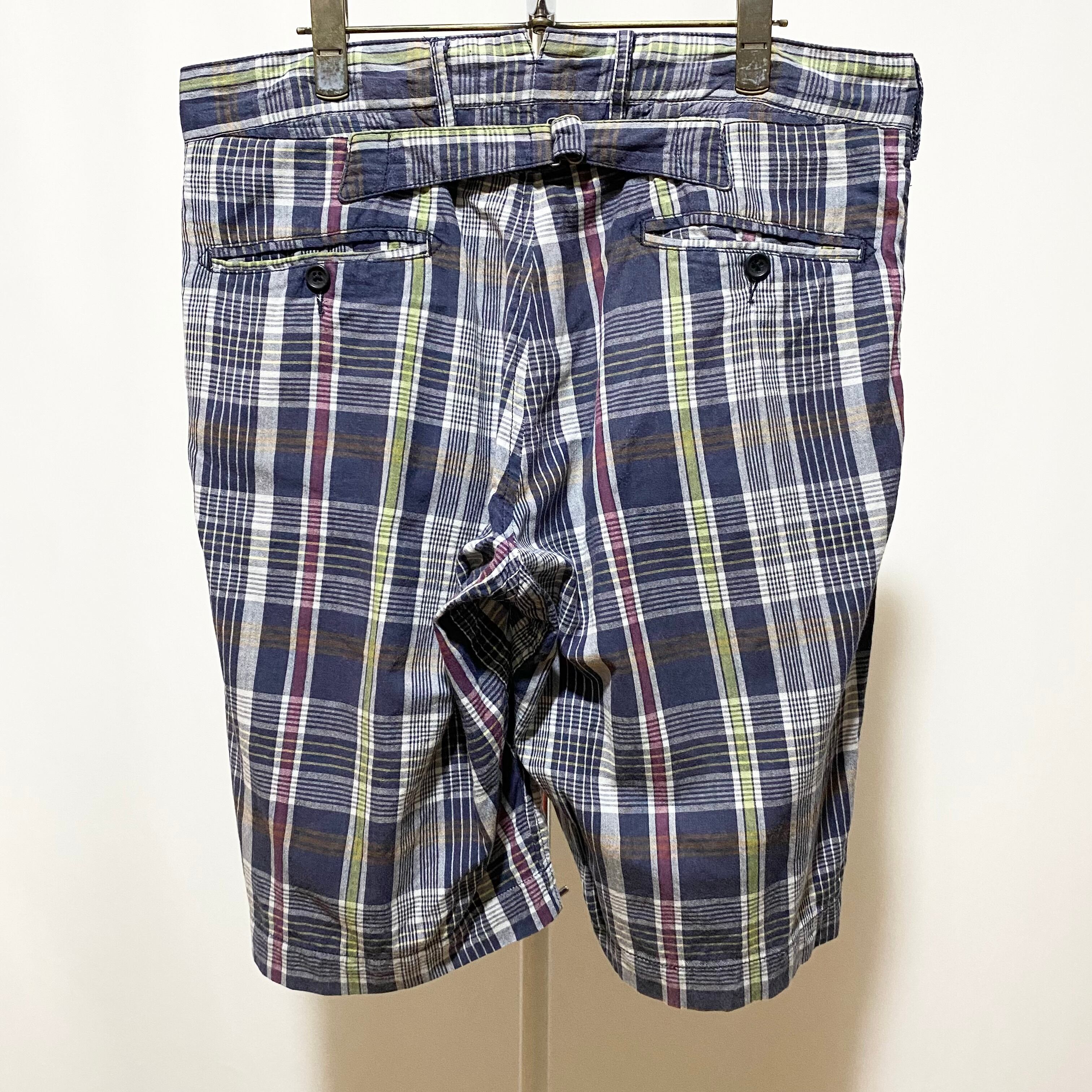Engineered Garments Madras CHK Shorts Navy Made in USA W32