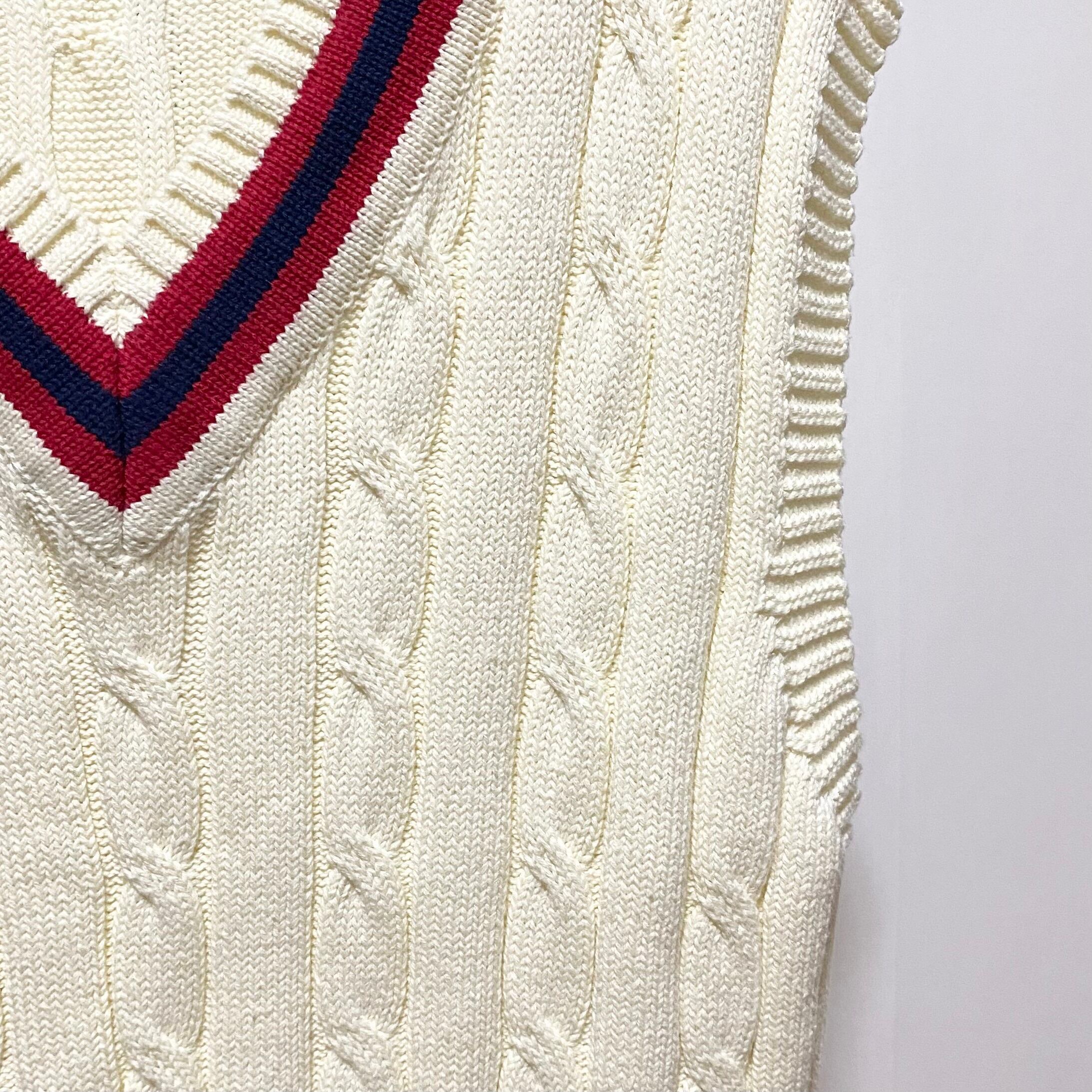 Oldderby Knitwear CTN Tilden Cricket Vest White Red Made in The United Kingdom