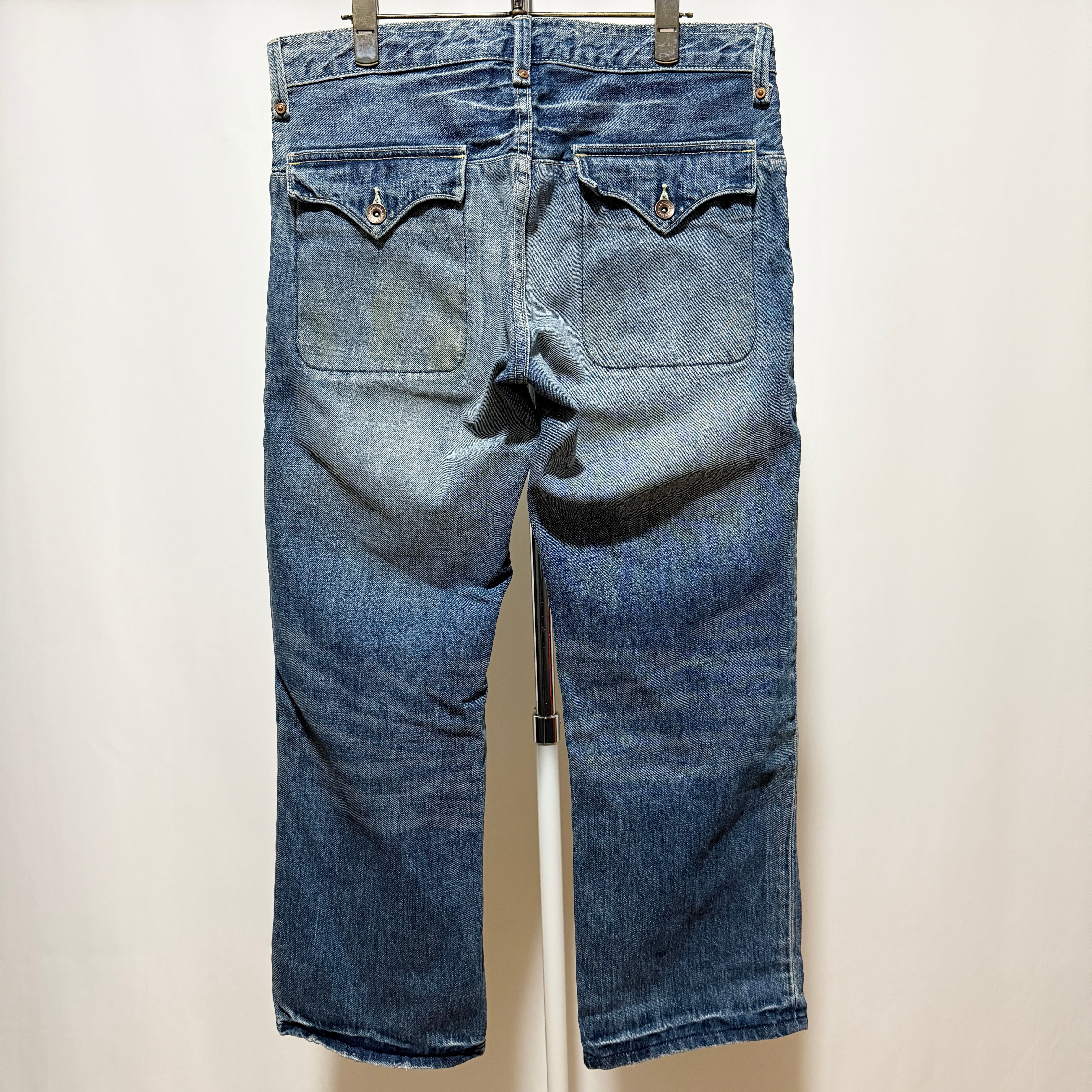 加工バキバキでヨーク型のフラップは正にトゥルー。でもフレアシルエットじゃなくてストレート、そして28インチのレングスという短丈がポイントです◎◎◎