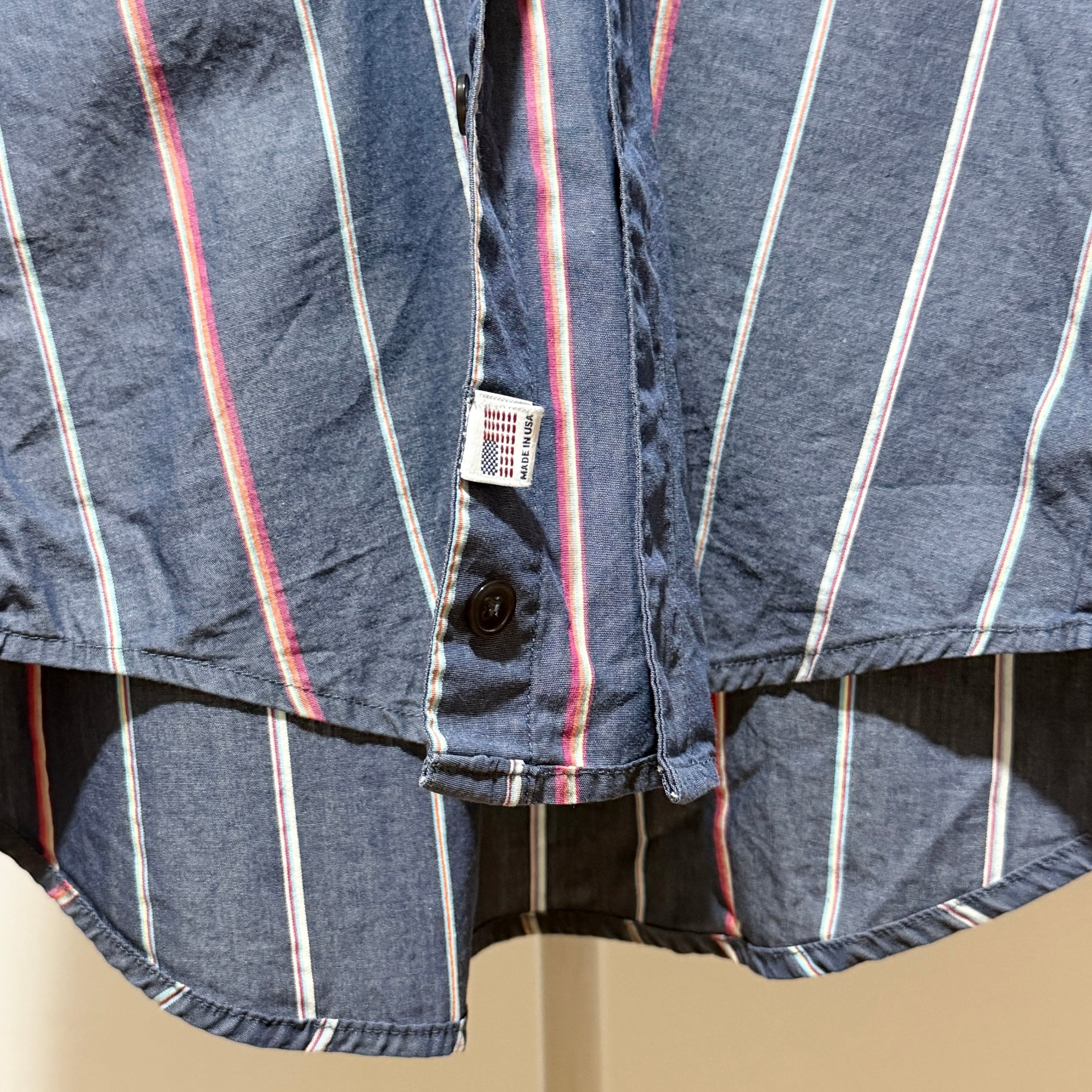 Steven Alan Chambray Stripe Reverse Seam Shirt Navy Made in USA