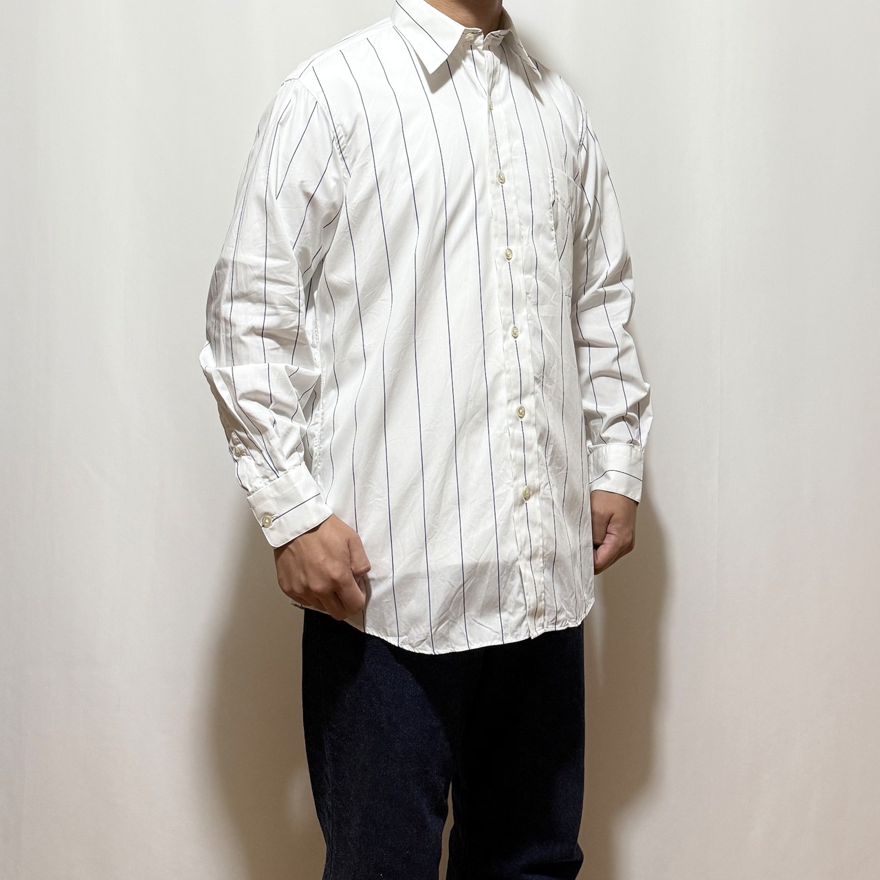 絶対に使える白シャツでピッチ細めのワイドなストライプ◎◎◎ 多分今作るにしても生地自体があんまり見つからない気がするブロード生地のレギュラーカラーシャツです◎◎◎