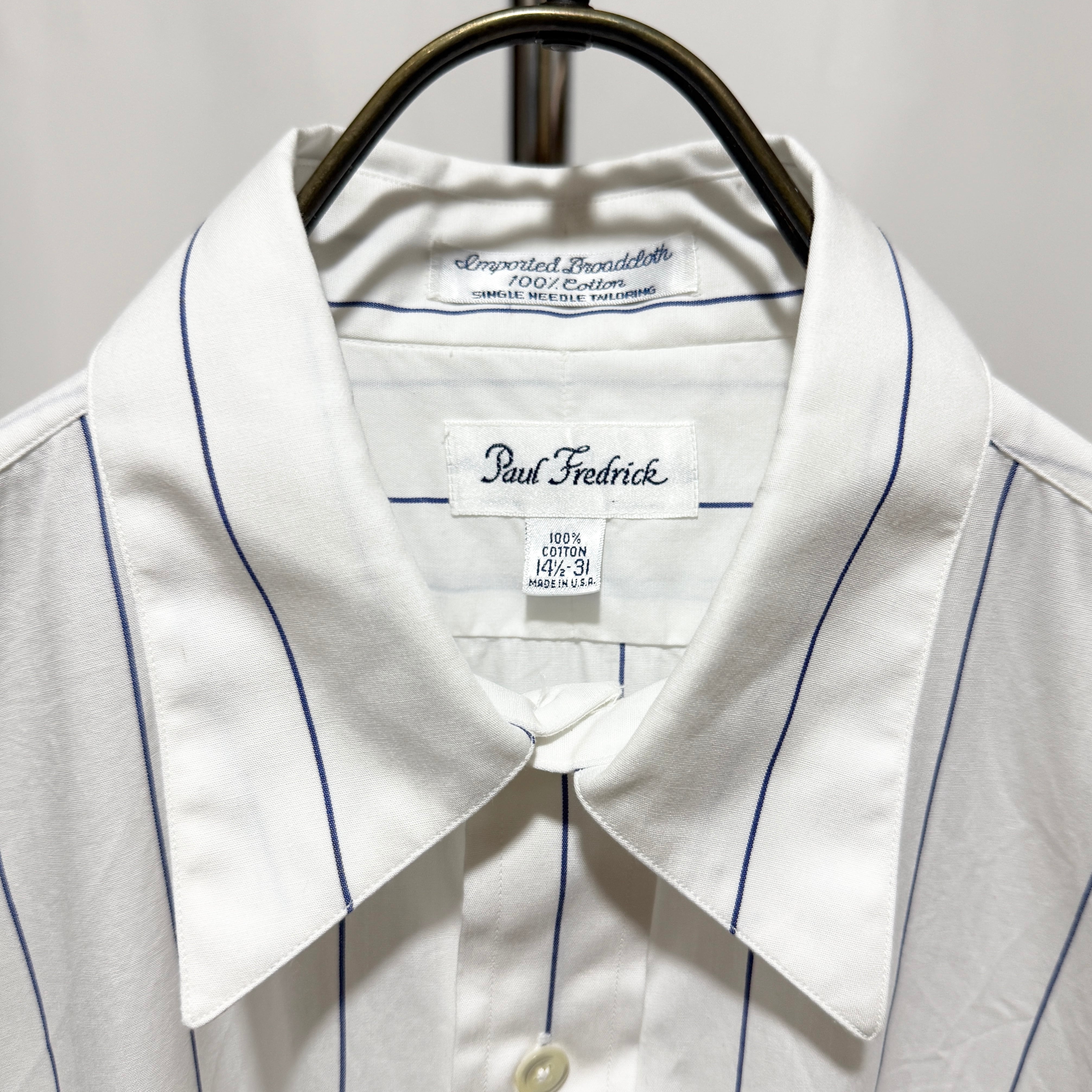 Paul Frederick Stripe Regular Collar Shirt White Navy Made in USA 14 1/2-31