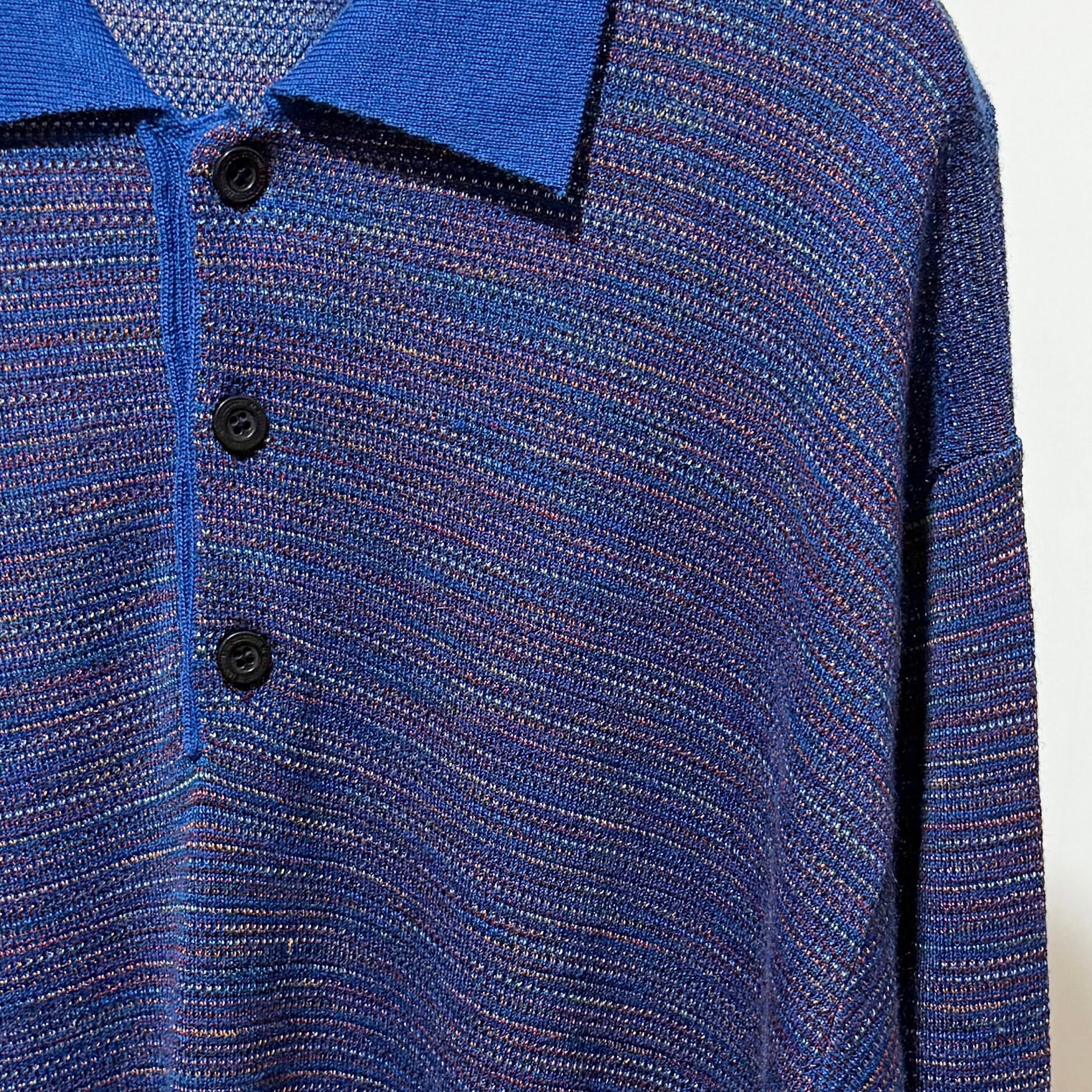 MISSONI Multi BDR Knit Polo Shirt Blue Made in Italy