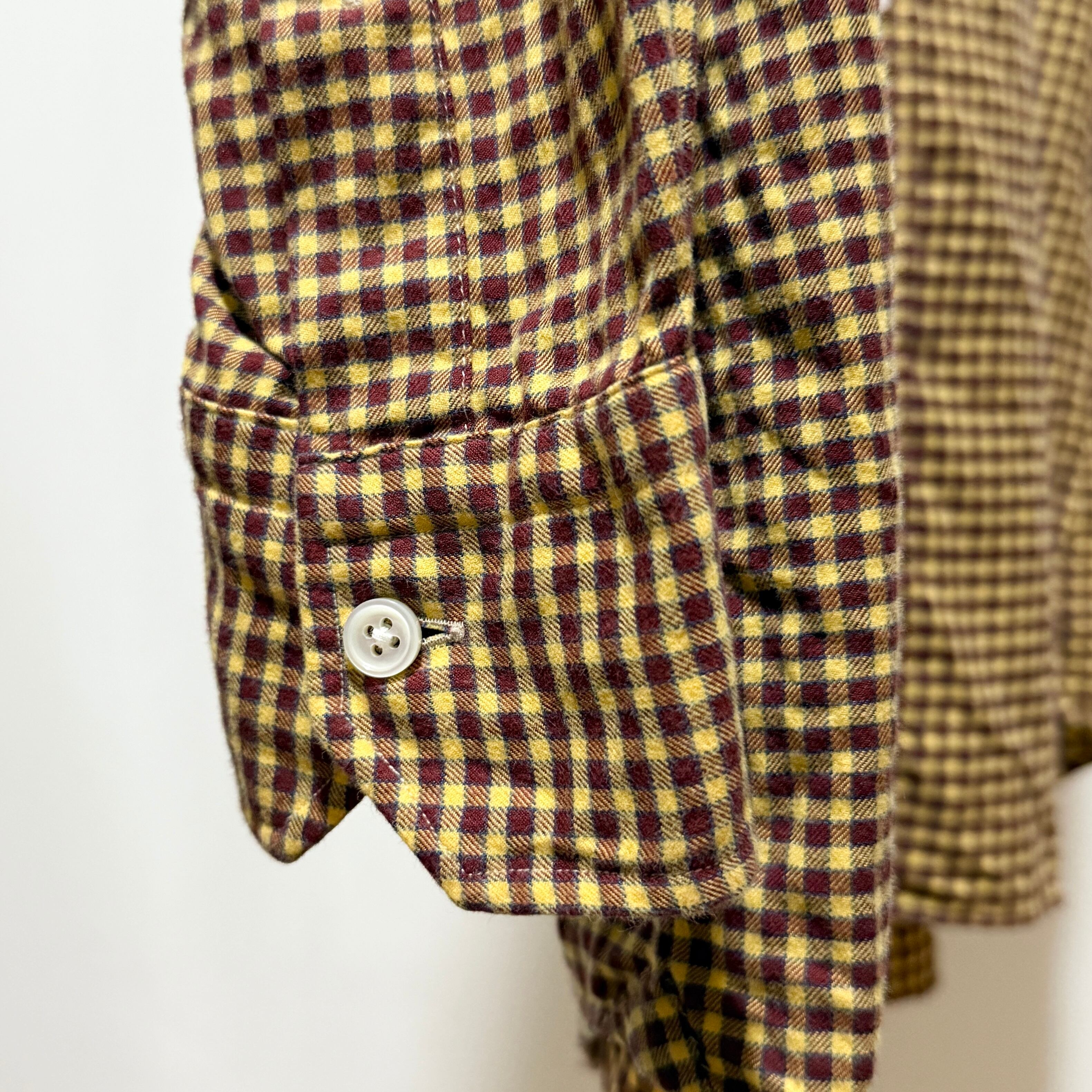 秋冬らしい配色の暖かみのあるチェックは小柄でスタイリングしやすい◎◎◎ ワイドカラーもコンパクトなので、ニットの下に着て襟出しなんかも粋ですね◎◎◎