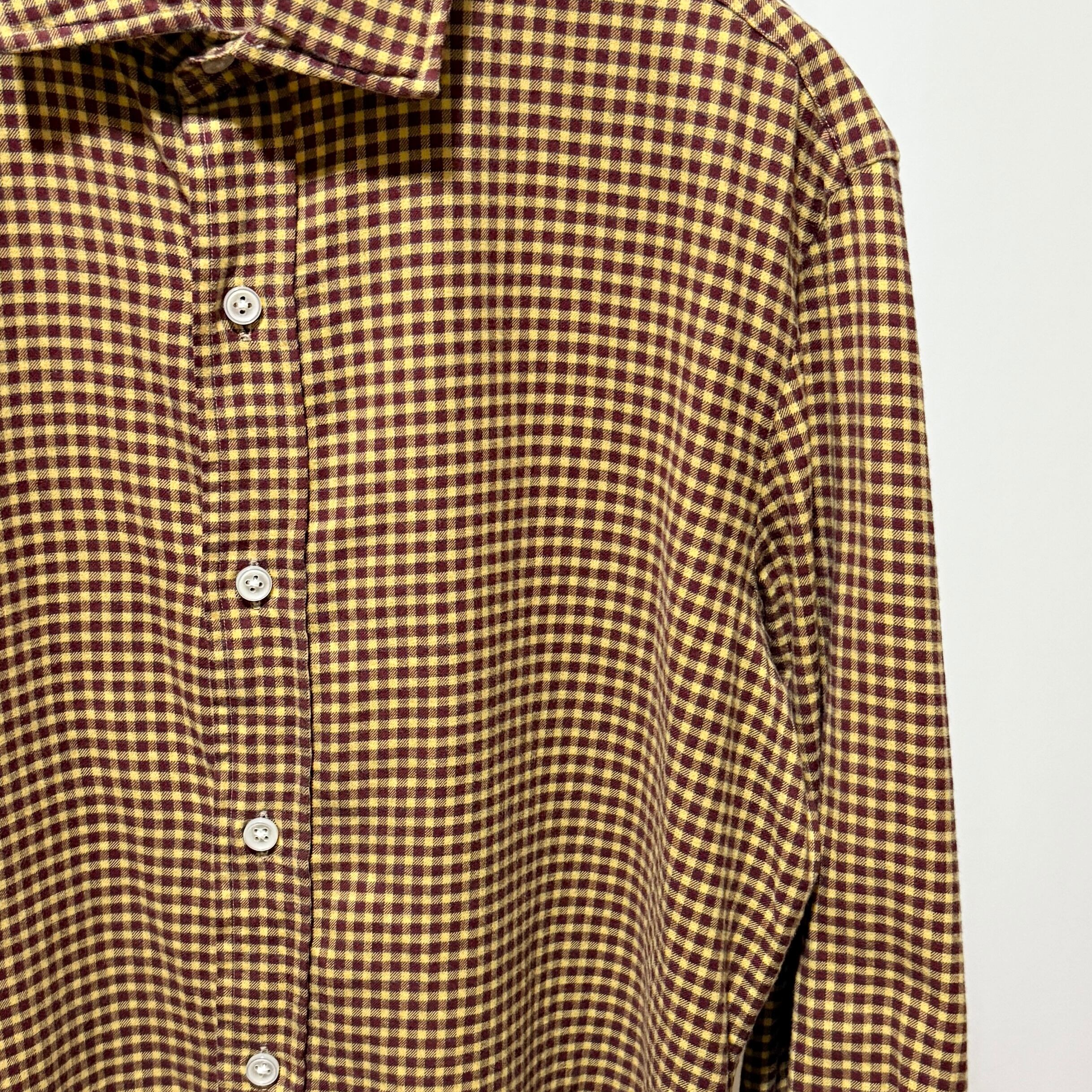 Salvatore Piccolo Light Nel Wide Collar Shirt Yellow Burgundy Made in Italy 39