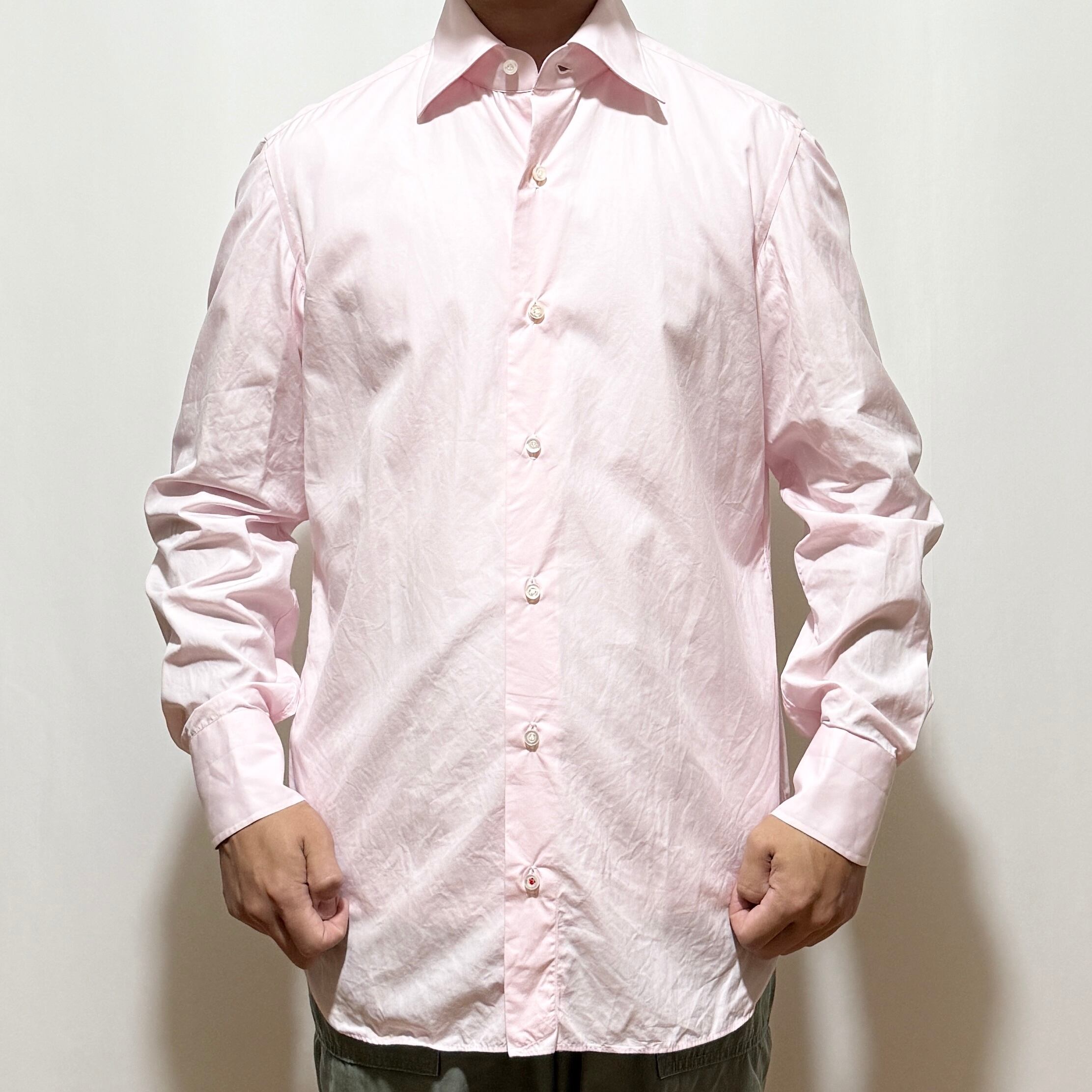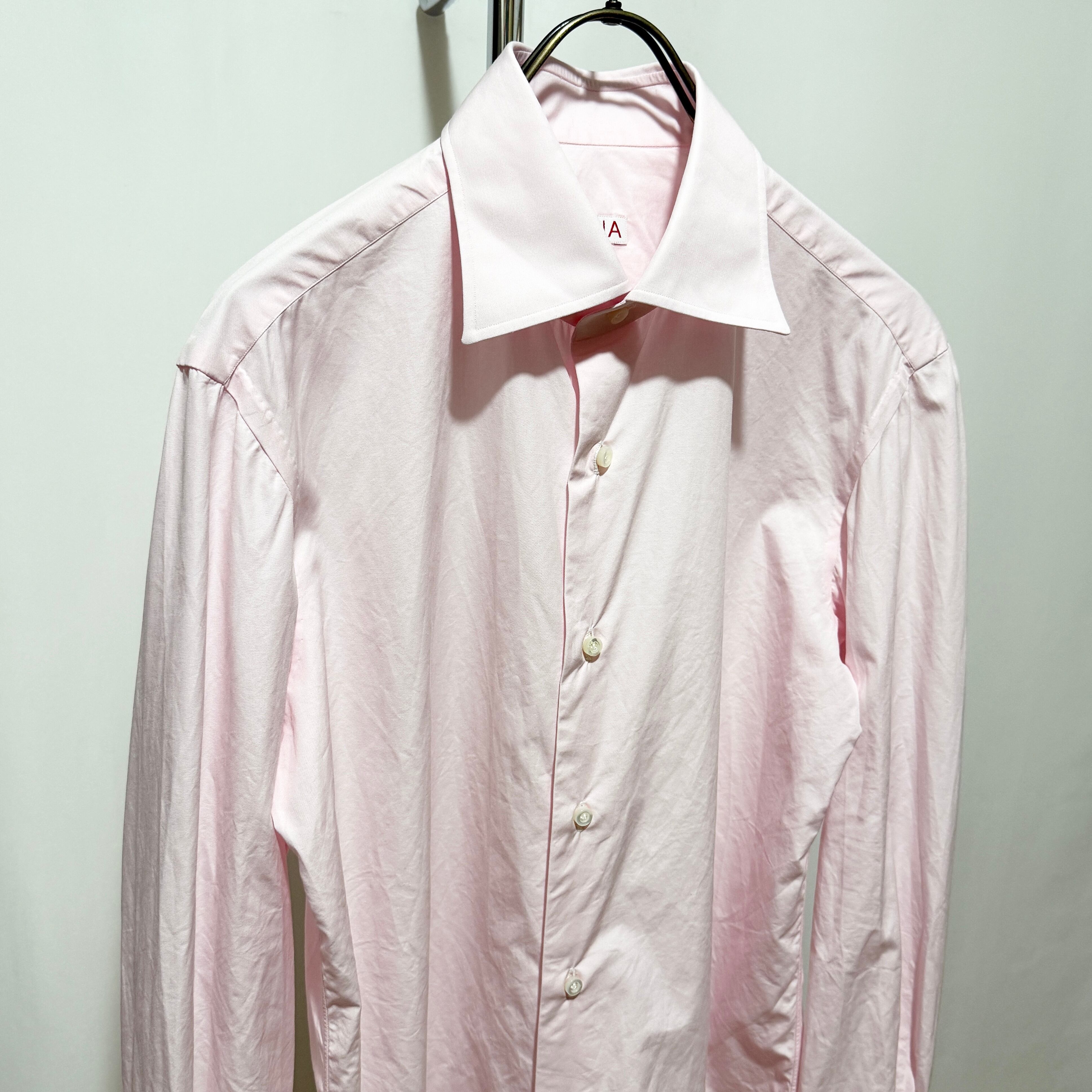 ISAIA Broadcloth Wide Collar Shirt Pink Made in Italy 39