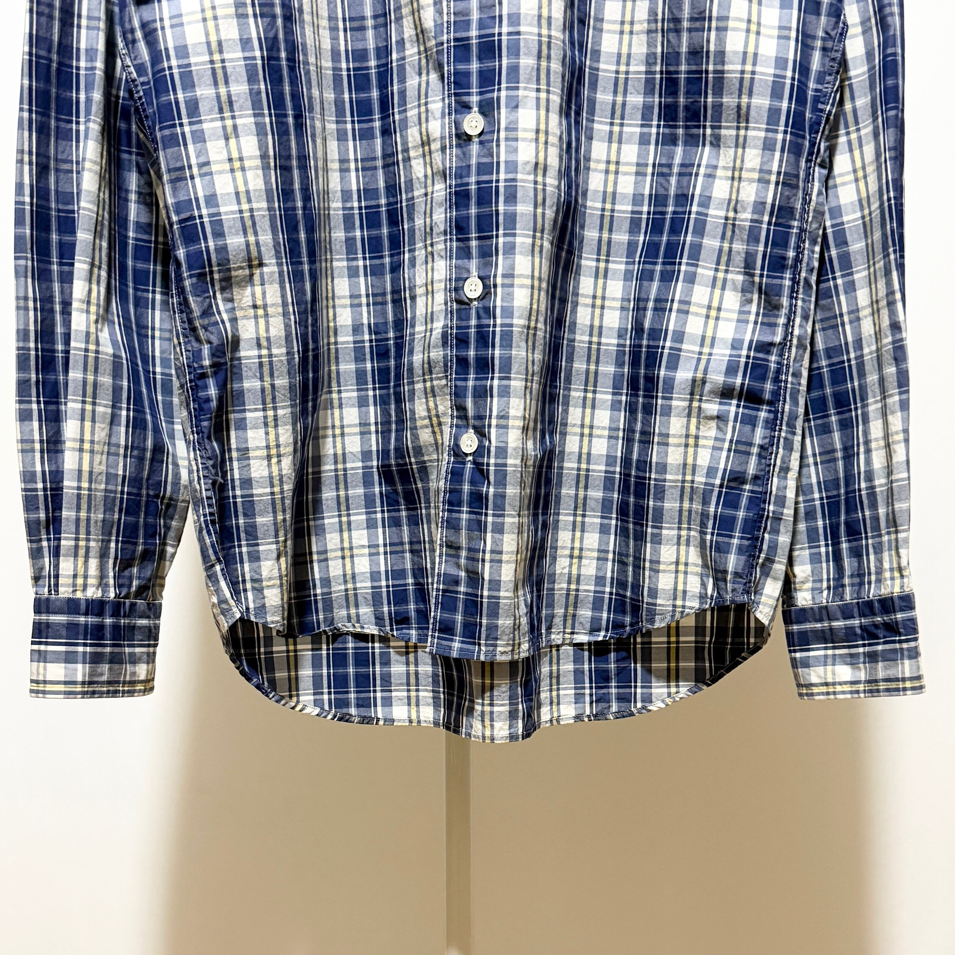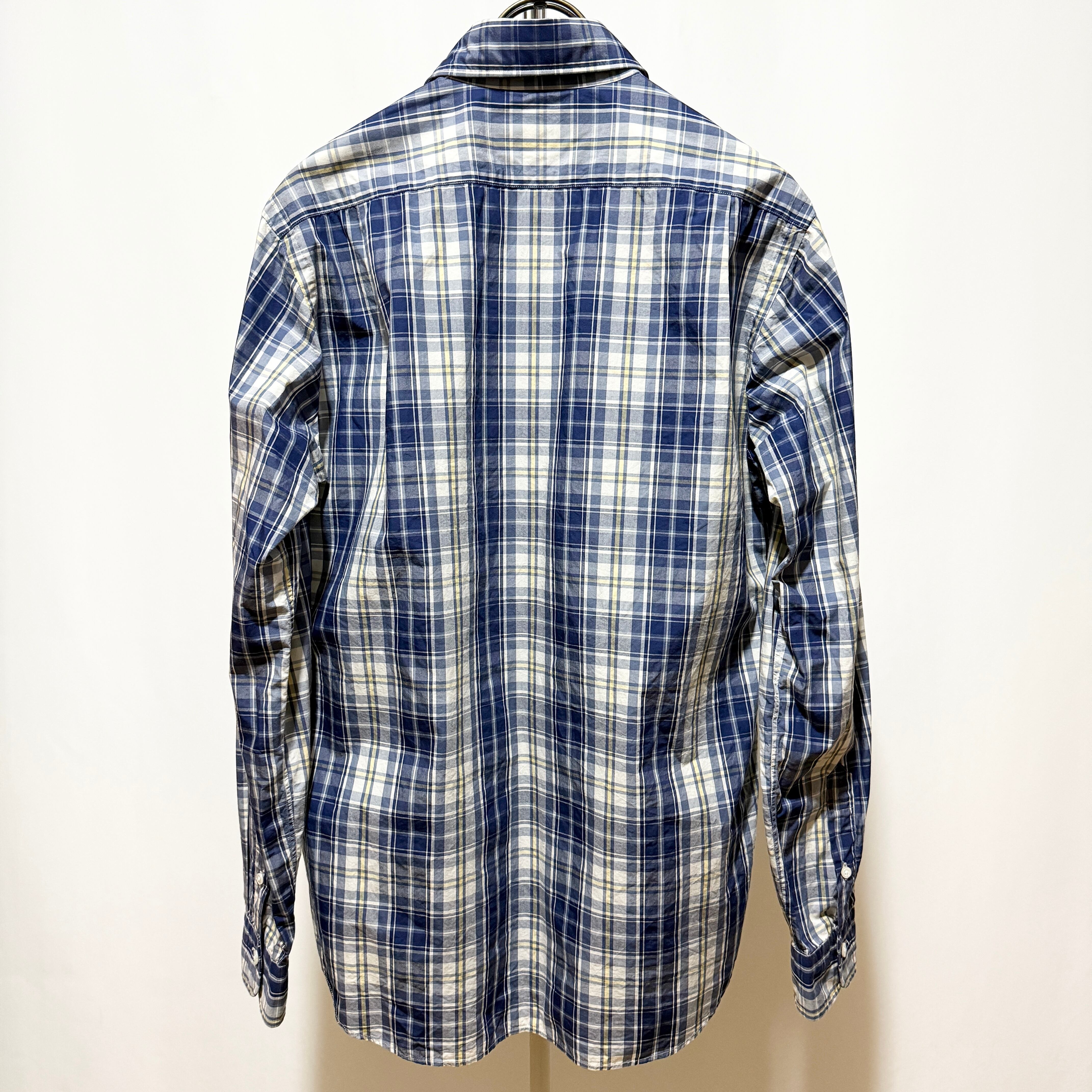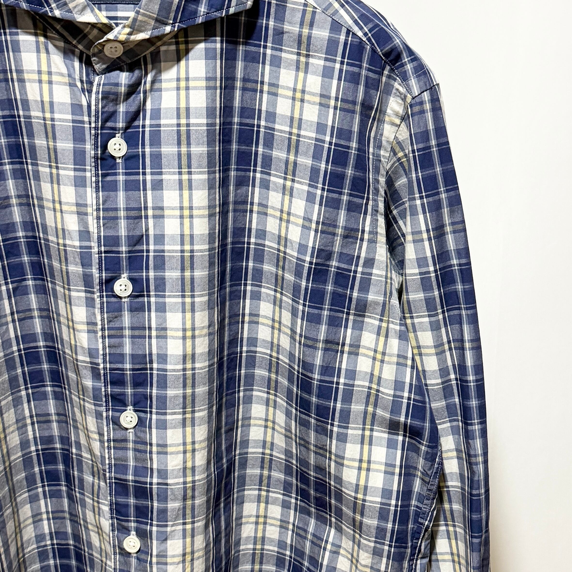 134 Kamakura Shirt CHK Horizontal Collar Shirt Navy M
