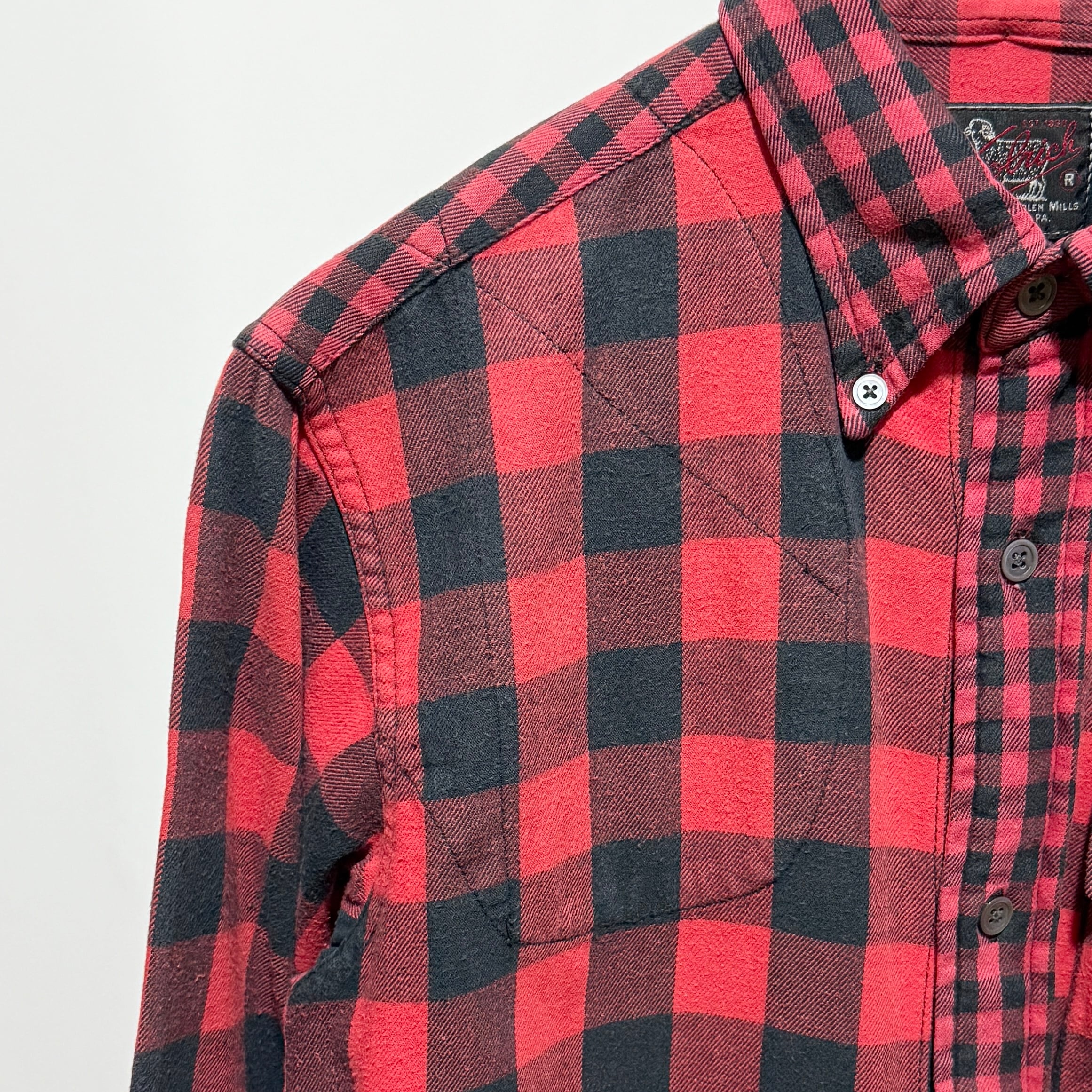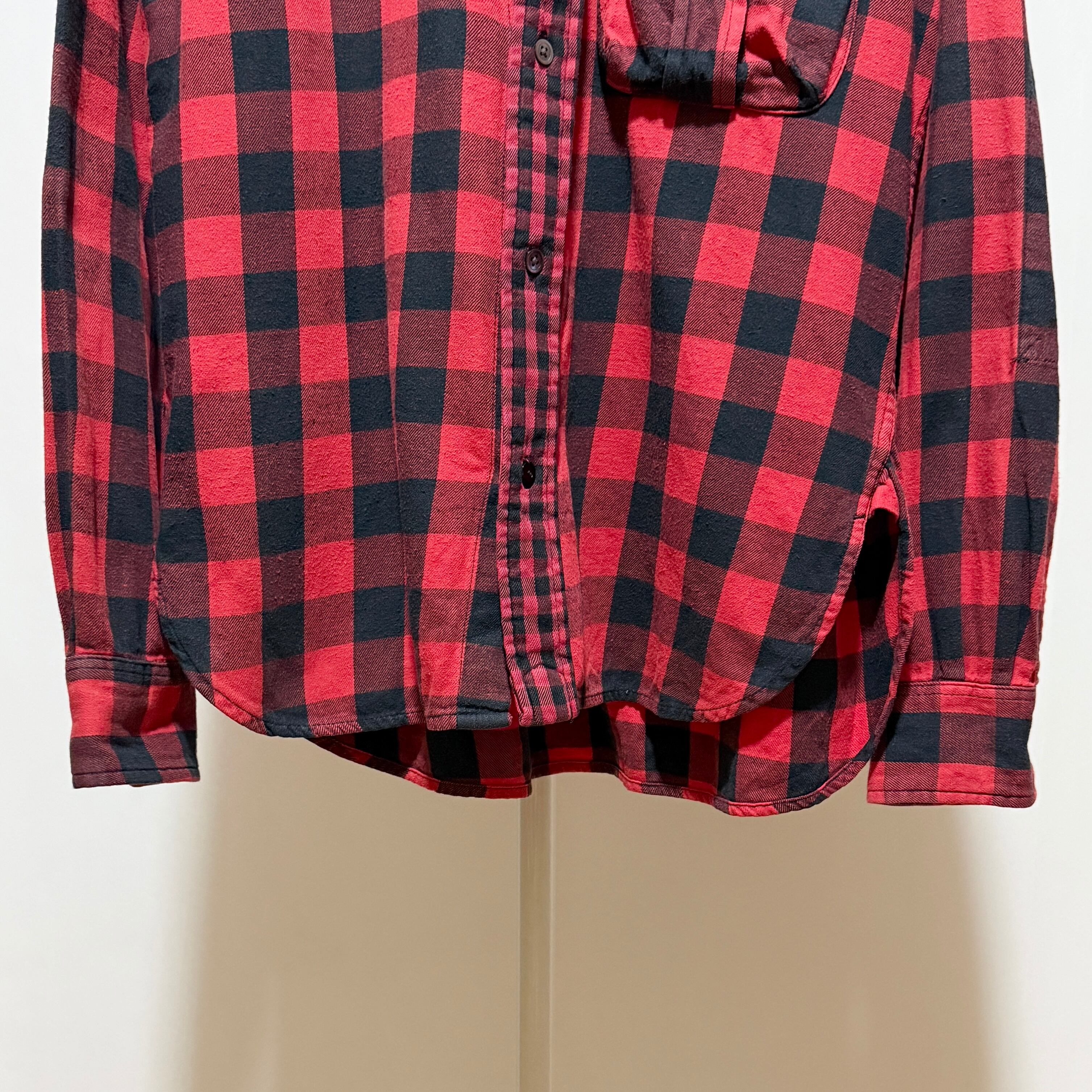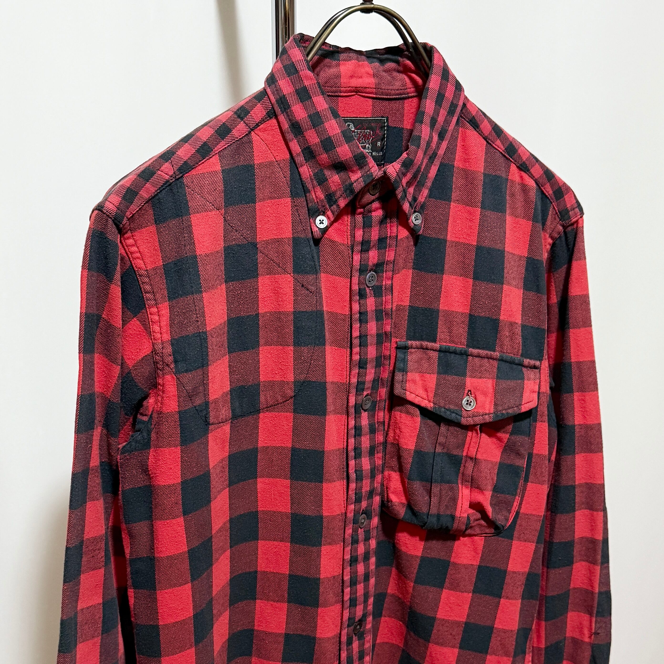 ウールリッチのシグネチャーな赤×黒のブロックチェックに同色の少し大き目なギンガムを絡めたこのシャツ◎◎◎ いい具合に着込まれて毛羽立ちやフェード感はまるでヴィンテージのようです◎◎◎ 深めに入ったサイドのスリットやガゼットでより本物感。もちろんアメリカ製ですから完全なるEGの世界観をウールリッチで表現したという感じに◎◎◎