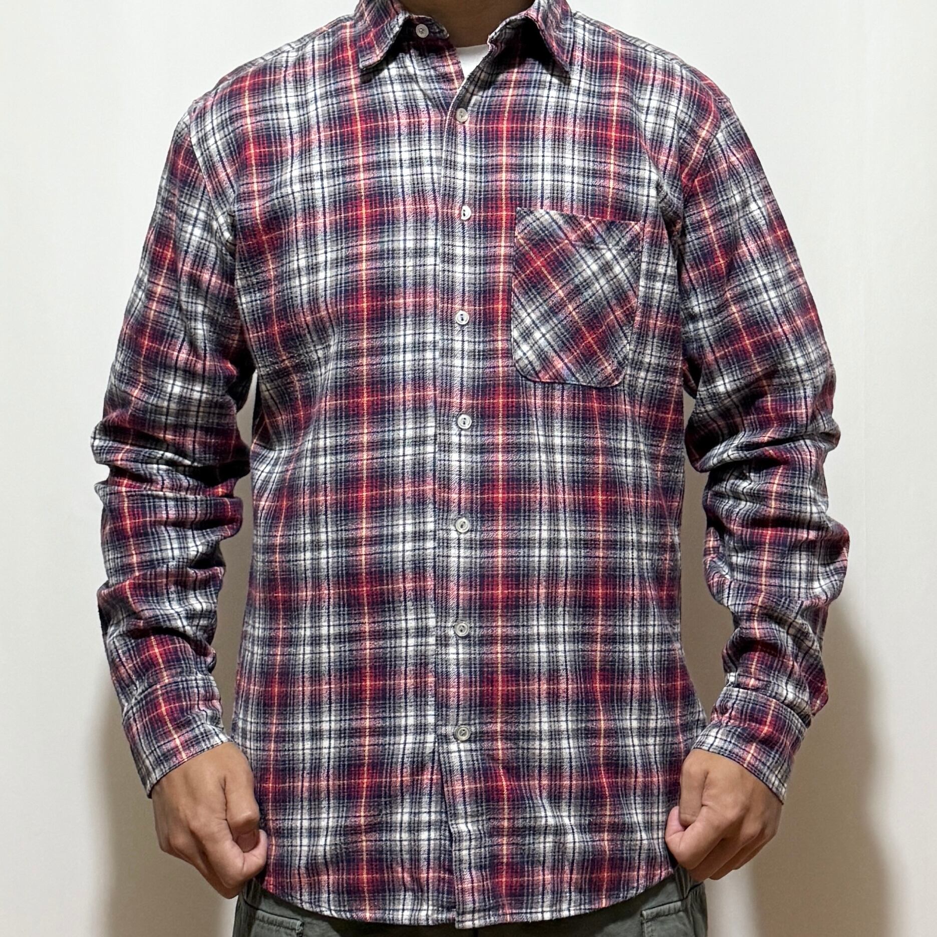 00年代以降にアメリカをはじめ欧米ではスタンダードになったシルエットで、少しダサいぐらいのチェック柄、変にデザインを入れない潔さ、と、今店主的にはこういうので良いが詰まったネルシャツ◎◎◎