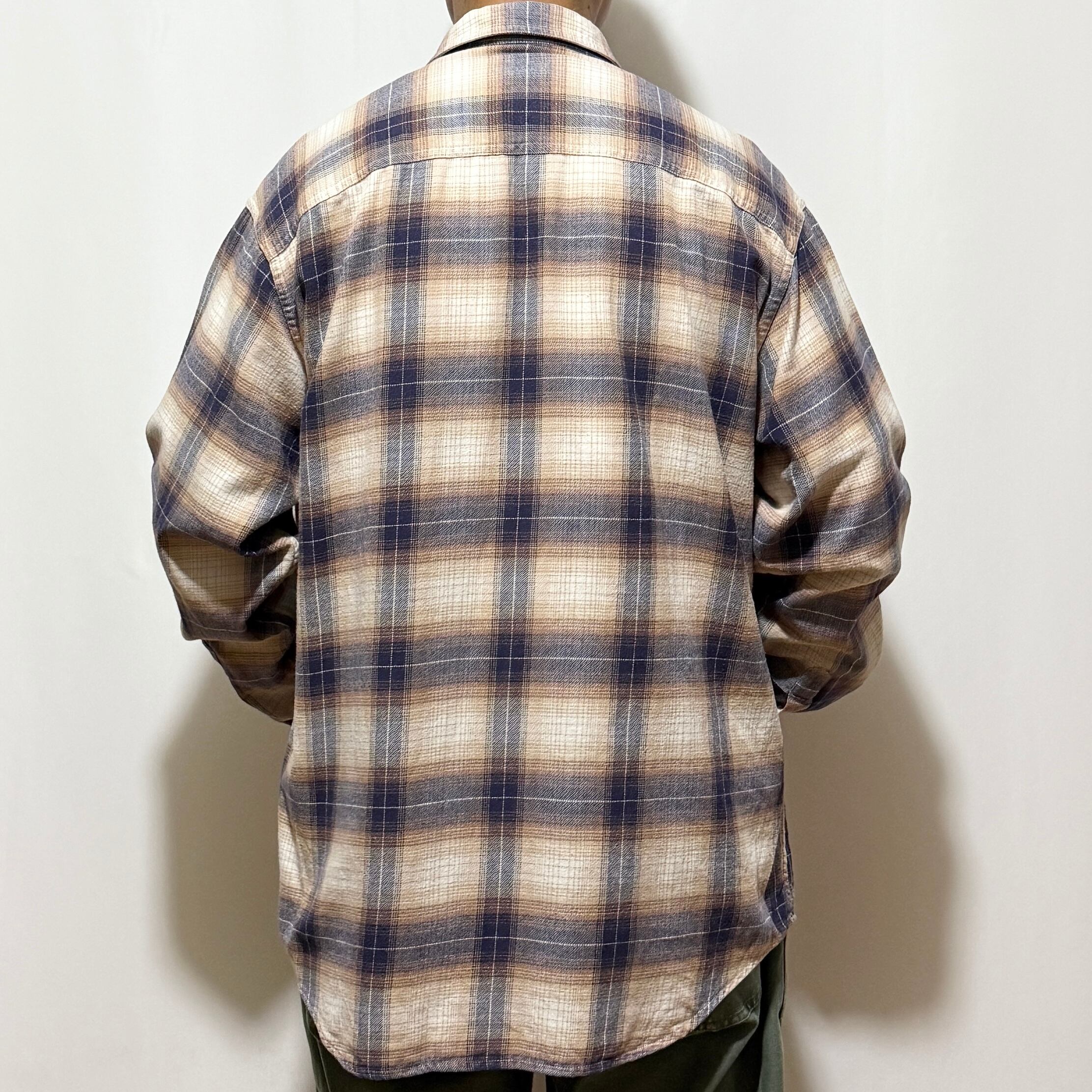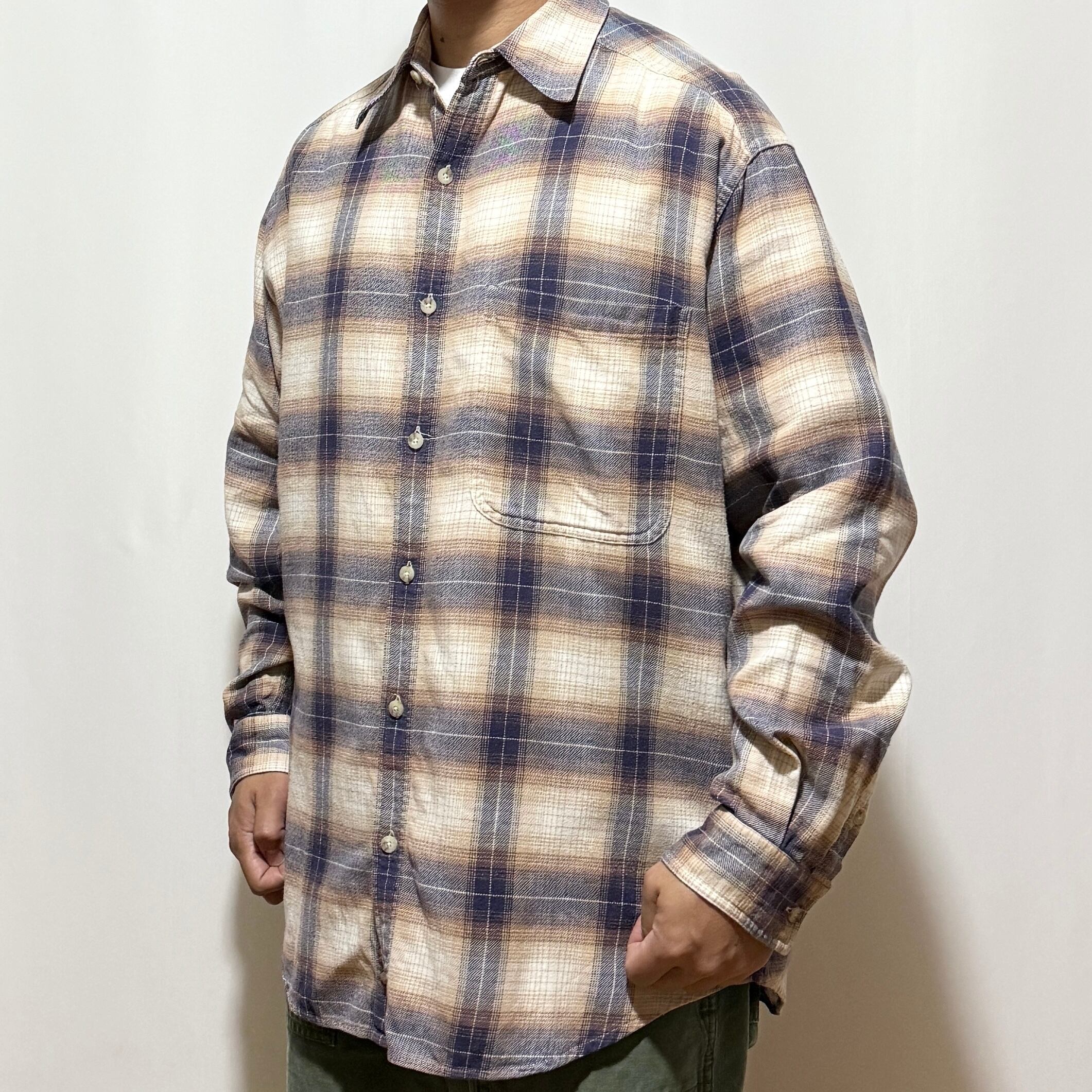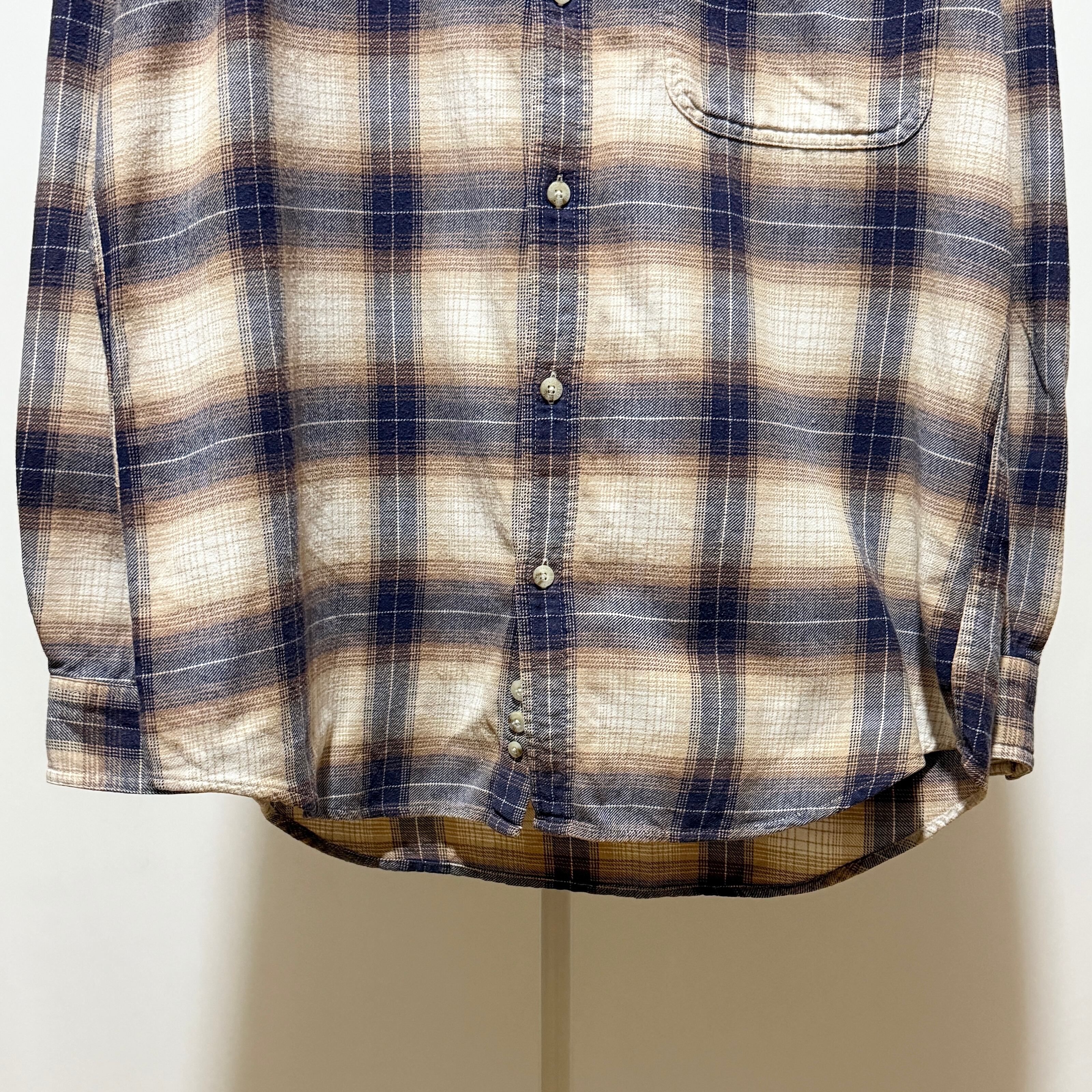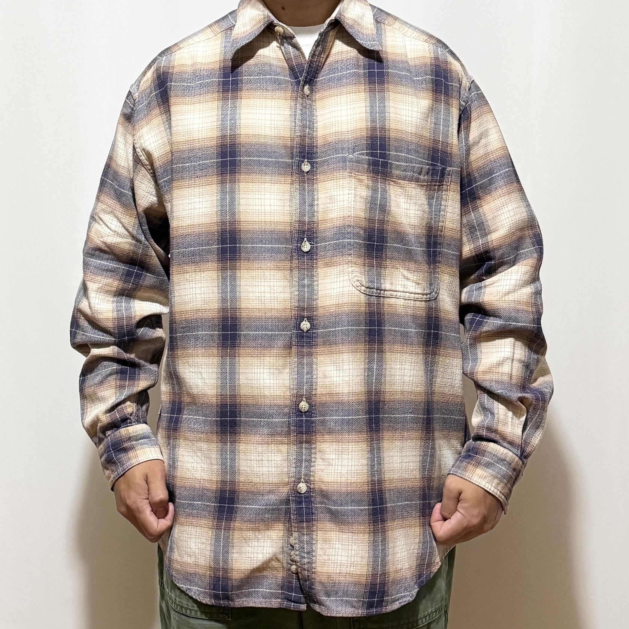 エディーバウアーの90~00年代の黒タグでシルエットはいつもの大きい感じ。で、何故かレギュラーカラーでクリーミーな色味なオンブレチェック◎◎◎