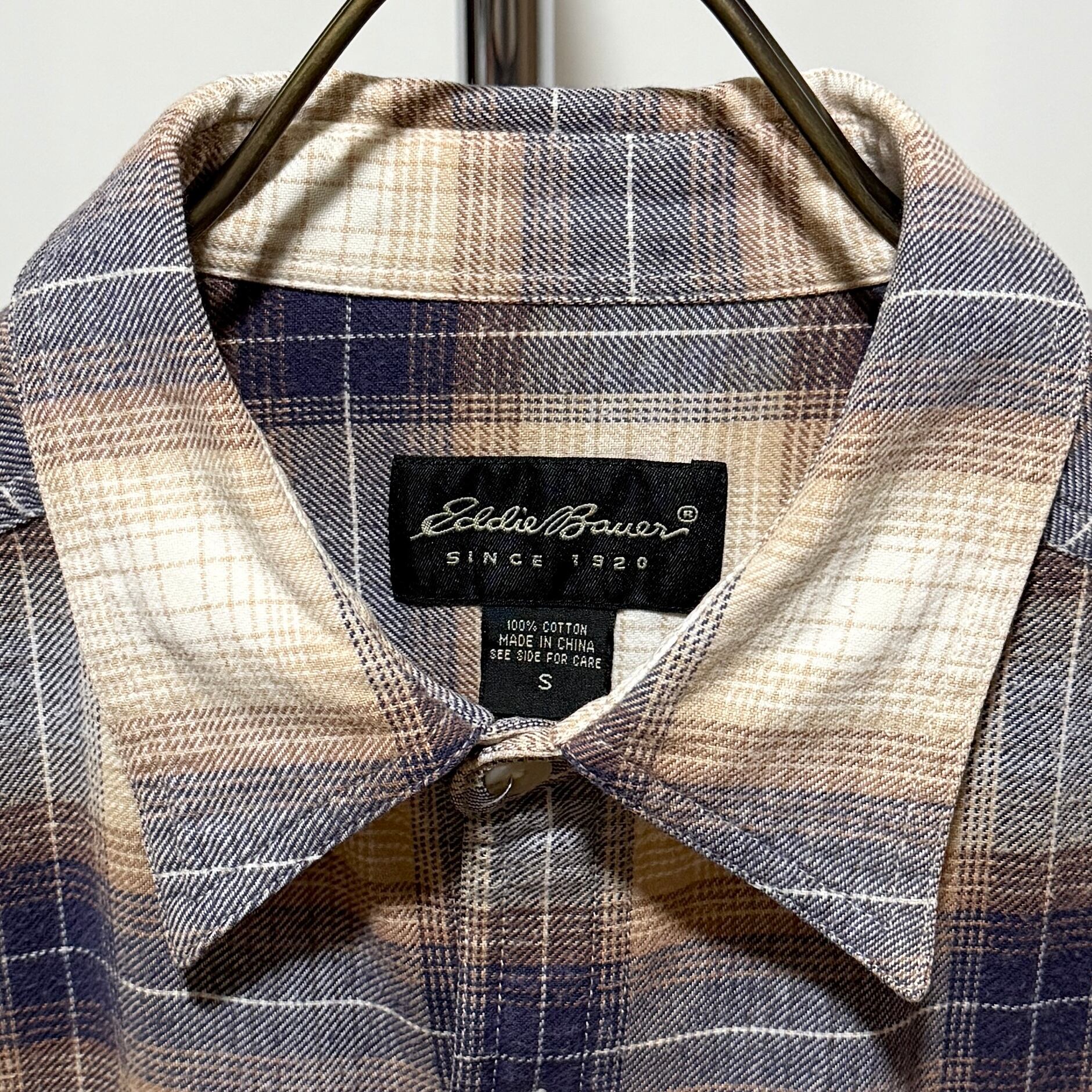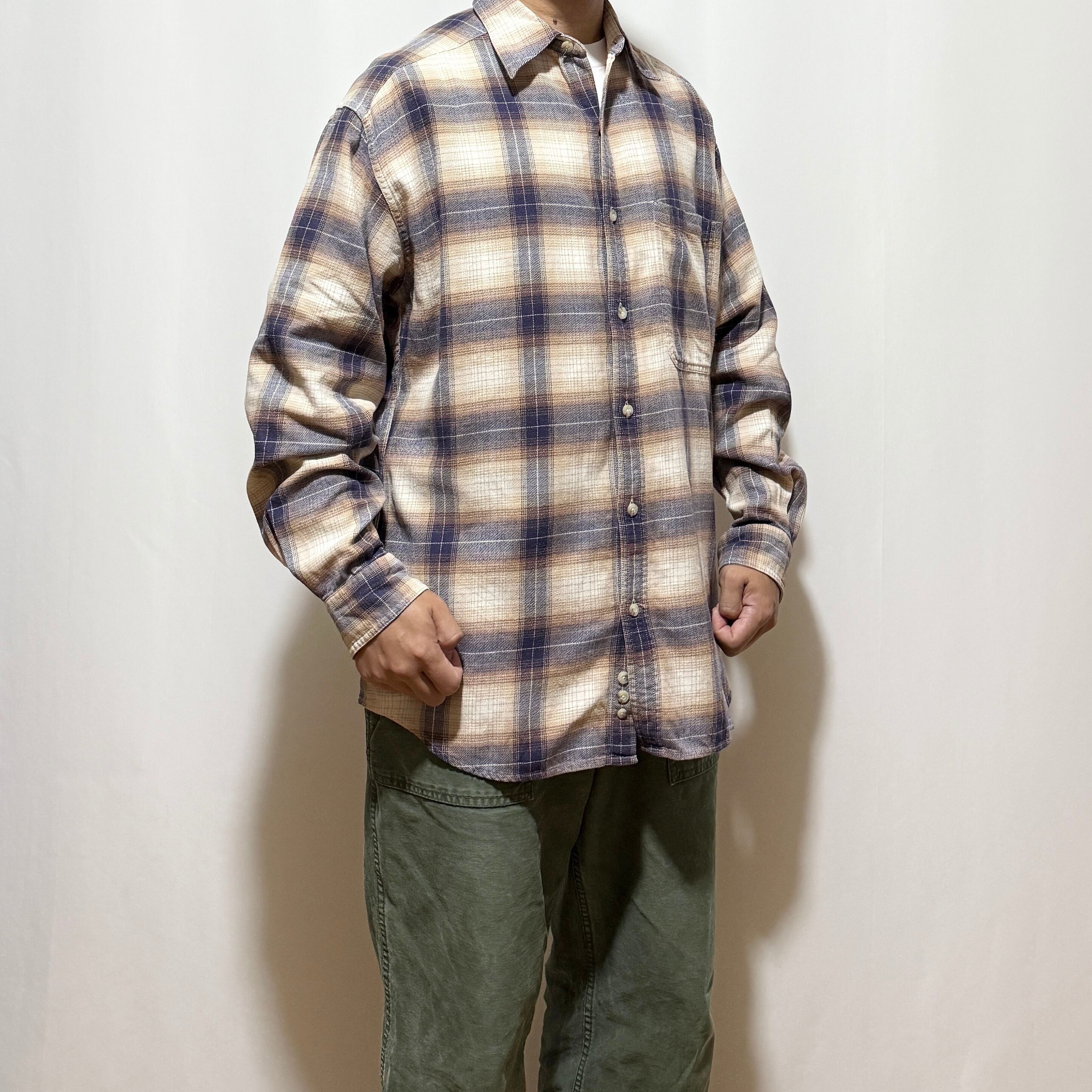 Eddie Bauer Onbre CHK Nel Shirt Beige Navy 90s 00s S