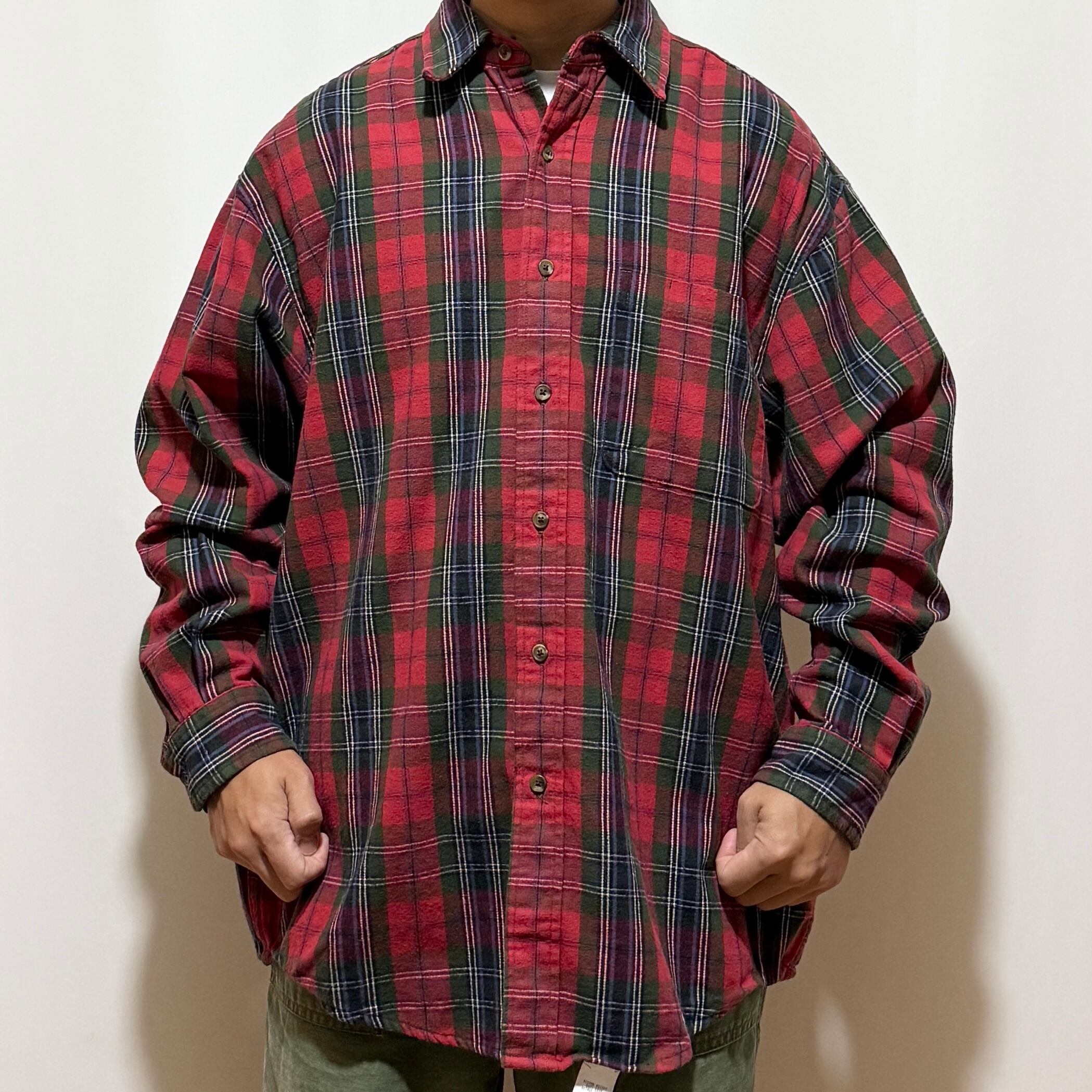 Eddie Bauer CHK Nel Shirt Red Green Navy 90s M