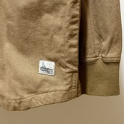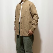 立ち襟では無いのでそこまでバルスターな感じでは無いですが、どことなくそれっぽさがあります。ともすればA-1のようなミリタリー感も感じつつ、もっと気軽に着られる感じ。着丈はシャツ感を残して少し長めなのでカバーオールやテーラードに近い雰囲気かと。