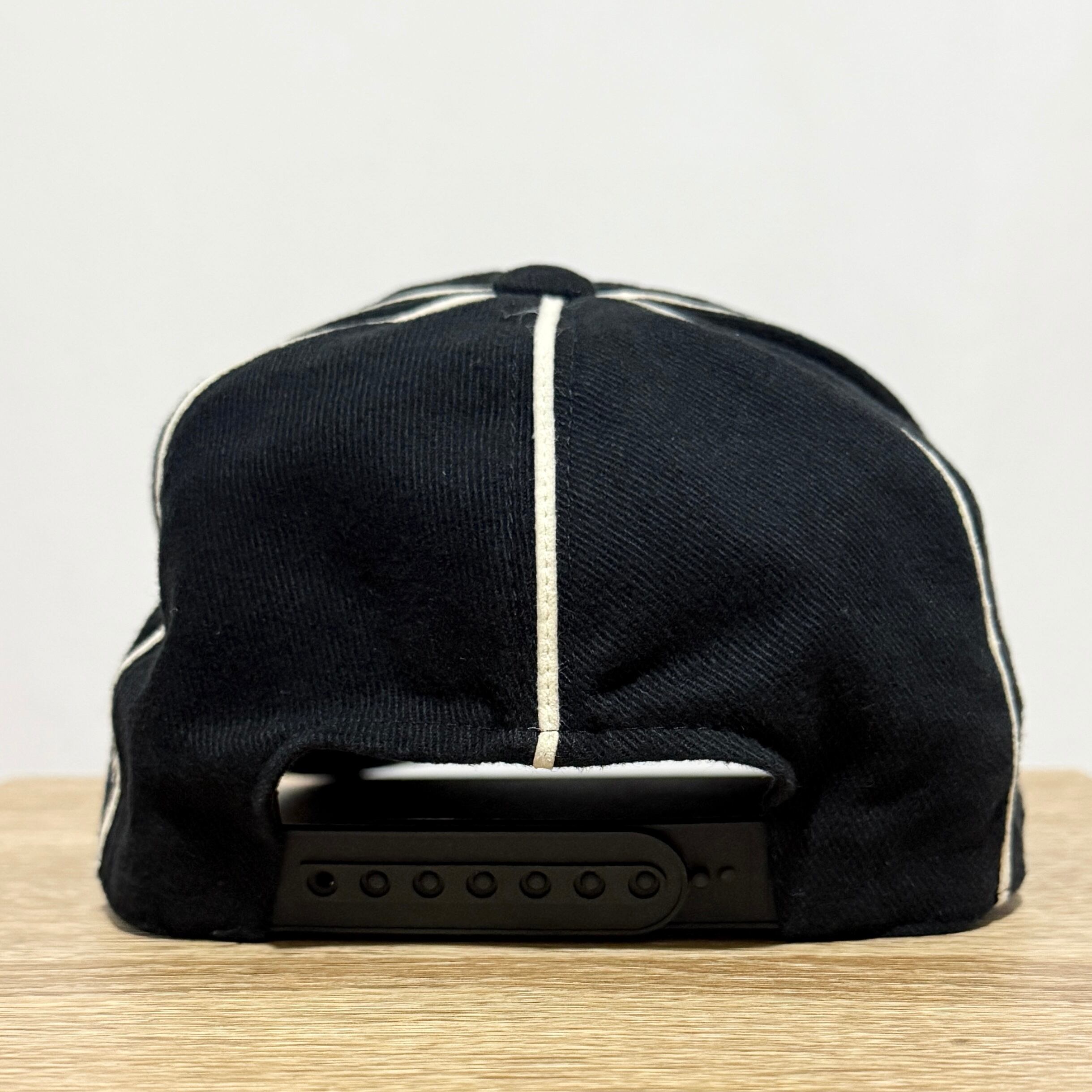 Giant Step的なロゴに白いパイピング(小シミ有)が映える少しローな被りのスナップバックキャップ◎◎◎