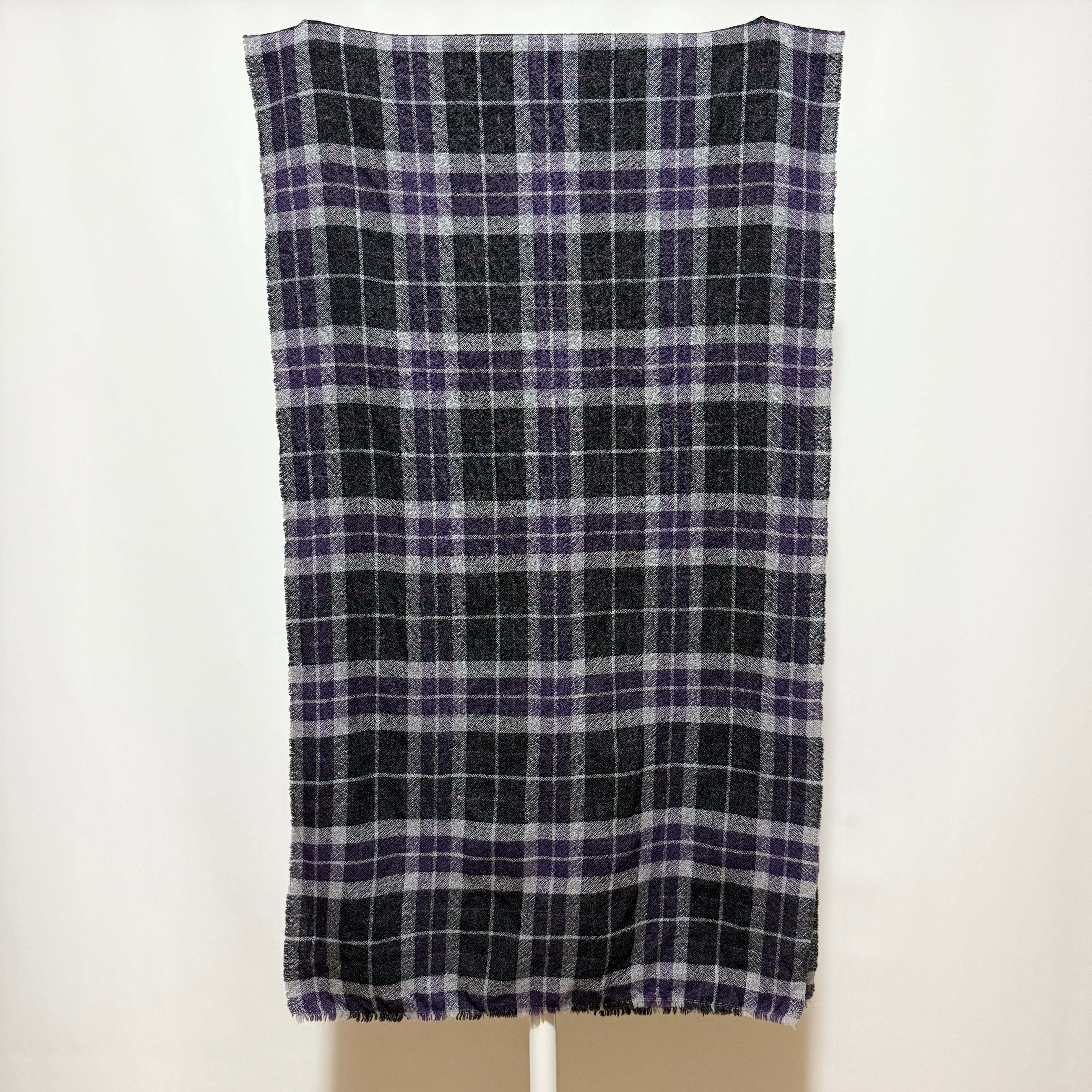 FRANCO FERRARI CHK Wool Stole Gray Purple Black Made in Italy