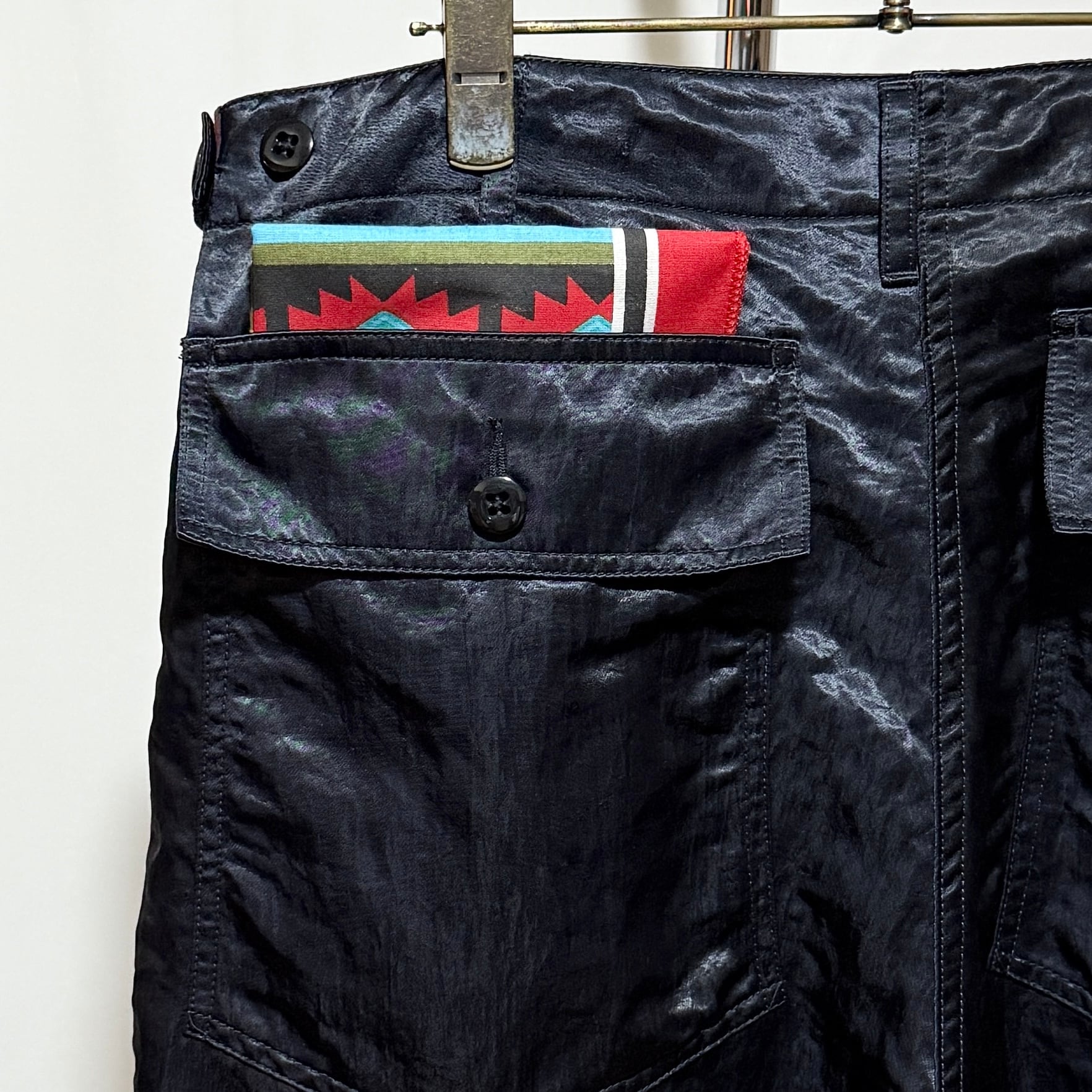 正直な話、かなりてんこ盛りなアイテムで、サテン生地でスポーツ感、ベイカーパンツの形でワーク感、側章でミリタリー感とクロスオーバーしまくり 笑