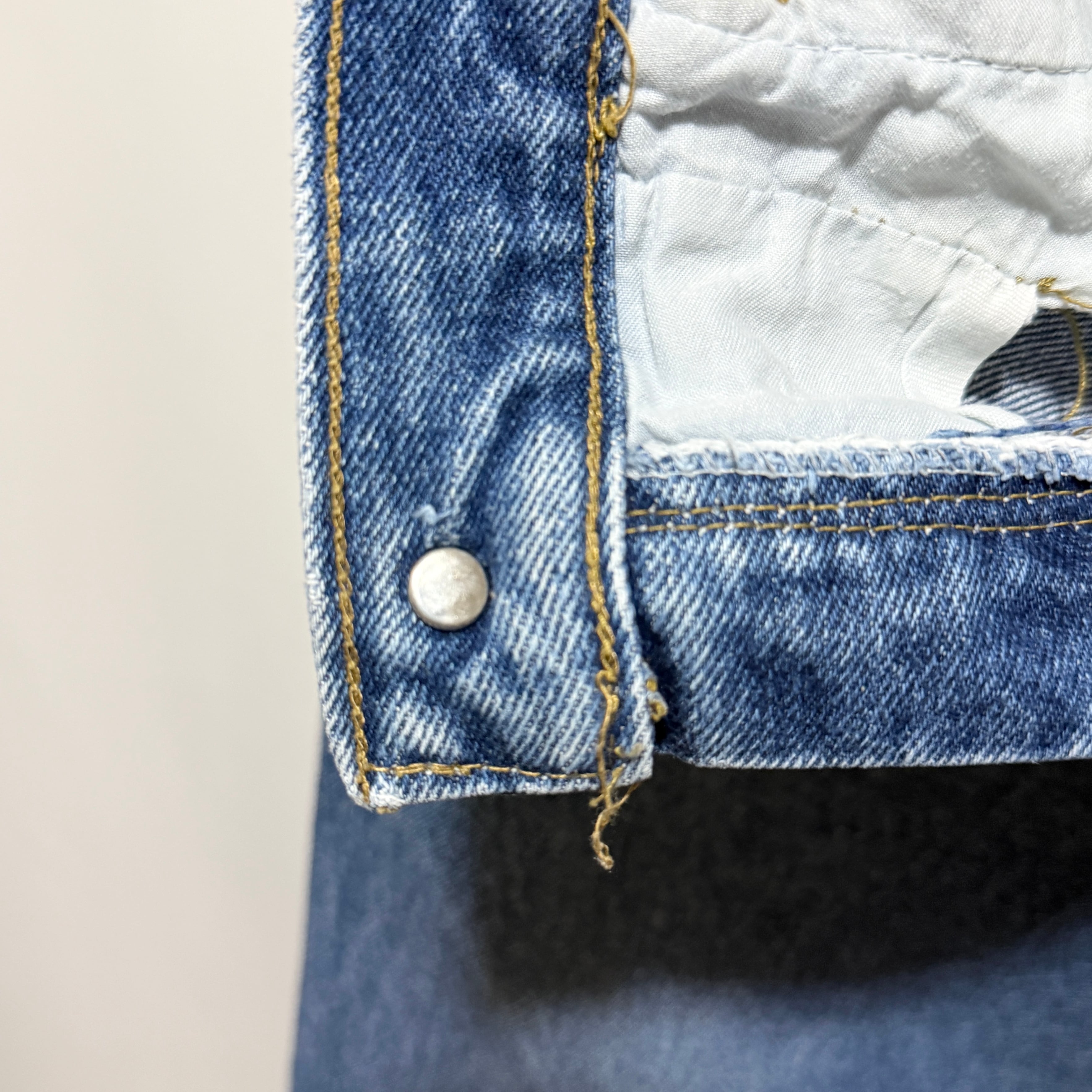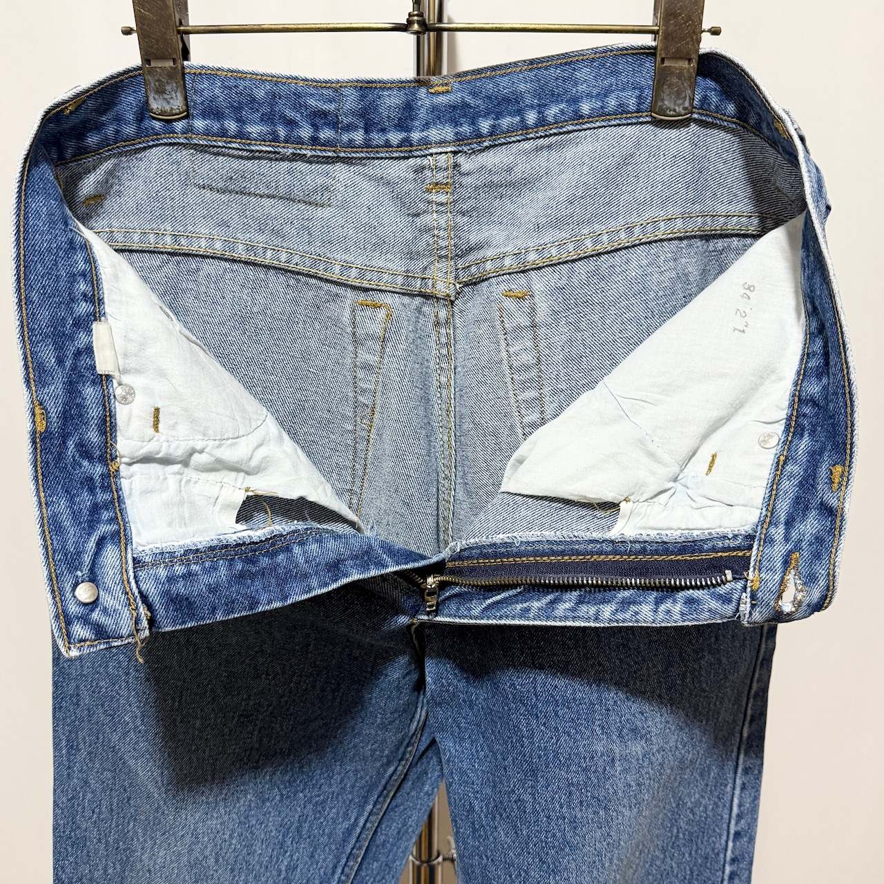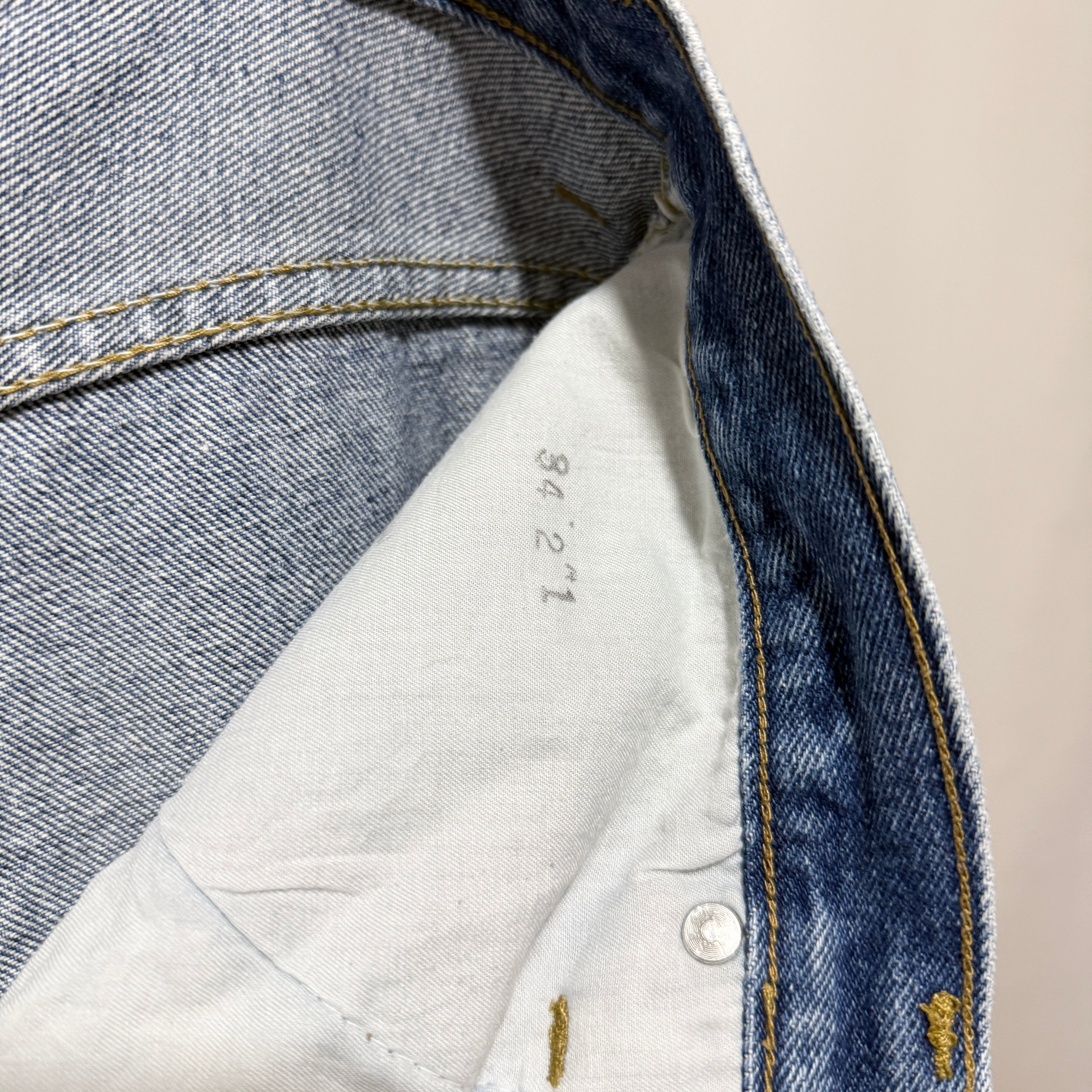パッチの印刷具合が怪しい、、そしてトップボタンに刻印無しでさらに怪しい、、リベット打ちもちょっと甘めだしジップも刻印無しで妙に軽い。内タグもちゃんとした奴が付いてない、、多分9割、いや100%偽物なんですけど 笑 なんか妙に色落ち具合が店主の好みな感じで、ちょっとねじれていて、シルエットもバタ臭いストレート。レングスもやや短めって事でチョイスです 笑