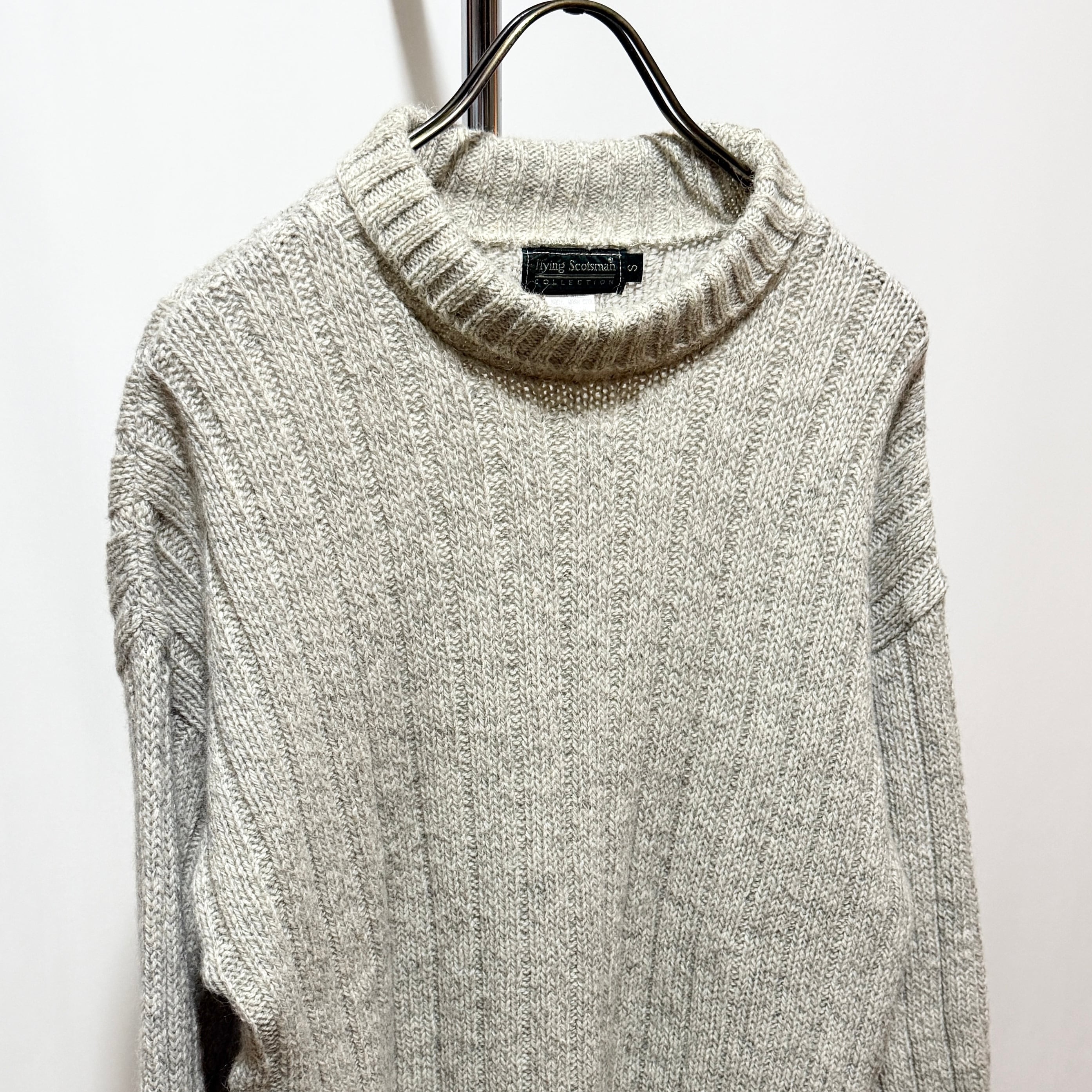 Flying Scotsman Mock Neck Rib Knit Lt Gray Made in USA 90s 80s S