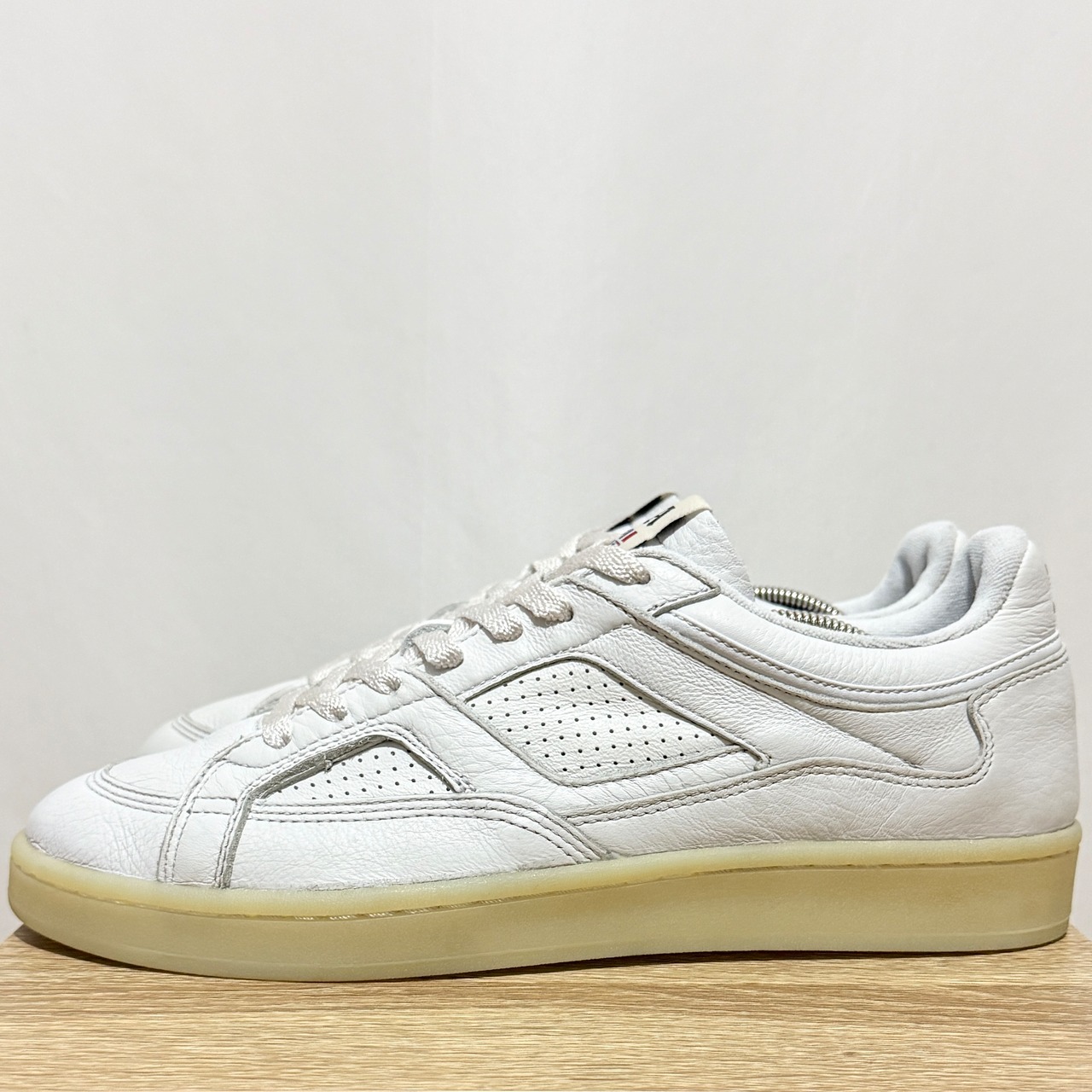 真っ白なアッパーにアイスなソールは店主の思う90年代的ヒップホップのスタイル。