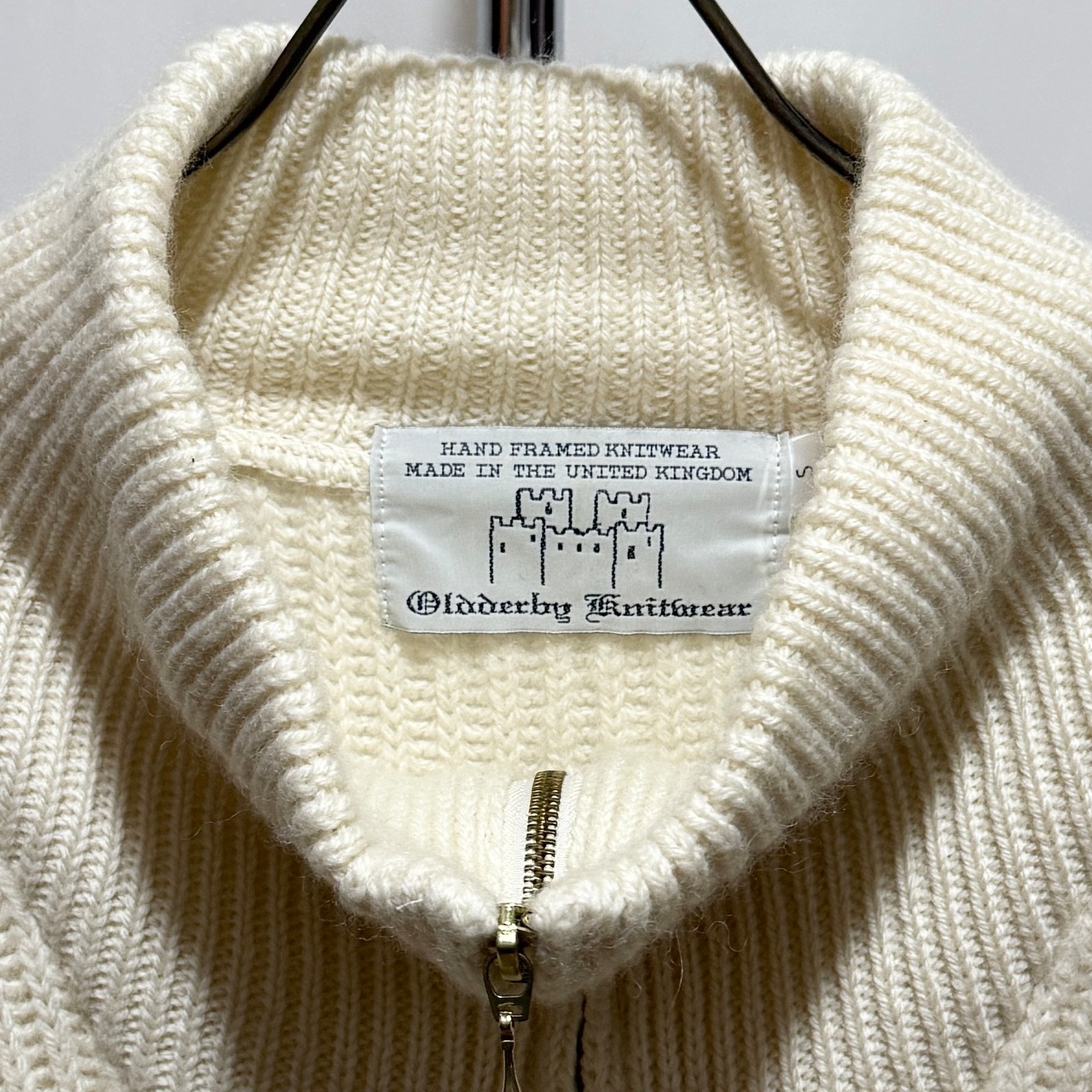 Oldderby Knitwear Half Zip Knit White Made in The United Kingdom L