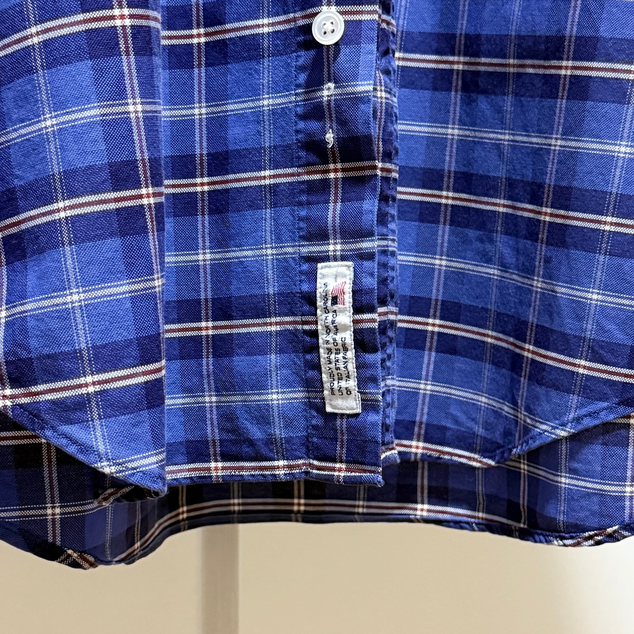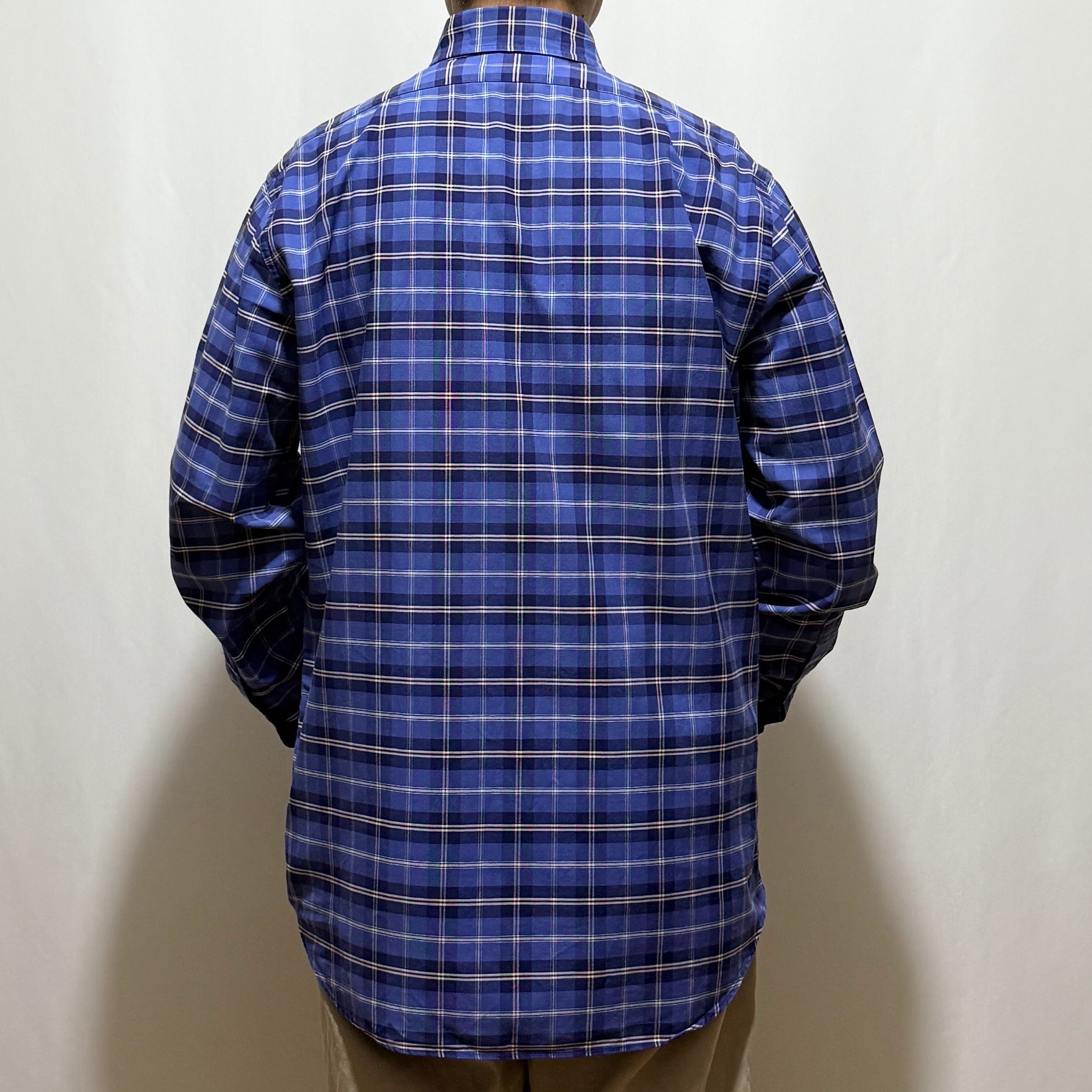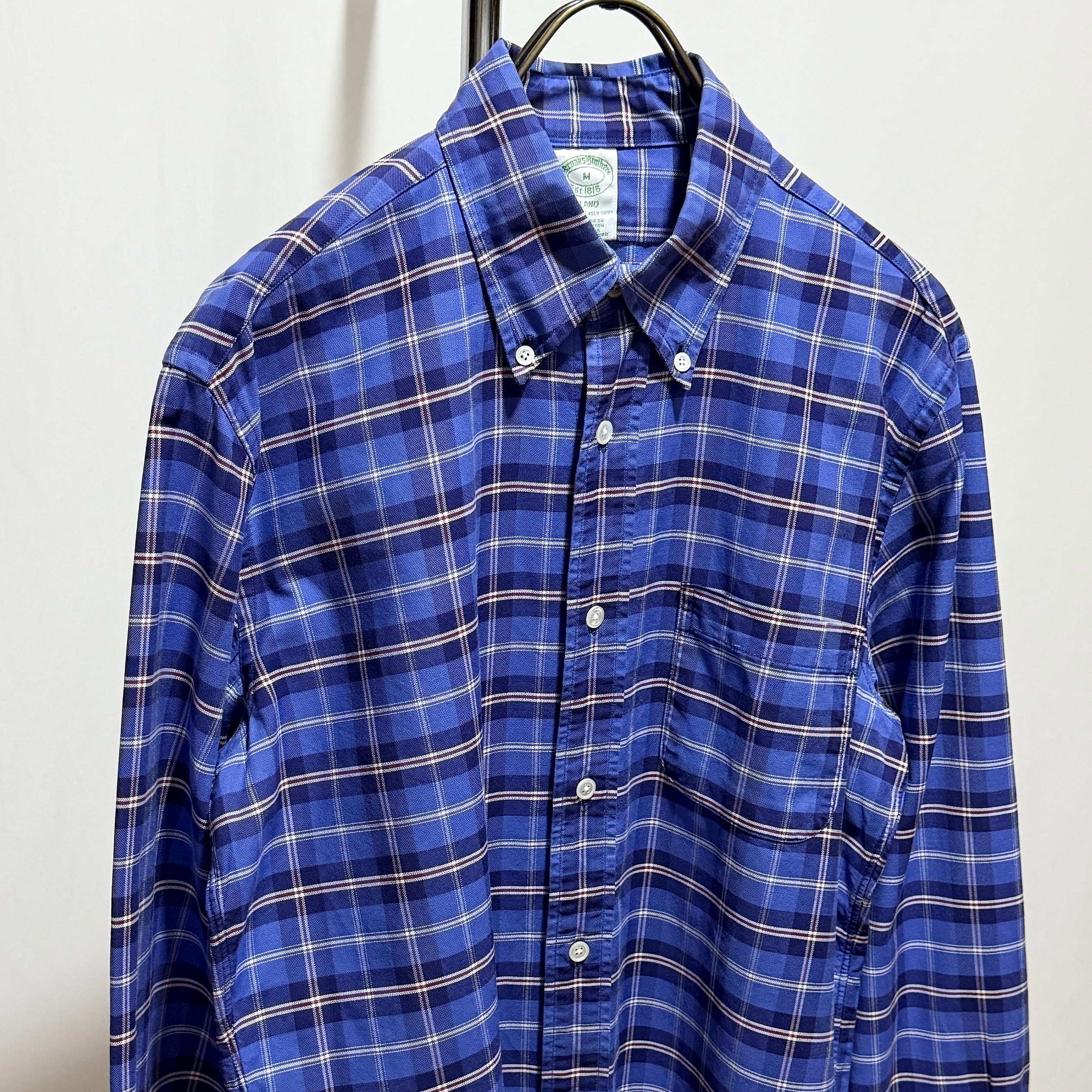 Brooks Brothers "MILANO" Oxford CHK Polo Collar Shirt Blue Made in USA M
