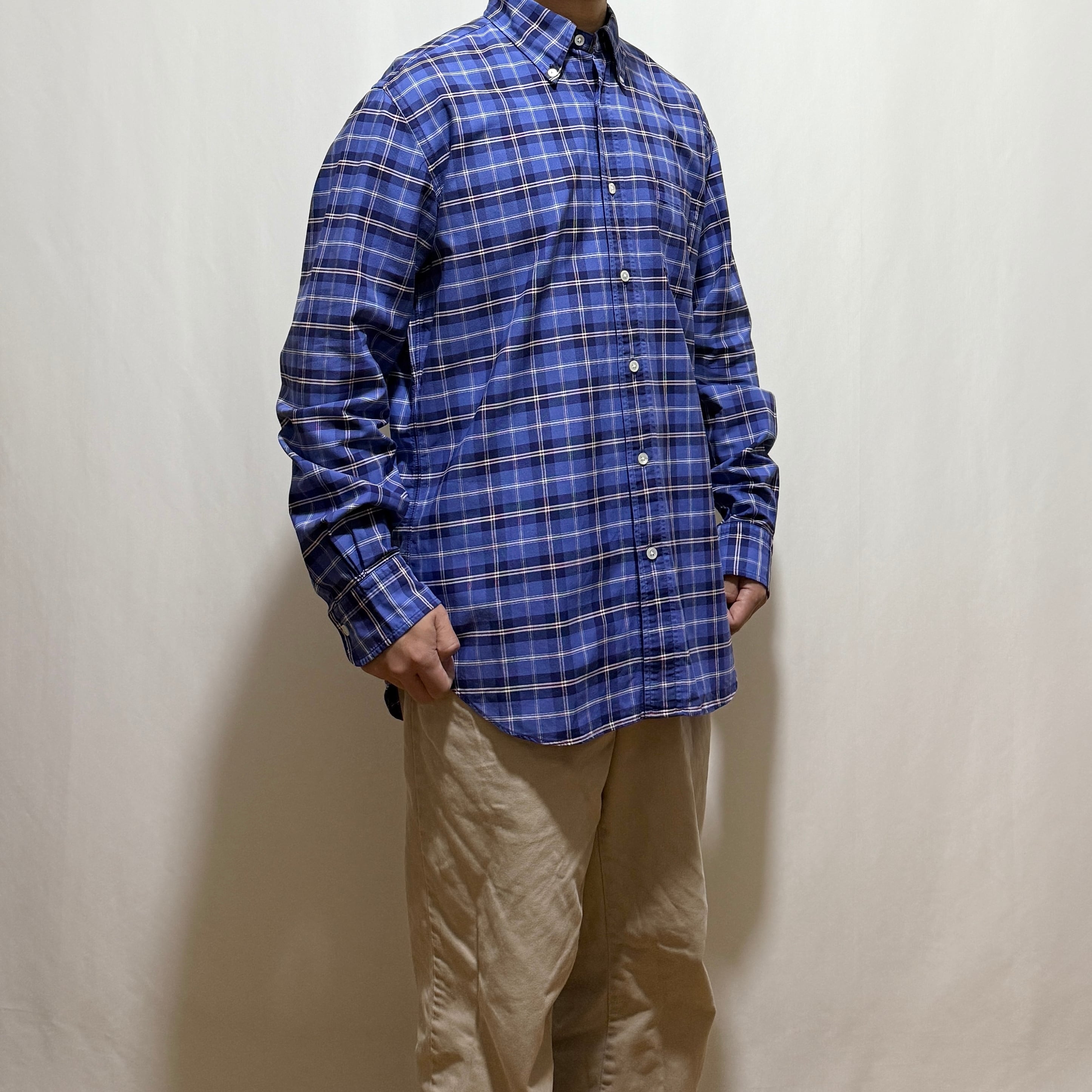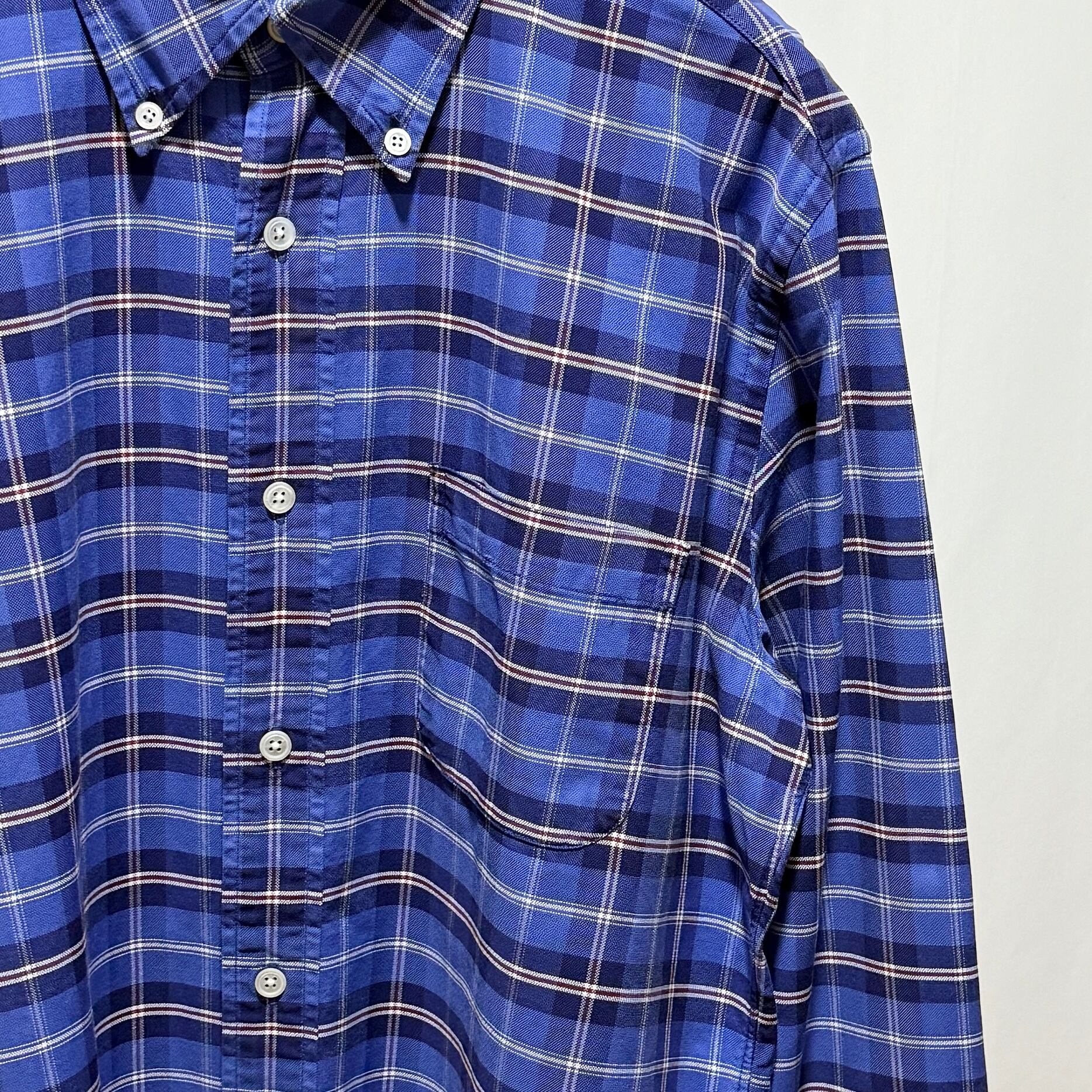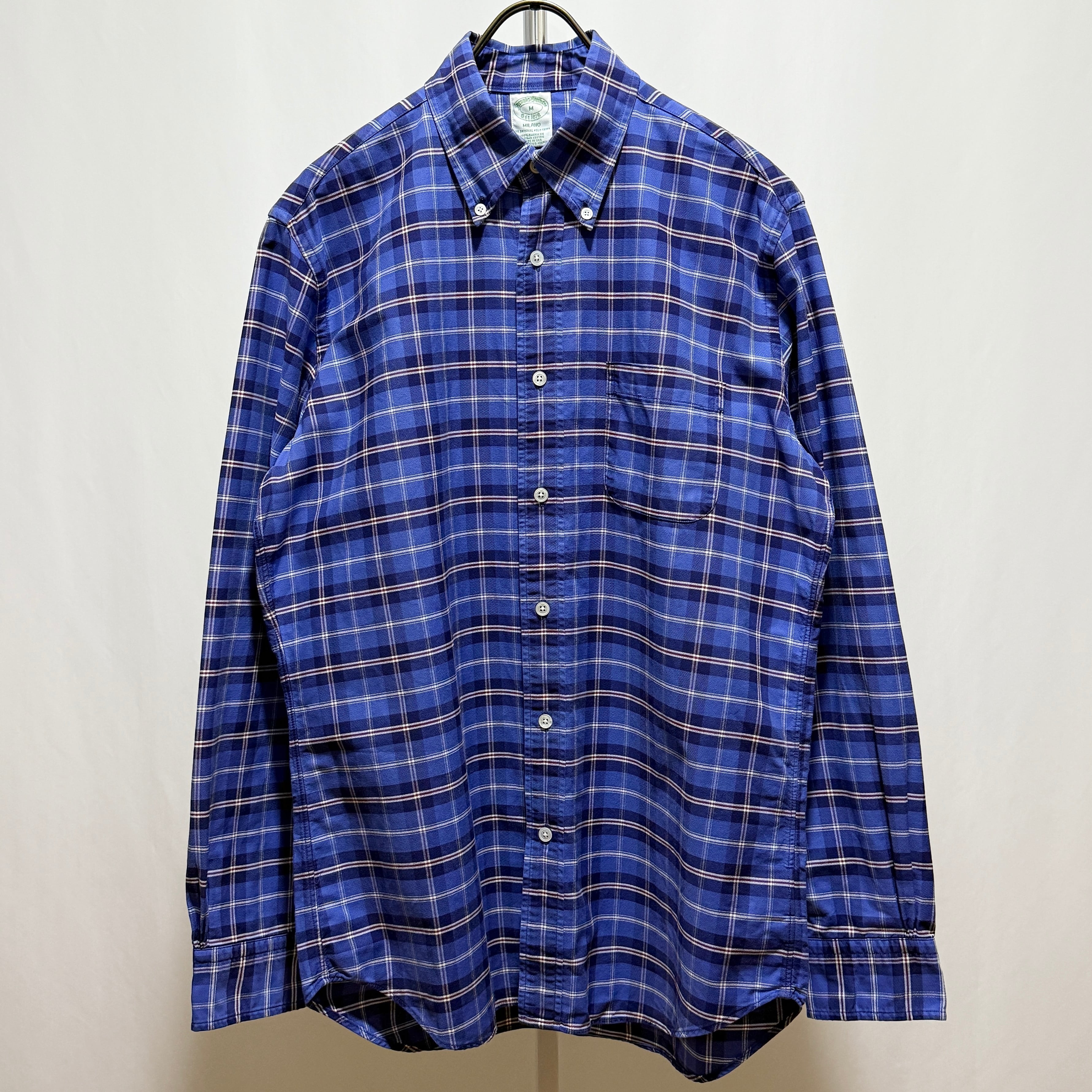 Brooks Brothers "MILANO" Oxford CHK Polo Collar Shirt Blue Made in USA M