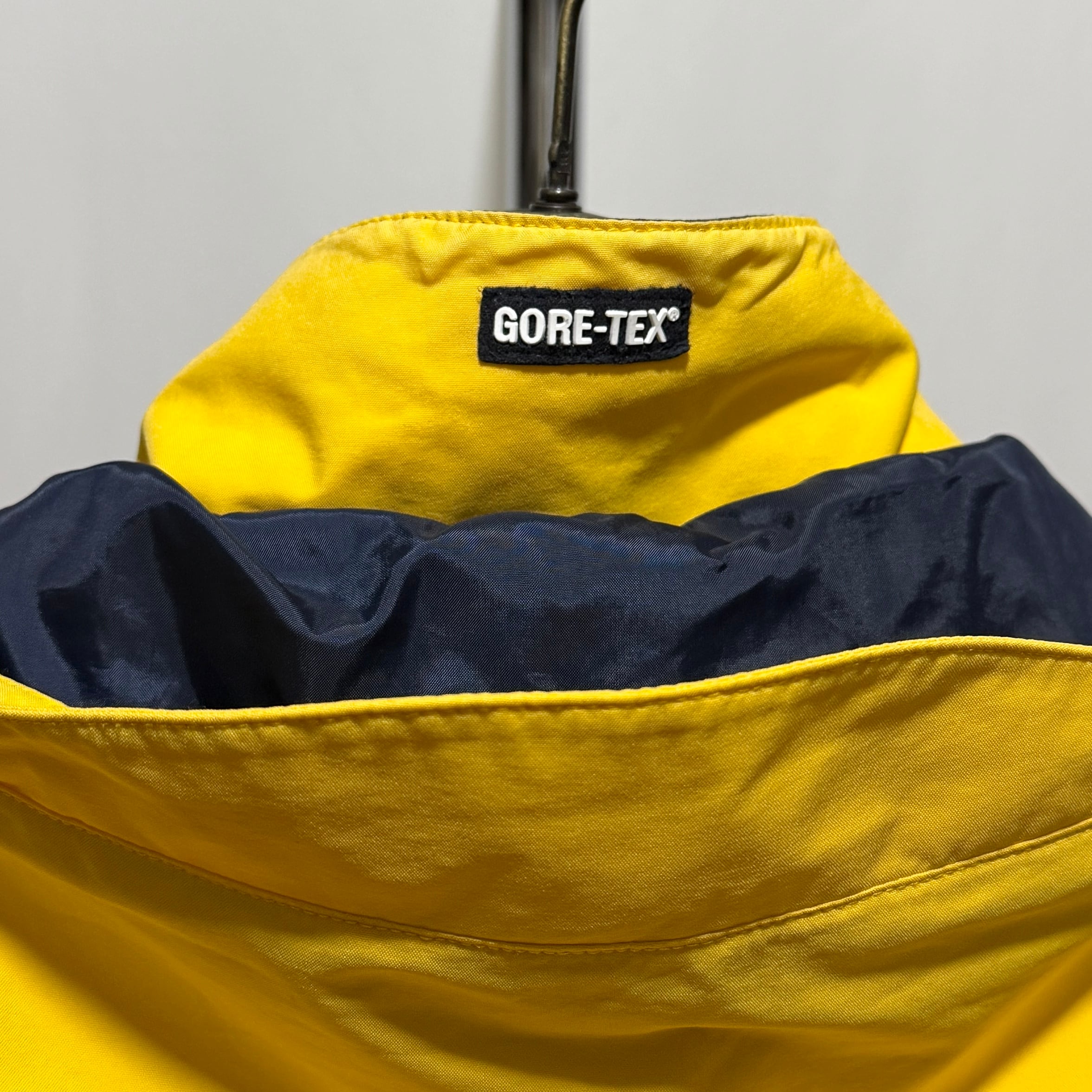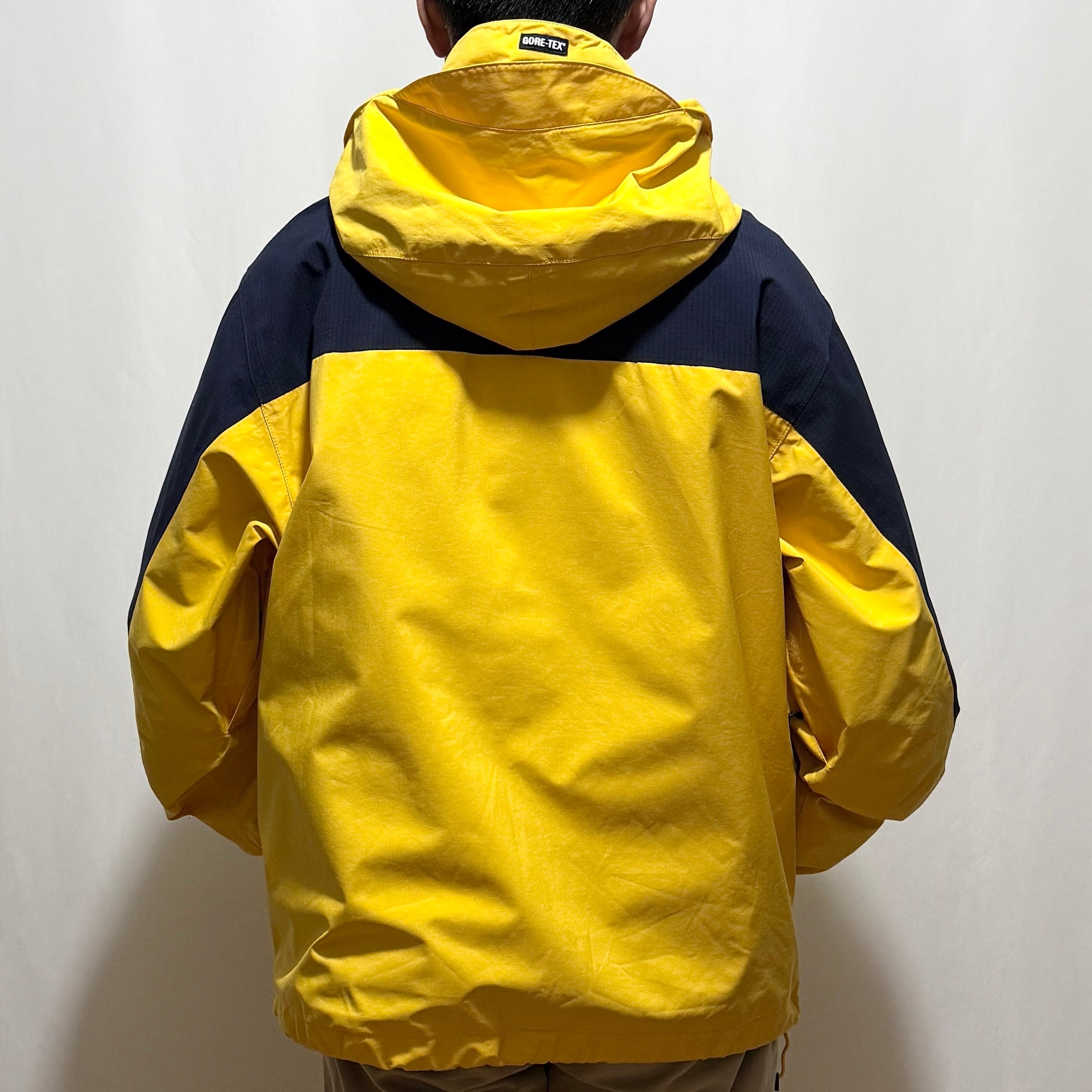眩しいイエローにリップストップの濃いネイビーのカレッジ感溢れる配色、大き目ですっぽりかぶれるフード、フランネルの裏地が付き劣化が出にくい仕様に、脇下のベンチレーション完備。ジップには珍しいラバーネーム付き。そしてボクシーなシルエットでゴアテックスと、総じて最高なアウターです◎◎◎