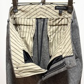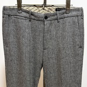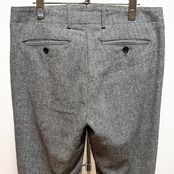 やや浅めの股上に渡りは少しゆとりを取ってテーパードさせた綺麗なシルエットのパンツ。裾はシングル仕上げ。所謂細身のパンツ系では理想的なシルエットの1つって感じ。