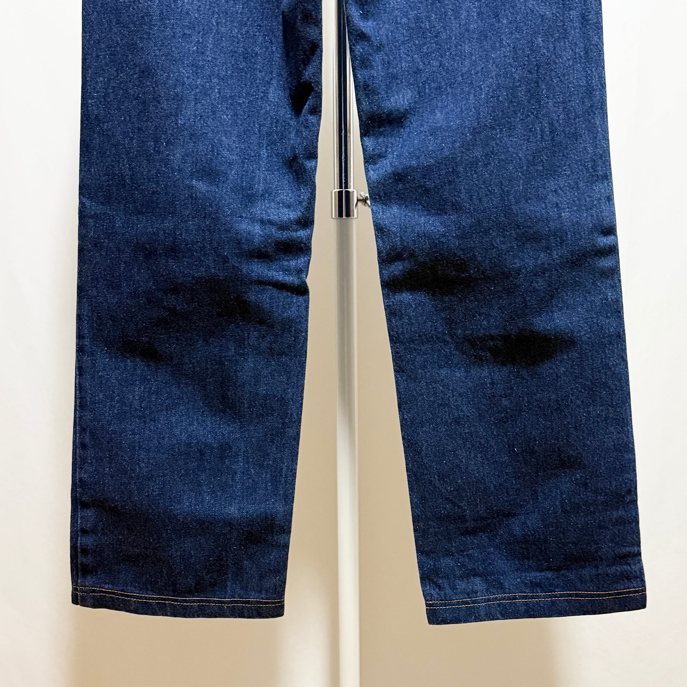 今の時代だと股上深いと腰回りも広いルーズなシルエットが殆ど。少し細身のストレート(裾のダブルステッチは個人的にチェーンよりも上がるディテール)で、癖が無い1本。
