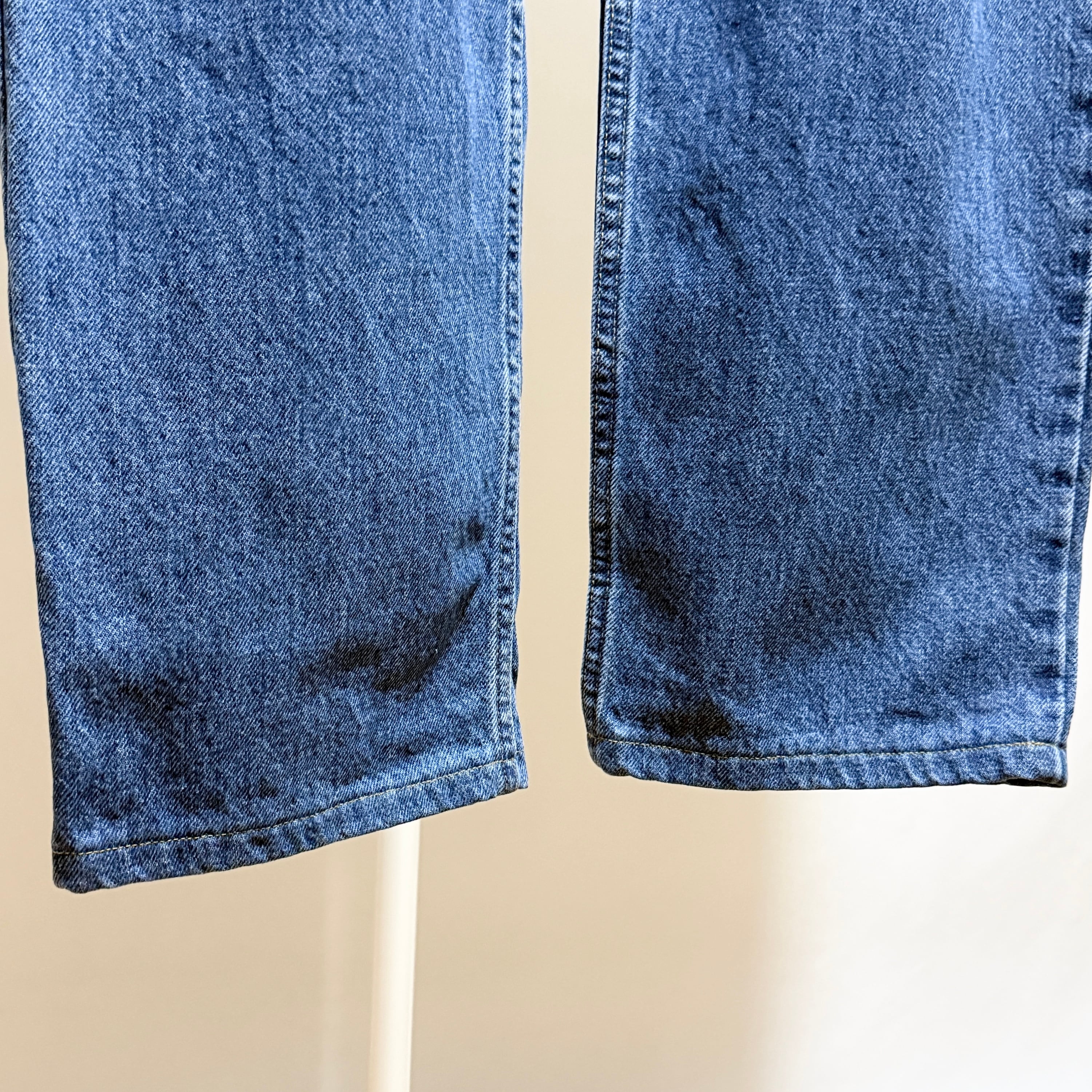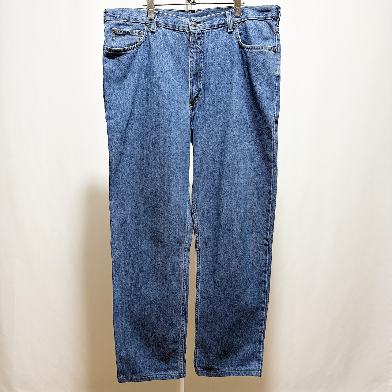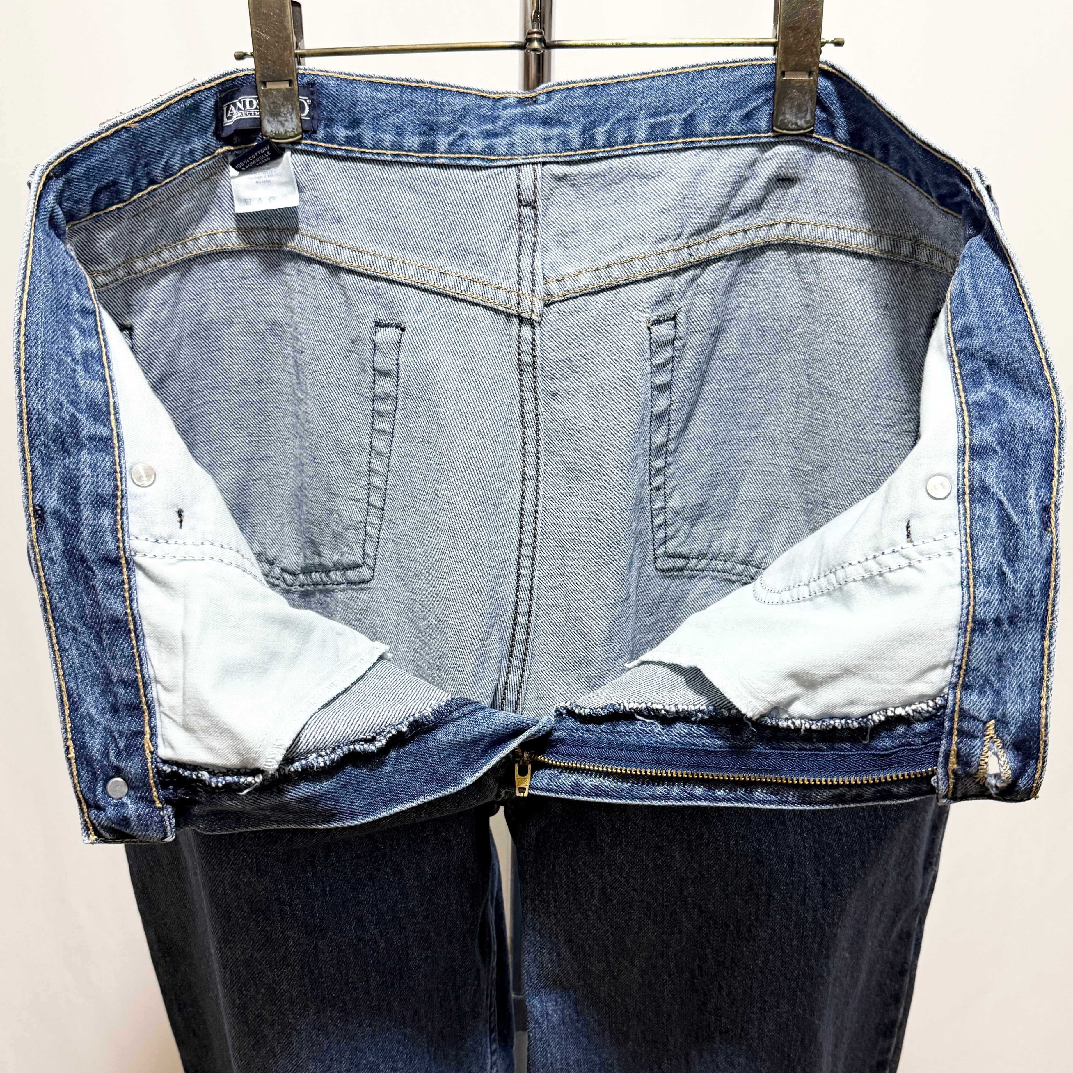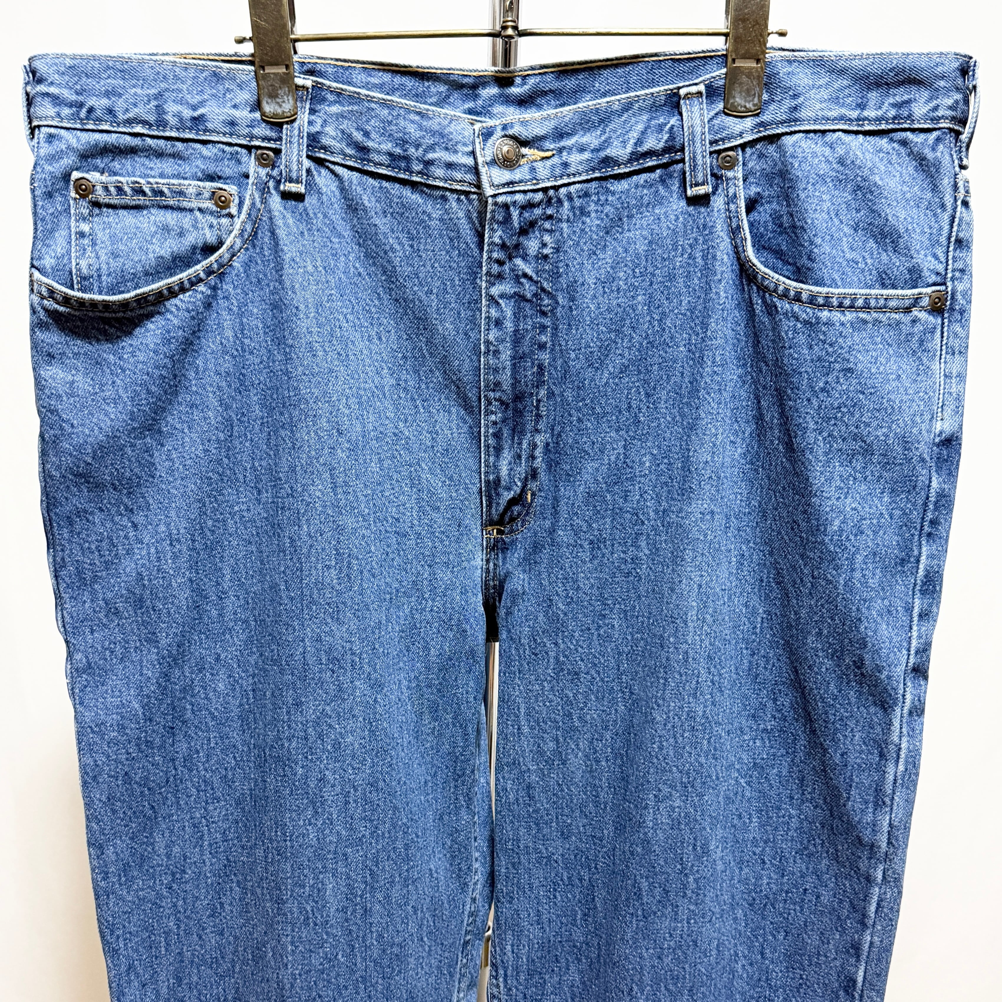 ヒップポケットにステッチが入らない仕様でストーンウォッシュぐらいのニュートラルな色味のインディゴ。サイズは38インチで久々のファットなサイズ◎◎◎
