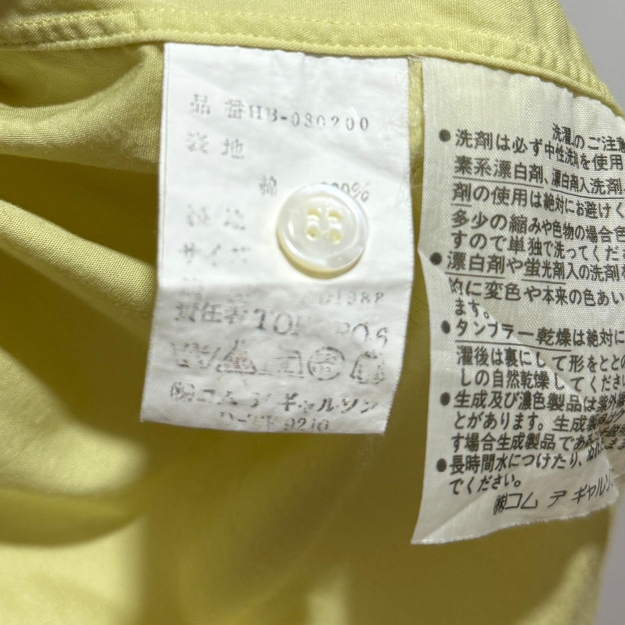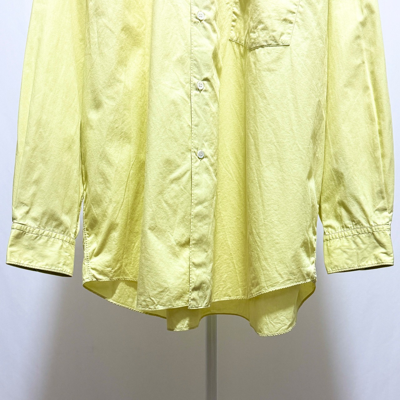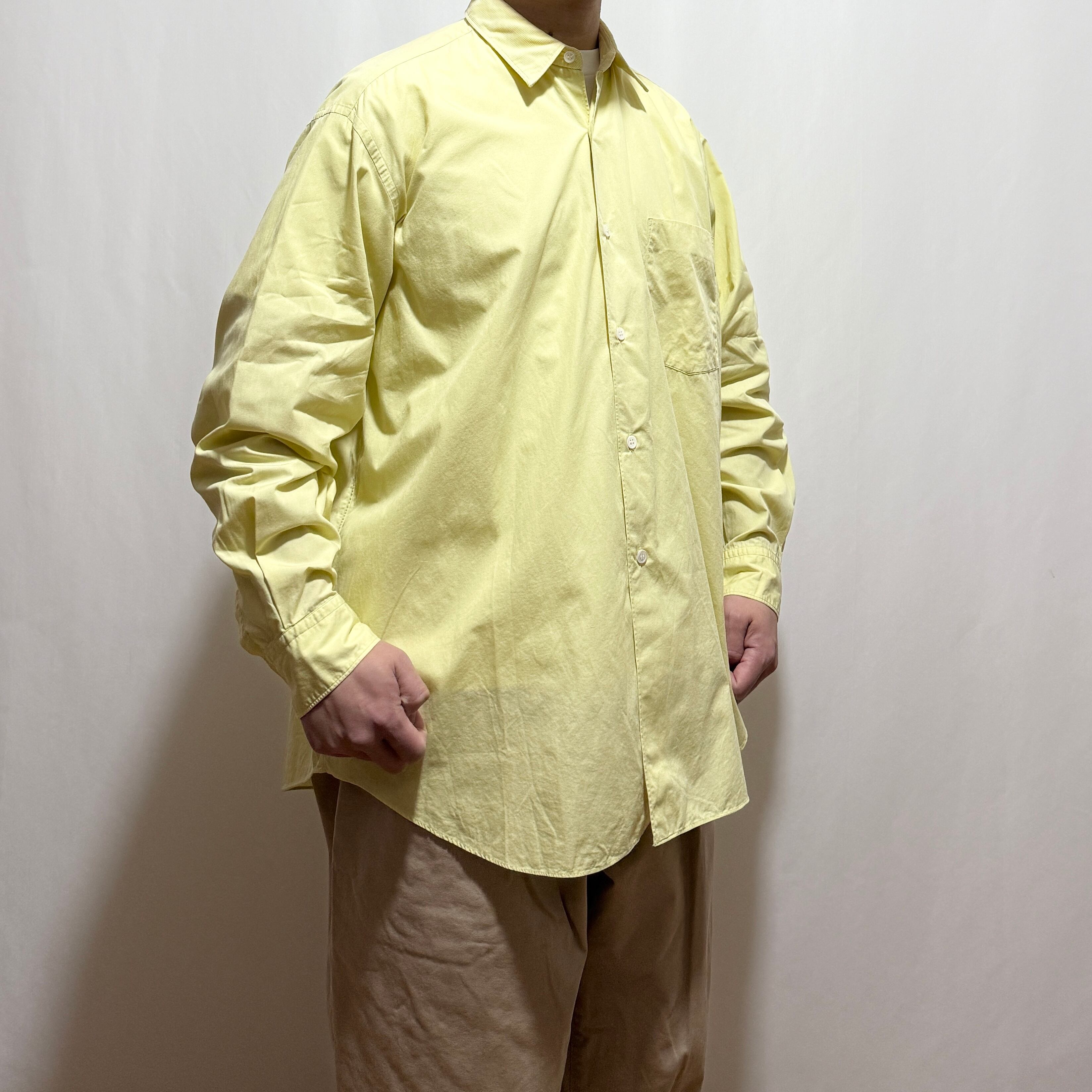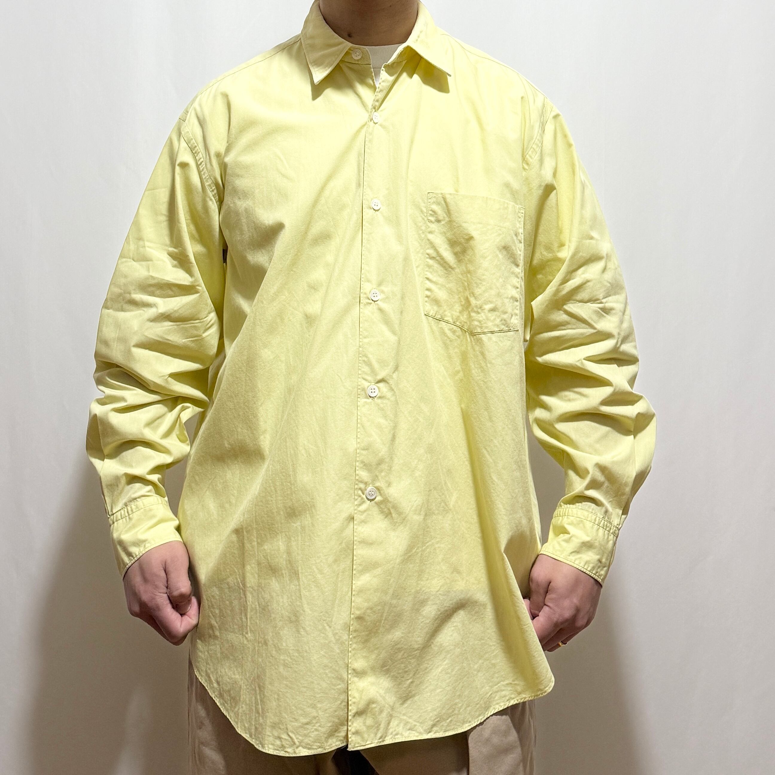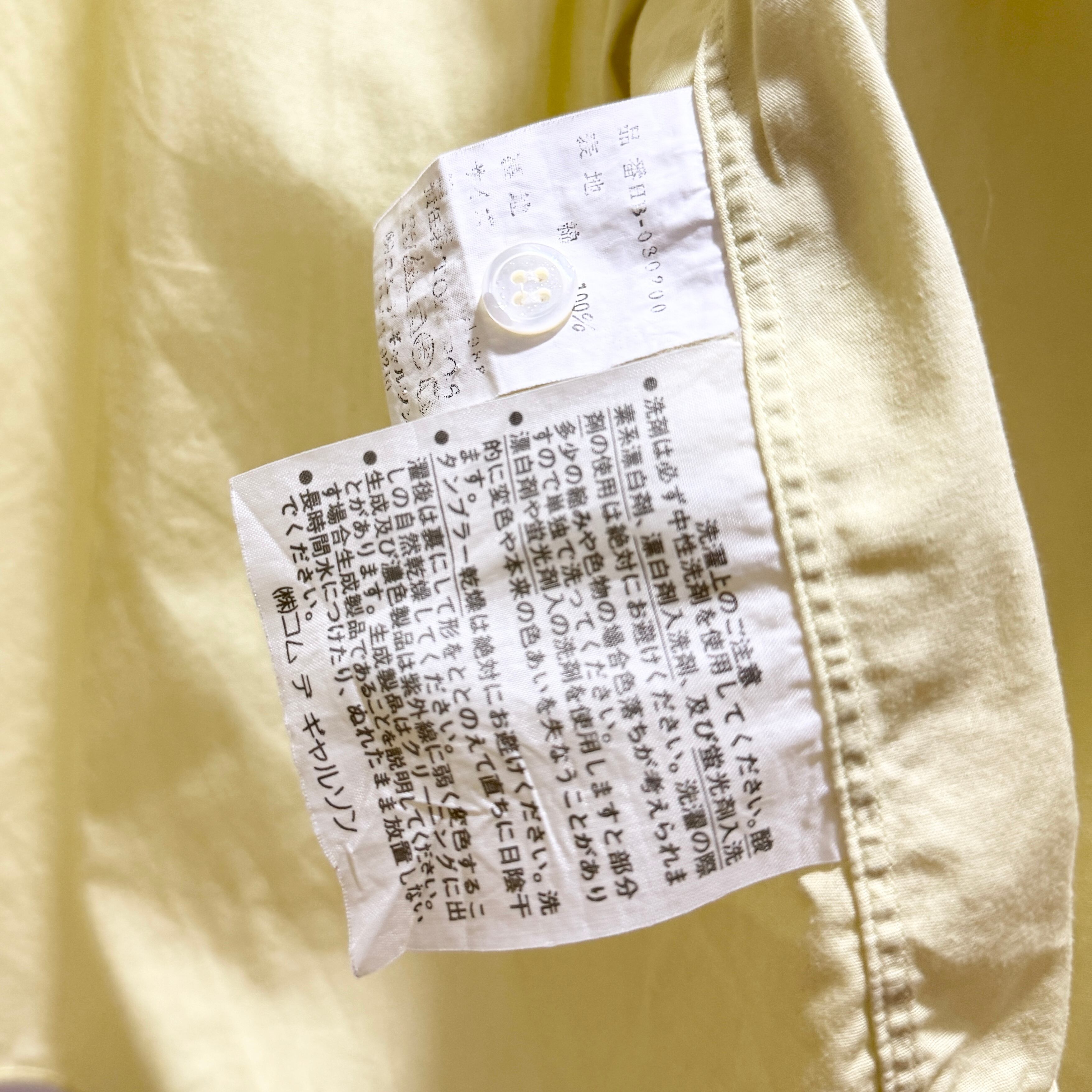 黄色と言ってもビビットな色味でなくレモンイエローというか、少しパステル、ペールトーンなイメージです。デザイン的にはギャルソンシャツを感じますので、こういったデザインがフランス生産部門に枝分かれしていったんだろうなーなんて。
